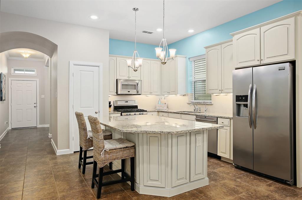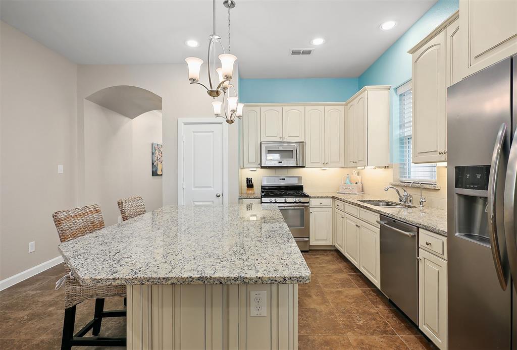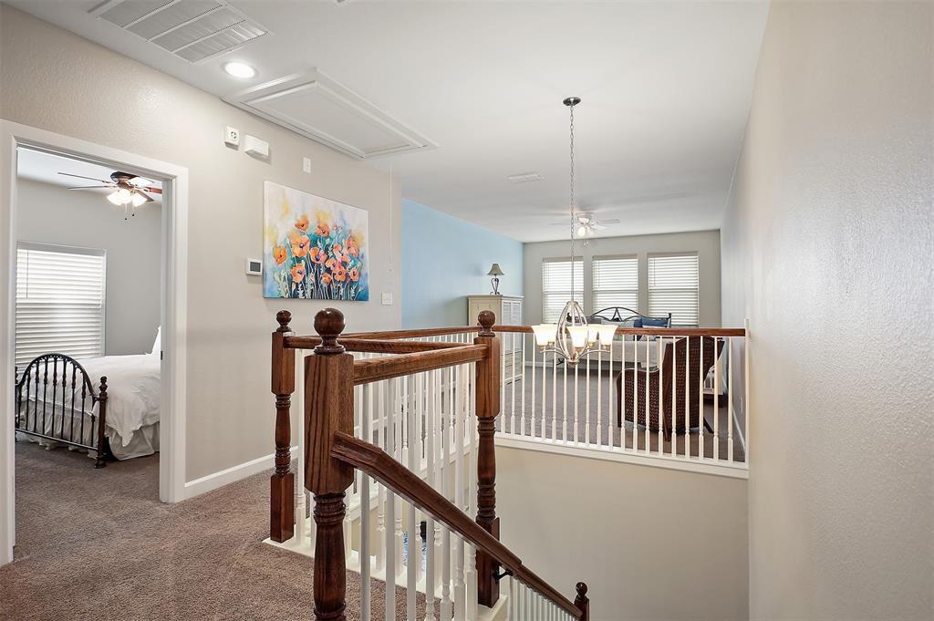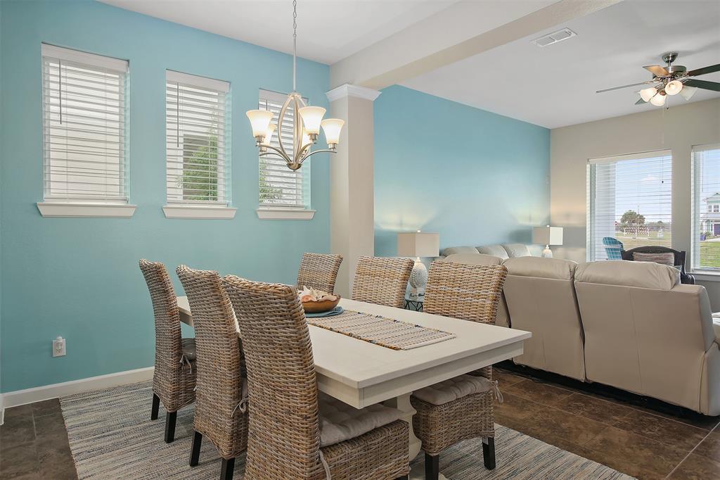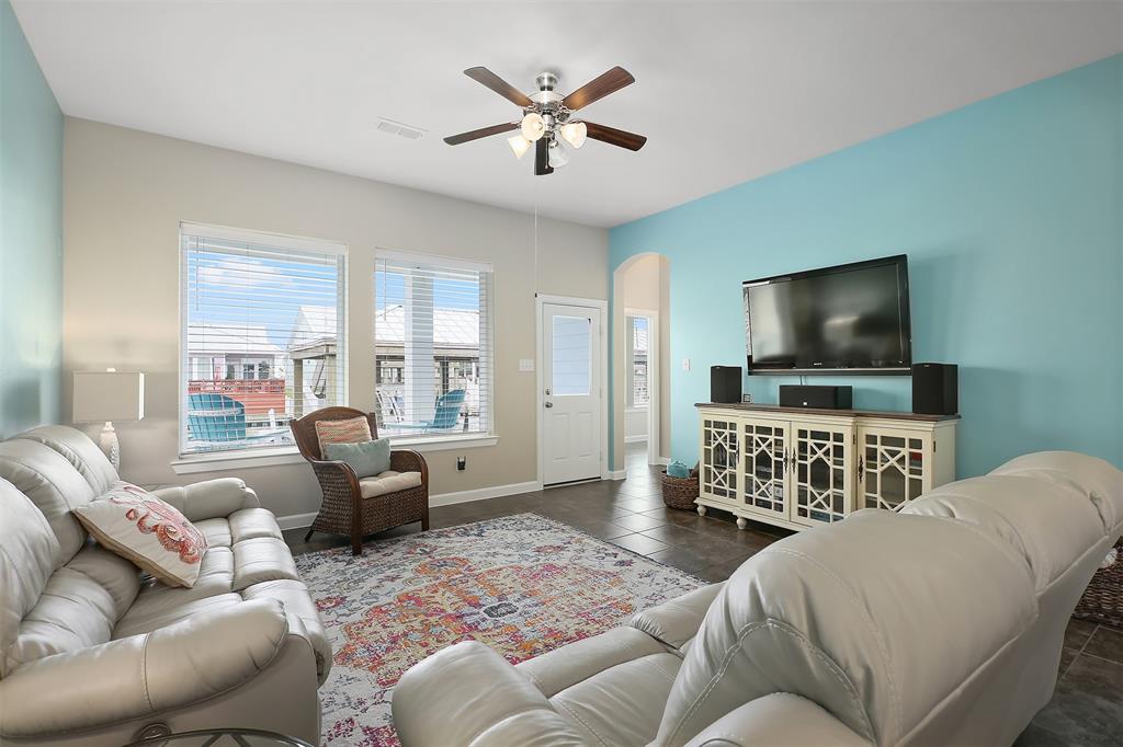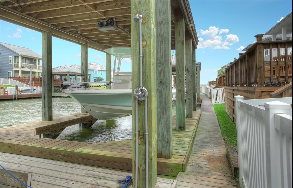 Meticulously maintained and perfect for entertaining, this 3 bedroom, 2.5 bathroom David Weekley home comes with a 27' boathouse and a 3 car garage. The kitchen has glazed maple cabinets with granite countertops, stainless appliances and under the cabinet lighting. The large master retreat is down and has an oversized shower with frameless shower enclosure and dual sinks. Upstairs find two generous sized bedrooms and a game room for more entertainment. Tile floors cover all living areas downstairs and there’s fresh paint throughout the home. Enjoy the Grand Cay Harbour lifestyle with access to a community pool and boat launch with deep water access to Galveston Bay. Watch the sunset from the covered front porch that overlooks the wetlands. Or relax on the rear covered rear patio that faces east for evening shade. Fresh landscaping in front and a sprinkler system for the entire yard. This home has never flooded and no flood insurance is required.