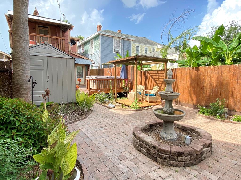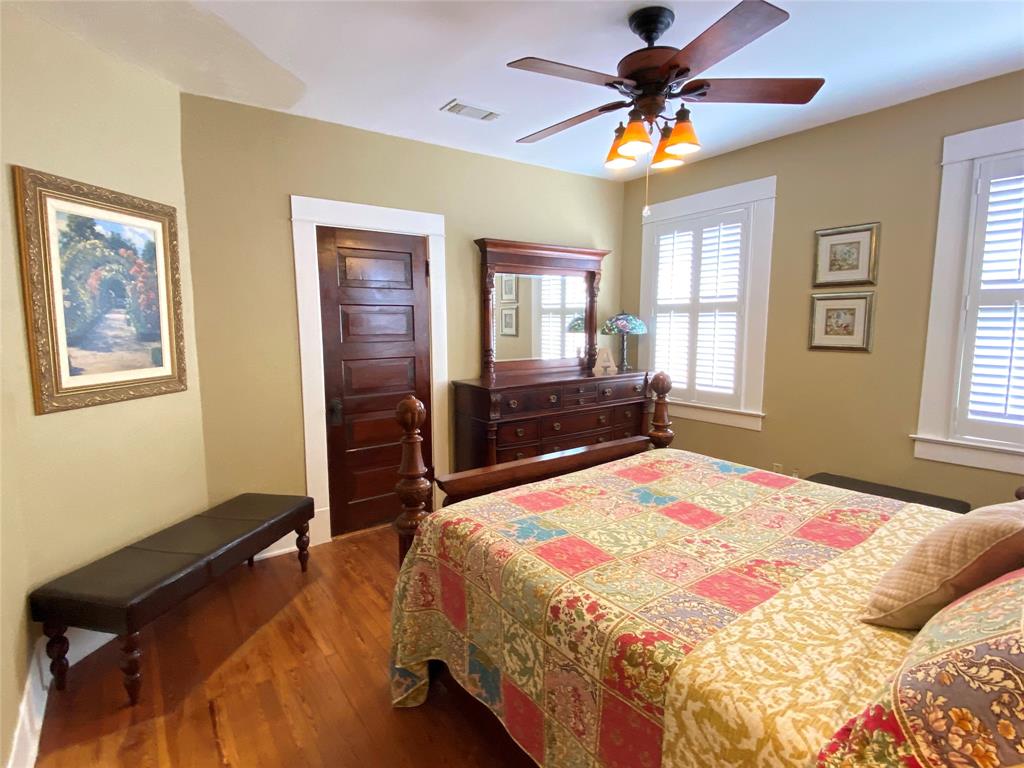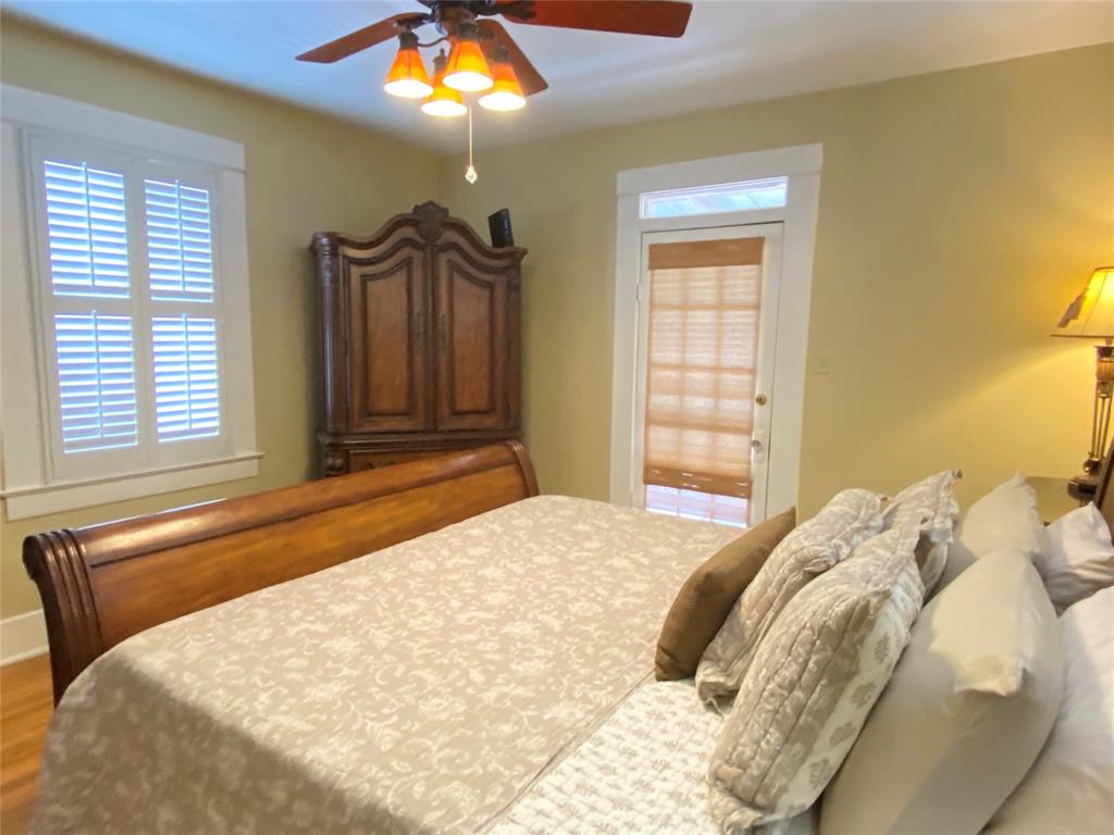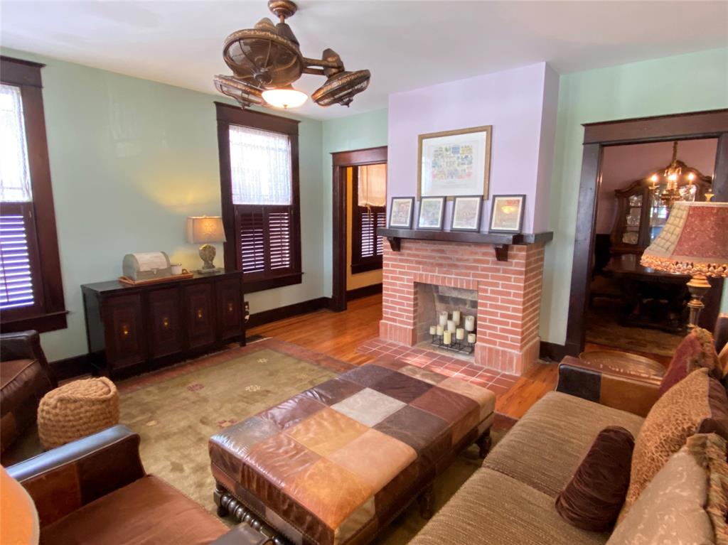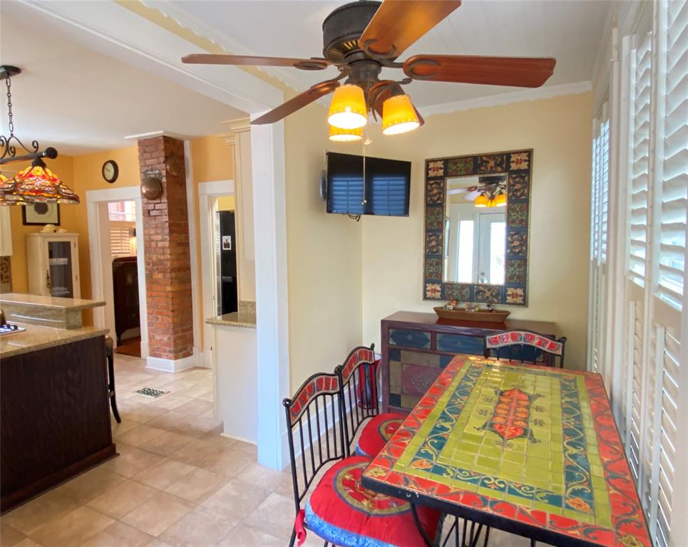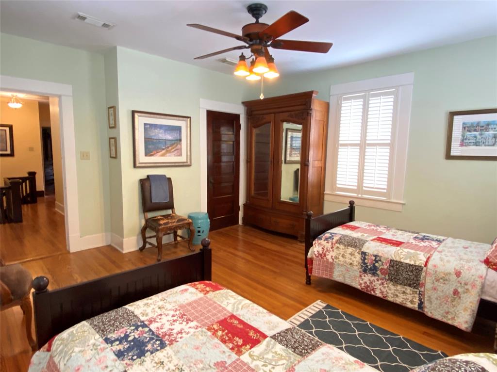 Beautifully restored and fully landscaped 1907 Arts & Crafts home w/fireplace and wrap around porchin EEHD. The updated kitchen includes copper sink, convection oven, large utility room and breakfast nook that leads to a back deck, hot tub and fountain in the backyard, a great fully fenced entertaining space! Wood floors throughout home with tile in kitchen and breakfast nook. There is a designer 3/4 bath downstairs. Plenty of windows add to the sunny appeal and charm of this beauty additionally storage space is plentiful, a rarity in these homes! Upstairs are 3 bedrooms, the primary has a walkout deck and full bath. Just steps away from Mosquito Cafe and 14th St. corridor of restaurants. Convenient to UTMB and downtown. Back porch buildout has added 84 sf to the home. Outdoor back space begs for alfresco dining while the charming front wraparound porch with a swing is great for a spontaneous get together for enjoying the soothing Gulf Breezes! Room for parking in back if desired.