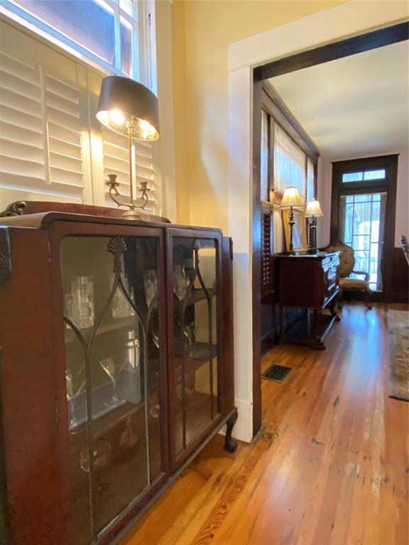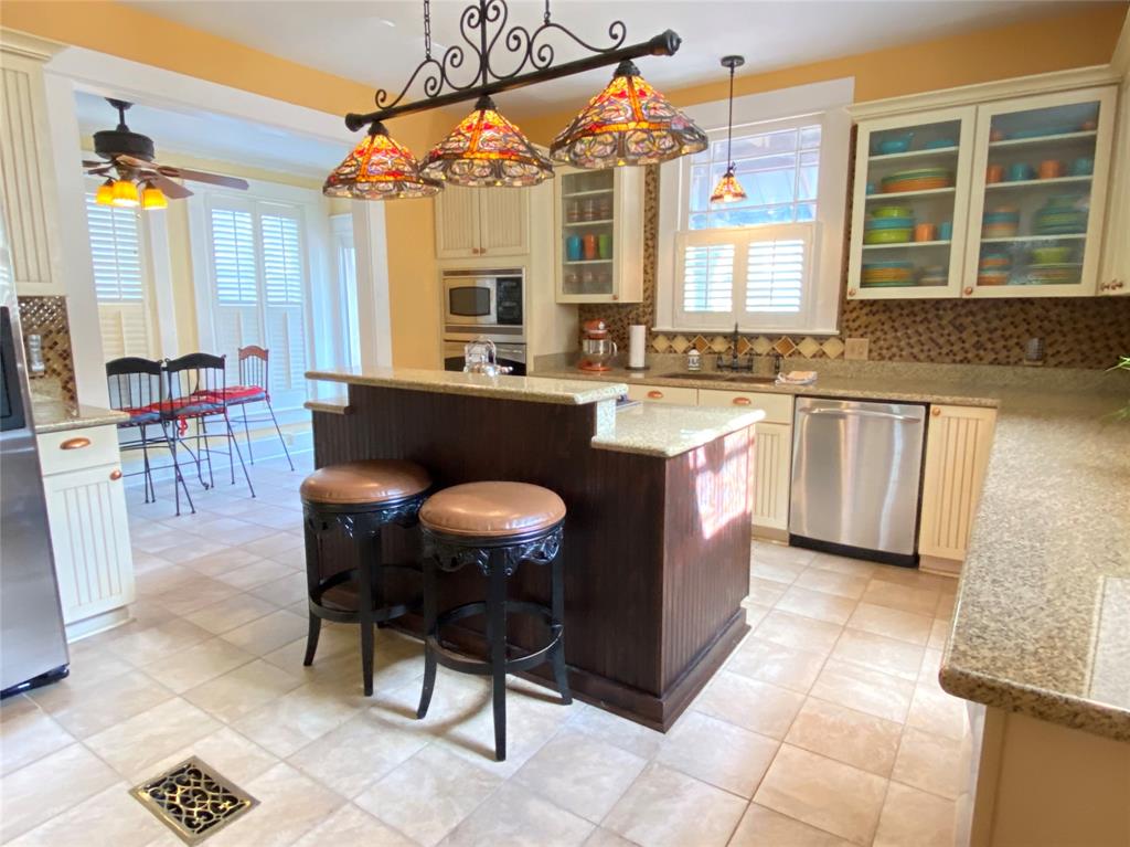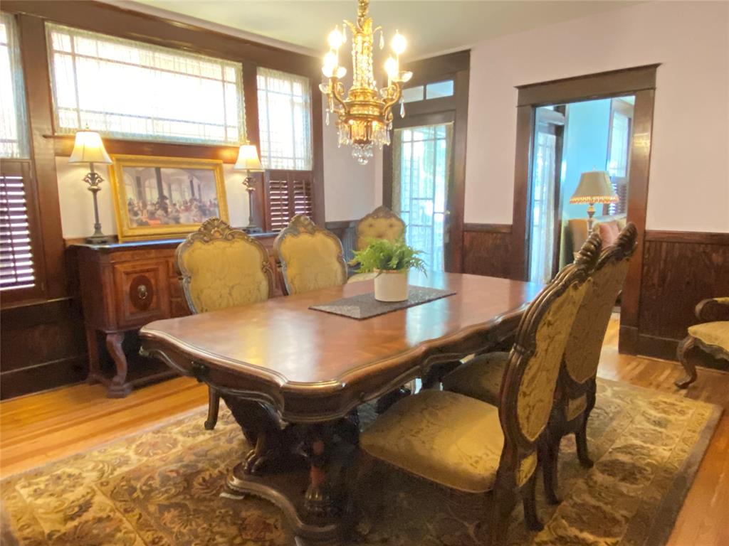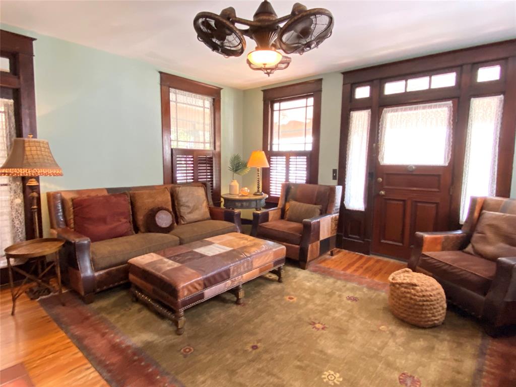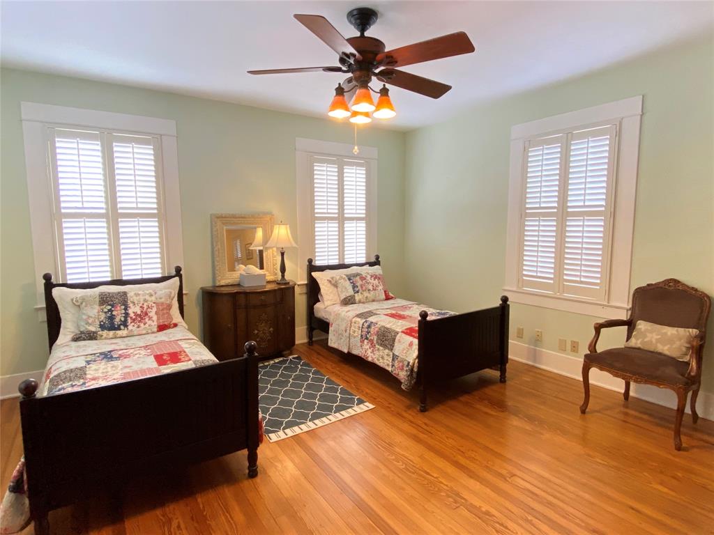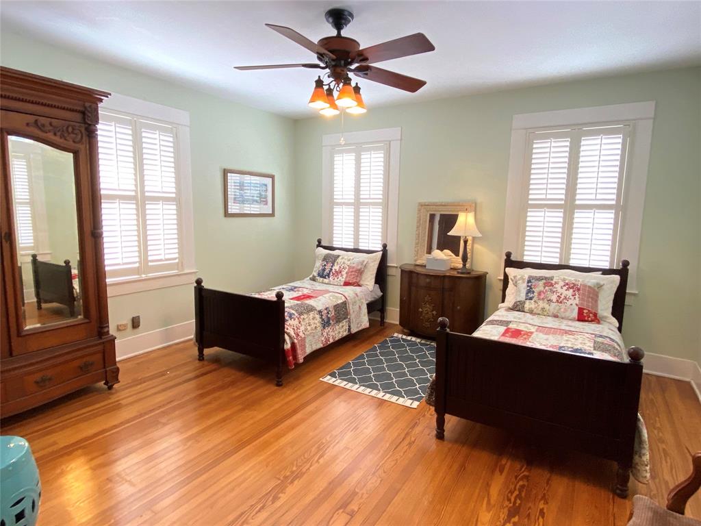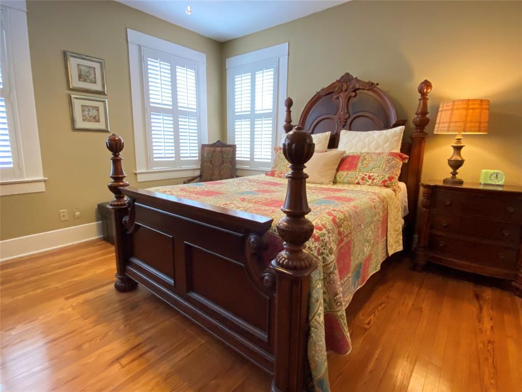 Beautifully restored and fully landscaped 1907 Arts & Crafts home w/fireplace and wrap around porchin EEHD. The updated kitchen includes copper sink, convection oven, large utility room and breakfast nook that leads to a back deck, hot tub and fountain in the backyard, a great fully fenced entertaining space! Wood floors throughout home with tile in kitchen and breakfast nook. There is a designer 3/4 bath downstairs. Plenty of windows add to the sunny appeal and charm of this beauty additionally storage space is plentiful, a rarity in these homes! Upstairs are 3 bedrooms, the primary has a walkout deck and full bath. Just steps away from Mosquito Cafe and 14th St. corridor of restaurants. Convenient to UTMB and downtown. Back porch buildout has added 84 sf to the home. Outdoor back space begs for alfresco dining while the charming front wraparound porch with a swing is great for a spontaneous get together for enjoying the soothing Gulf Breezes! Room for parking in back if desired.