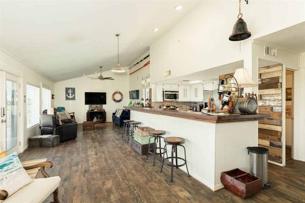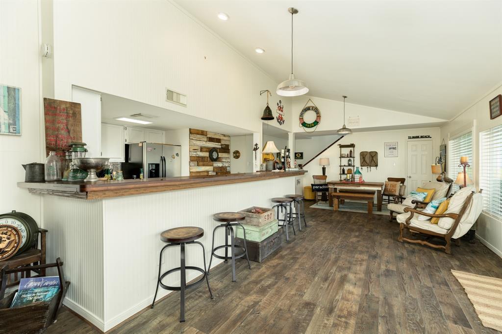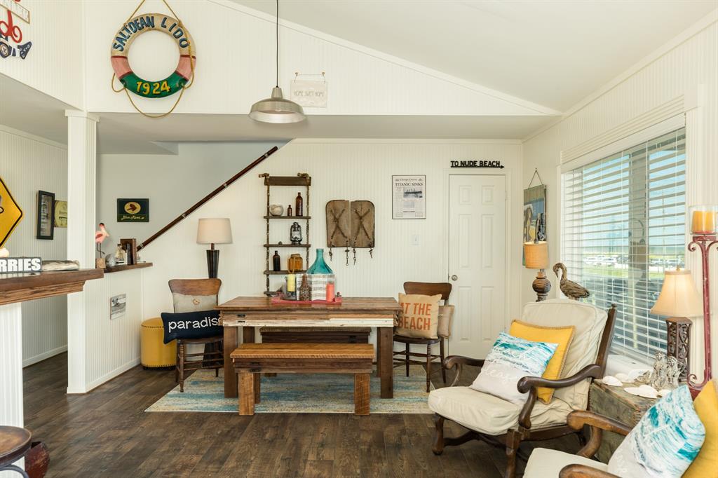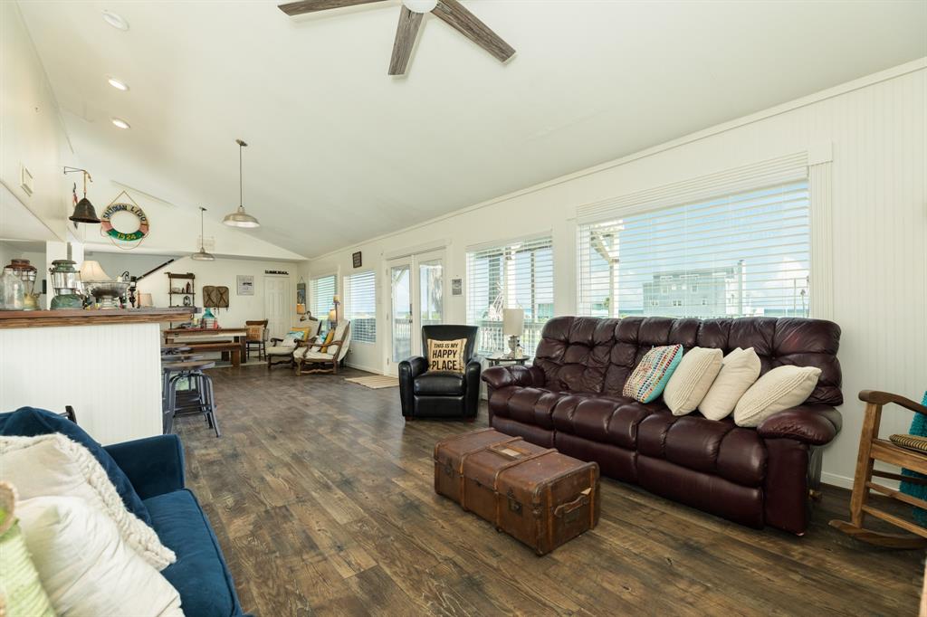 Great Gulf views from this living dining kitchen plan w/wall to wall beadboard,seaward side bay windows & rich looking wood laminate flooring throughout.The living area complete w/vaulted ceilings that span most of the living /kitchen area.The kitchen features butcher block counters & bar top that has seating for 8 or more w/a reclaimed wood accent wall.Most of the bedrooms feature crown molding & decorative casing around the windows.The downstairs bath has a 9’ vanity w/2 glass vessel sinks.This ready to walk into home has prominent designer touches w/nautical & rustic vintage décor to create a stunning look throughout.Stacked front load washer & dryer upstairs for convenience.The exterior features:low maintenance vinyl,first & second floor decks & most windows have roll down shutters.There is an outdoor shower,storage area & the yard is fully fenced.Sea Isle community includes fishing pier,restaurant,tennis court,pool,marina & store.All furnishings negotiable.NO SHOWINGS UNTIL 8/6/21