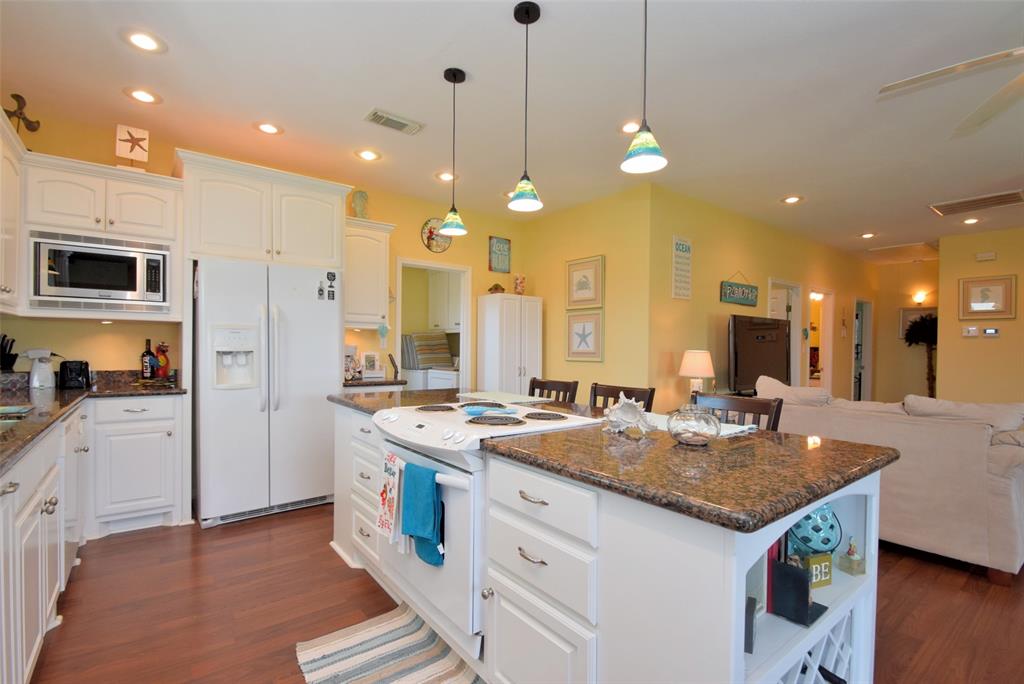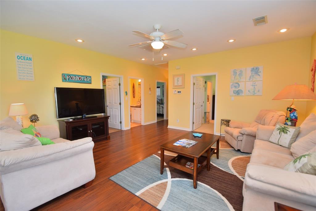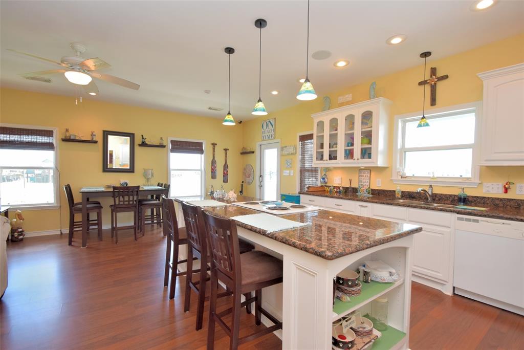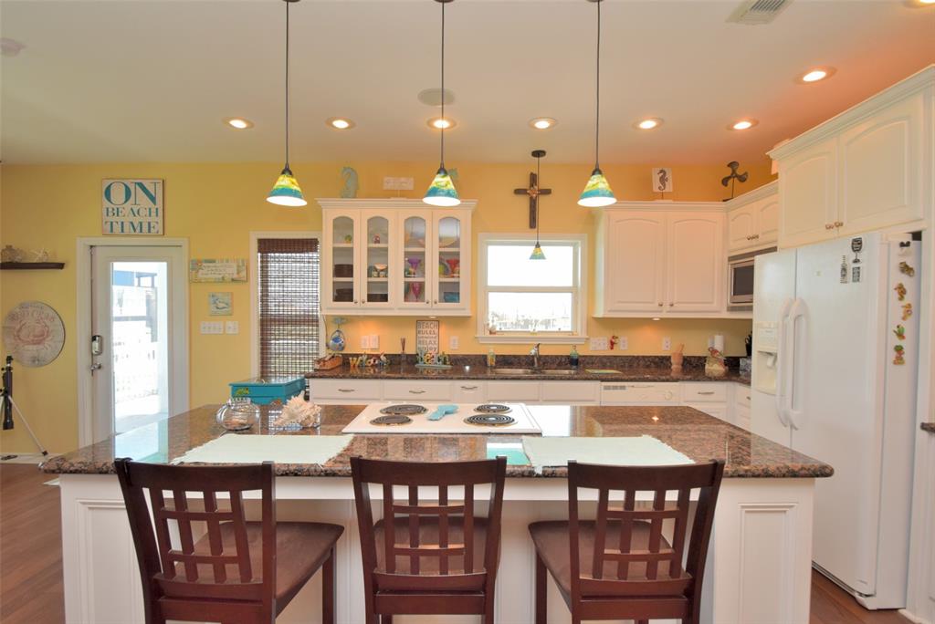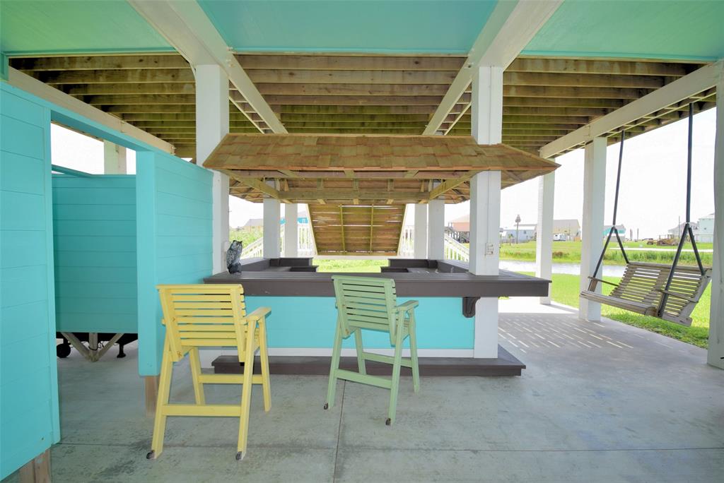 You have found paradise with this Rare 3 bedroom, 3 bath nestled in a Culdesac with Two opposing staircases AND Ocean Views! Downstairs has a full entertainment bar/cabana, sand shower, hot tub and garage all nestled on a huge 17,162 sf. lot which includes a fresh water body of water adjoining the property. This home is pristine and shows pride of ownership! She comes completely furnished all the way down to the koozies. Her upper deck is large and boasts amazing views of the Ocean while her setting is tranquil and private. This beach house sleeps 13 which includes a bunk room that sleeps 5 kiddos. Each room is equipped with a TV and/or Media games, full surround sound and has an existing Vivint Home Security System. This beach beauty is tastefully decorated and move-in ready! Come Relax, Unwind and Enjoy the Serenity of Crystal Beach:)