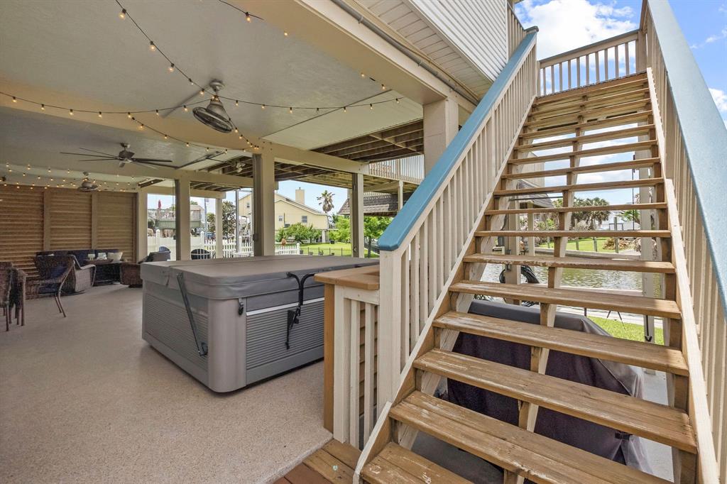 UPGRADES GALORE! This waterfront home has so much to offer. Designer series interior paint throughout, a single-story living space with multiple gathering areas and stunning views. This three bedroom, two and half bath is coastal living at it's finest with the comforts of home. Spacious primary bedroom boasts an oversized walk-in closet with custom cabinetry and built-ins with ample storage for all your needs. Open concept kitchen offers granite countertops and oversized island with extra storage that looks into the dining area and living room with gas fireplace. Easy access from the light and bright living area, through the french doors to the covered balcony and sun deck. The exterior cargo lift gives access to the ground level entertaining space with epoxy flooring throughout, hot tub and portable kitchen that both convey with the home, multi-use boat house and lift with wave runner parking and extended dock.