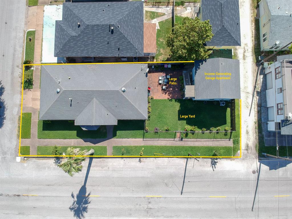 TWO BLOCKS FROM SEAWALL!!!! Well-built brick 3 BR 1 1/2 BATH 2 CAR GARAGE home with additional 1 BR 1 BA GARAGE APARTMENT that has its own 2-car garage with laundry and separate alley access IN REAR. This would make a great full-time home or Galveston getaway, or even a perfect income-producing vacation rental property. Original hardwood floors throughout this impeccably maintained home. Large, fenced corner lot.