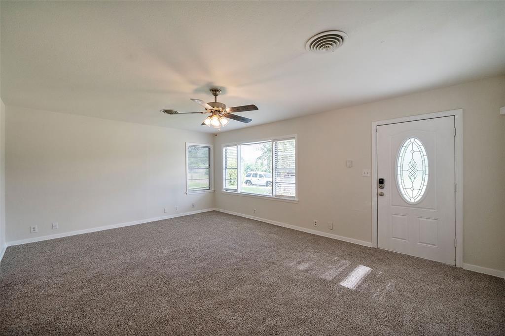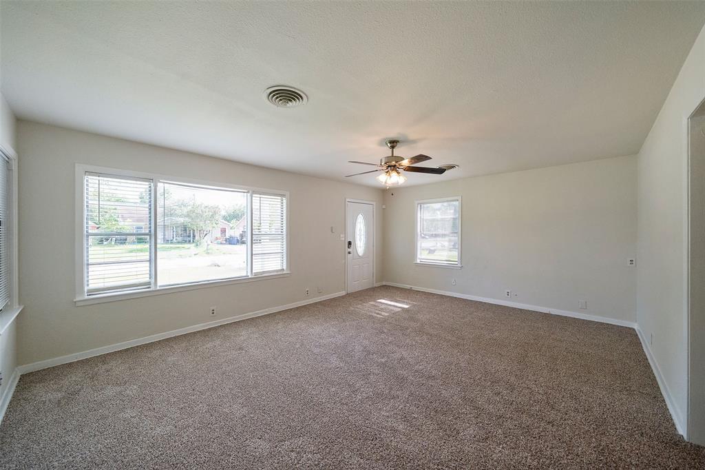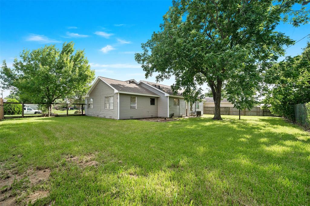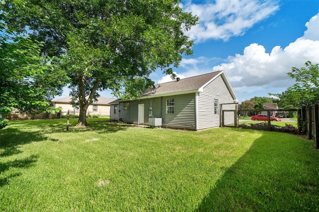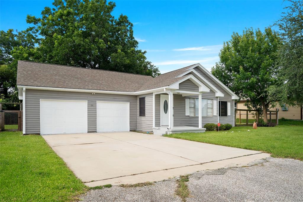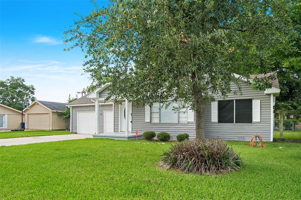 Charming 3 bedroom, 1 bathroom, single-story home featuring a 2-car attached garage, fresh exterior paint, and a shaded front porch! Inside, you'll find new carpet throughout, a spacious living room, a utility room, and a dining area adjacent to the kitchen with wood-look tile. The full bathroom includes a tub and a separate shower while the backyard is huge. This home is located with proximity to major roads, Kemah, and Galveston Island!