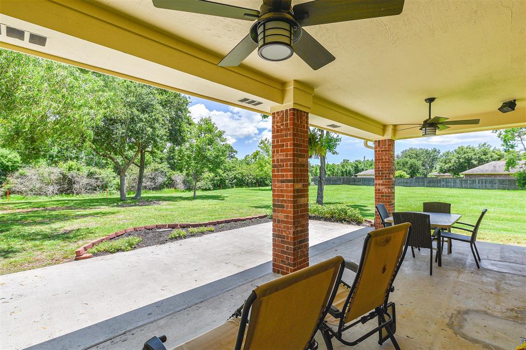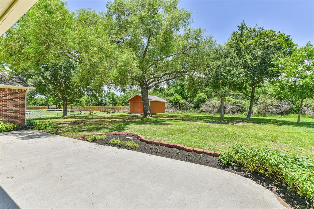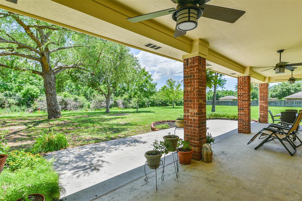 - Exterior: Back Yard, Controlled Subdivision Access, Covered Patio/Deck, Not Fenced, Porch, Satellite Dish, Side Yard, Storage Shed