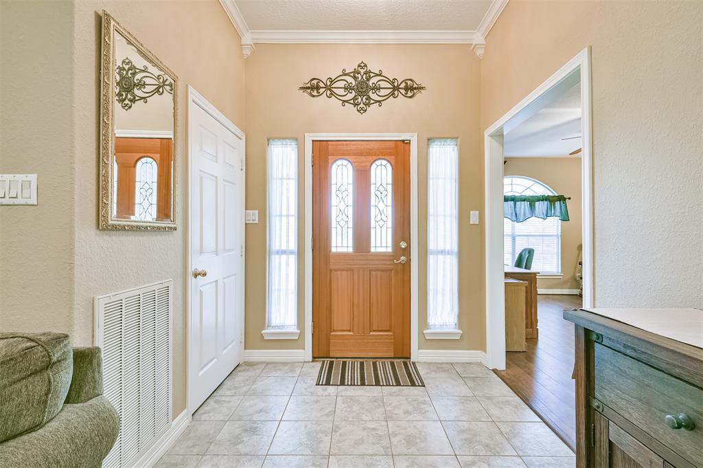 - Interior: Alarm System - Owned, Crown Molding, Drapes/Curtains/Window Cover, Fire/Smoke Alarm, High Ceiling