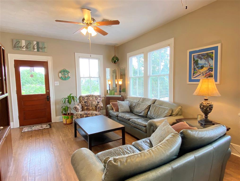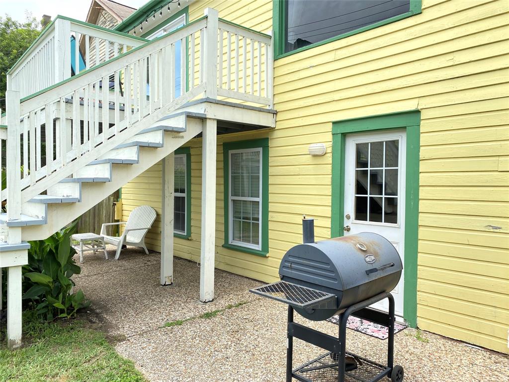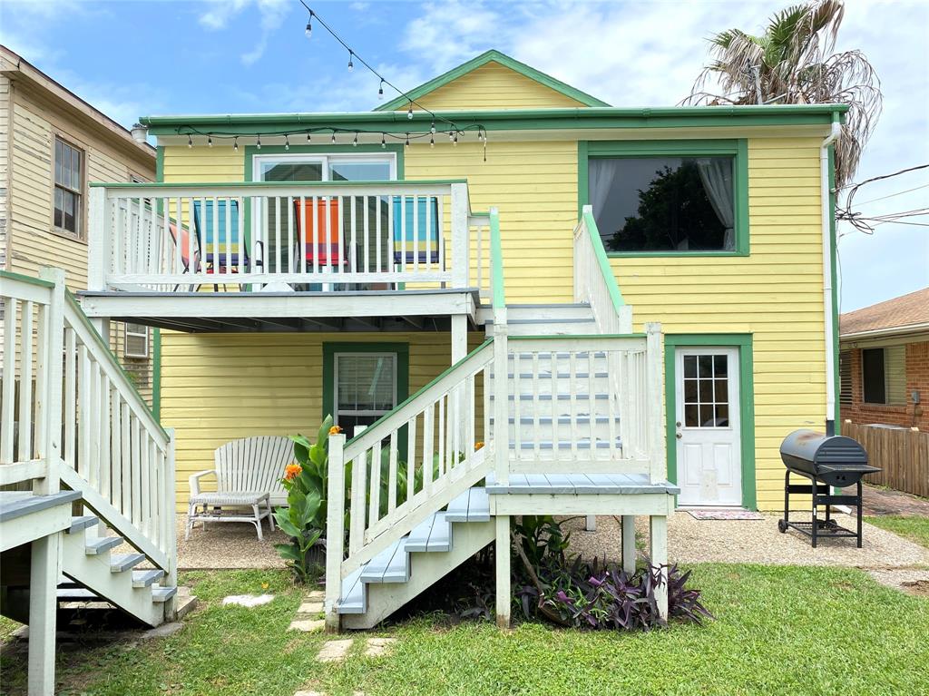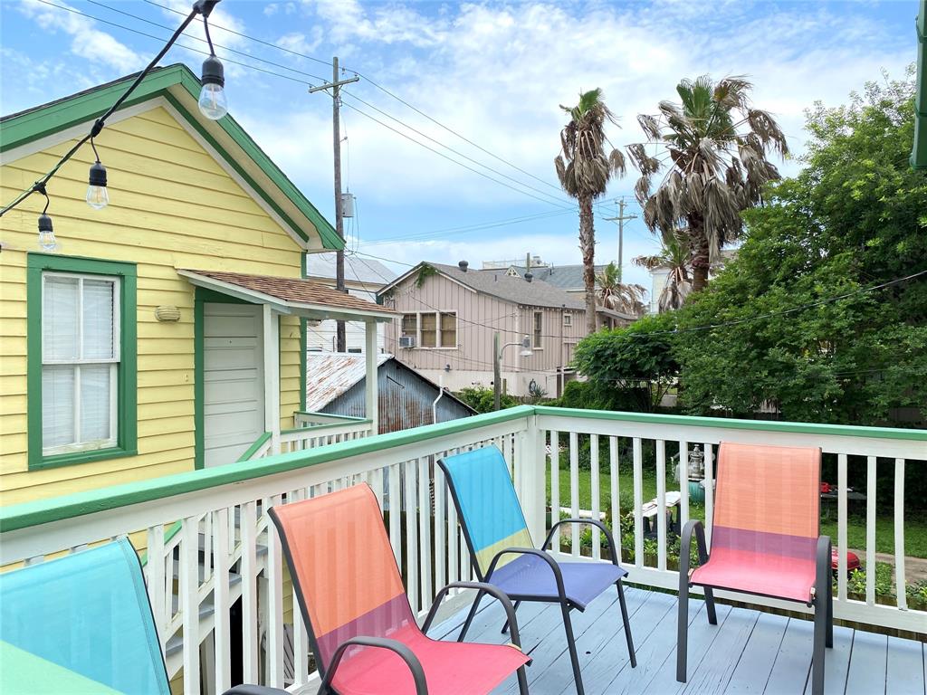 Great Investment property! This charming raised east end bungalow comes with a downstairs 2/1 apartment and a 1/1garage apartment. The upstairs home has had sparkling redo, it is a 2/ 1 bath with an expansive spacious family room that is great for entertaining and it opens to a spacious outside deck! The home features beautiful hardwood floors and updated kitchen. Downstairs apartment is a 2/1 with a recently updated bathroom. THe thoird unit is a garage apartment in the rear of the property that is currently leased. The alley one car garage includes washer/dryer connections that boith tenants could share. Nicely manicured lawn space, lots of storage, great earning potential for long or short term rentals! Unlike many east end properties, this has 2 garages one under the main house the orther off the alley providing for ample off street parking . Located in the EEHD, conveniently close to UTMB and 14th st corridor of restaurants. PErfect to live in one and rent the other 2.