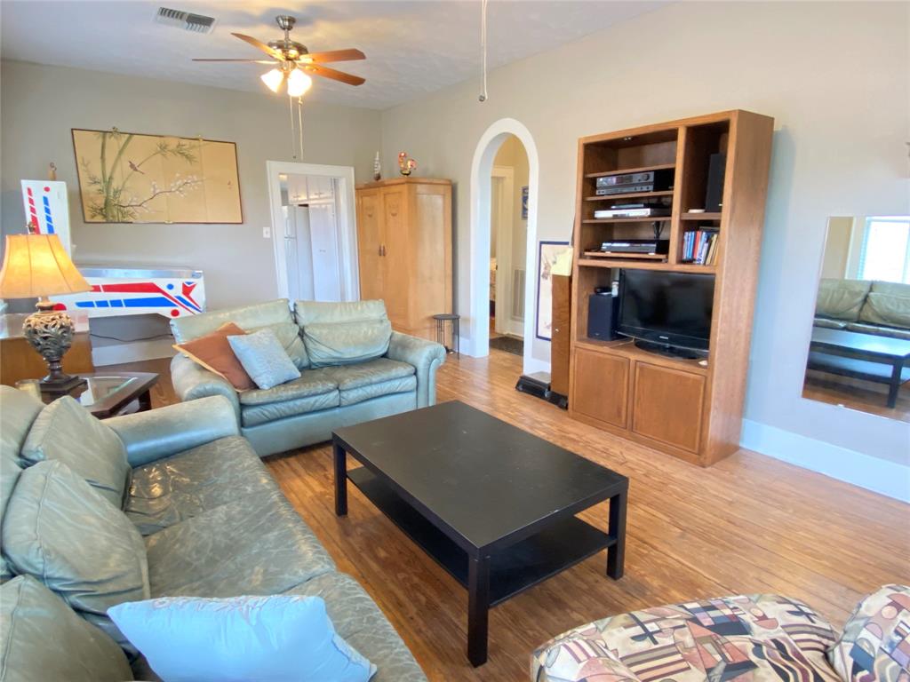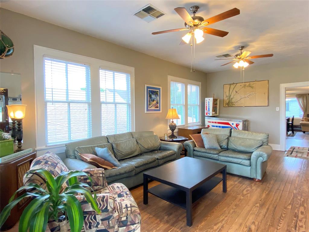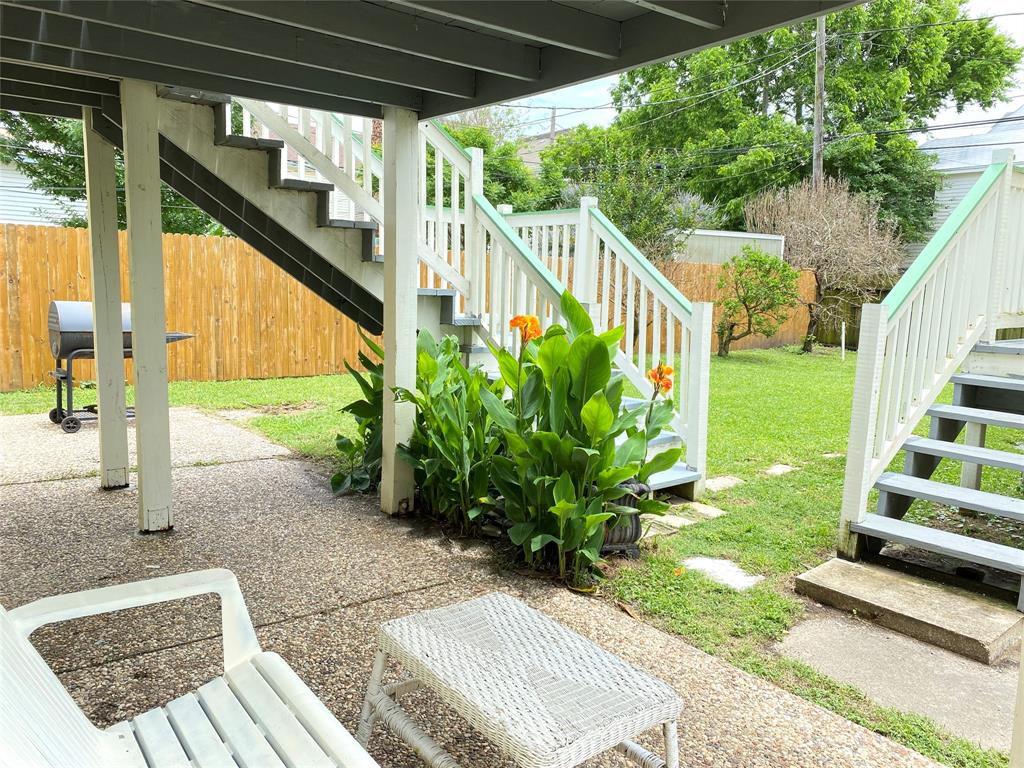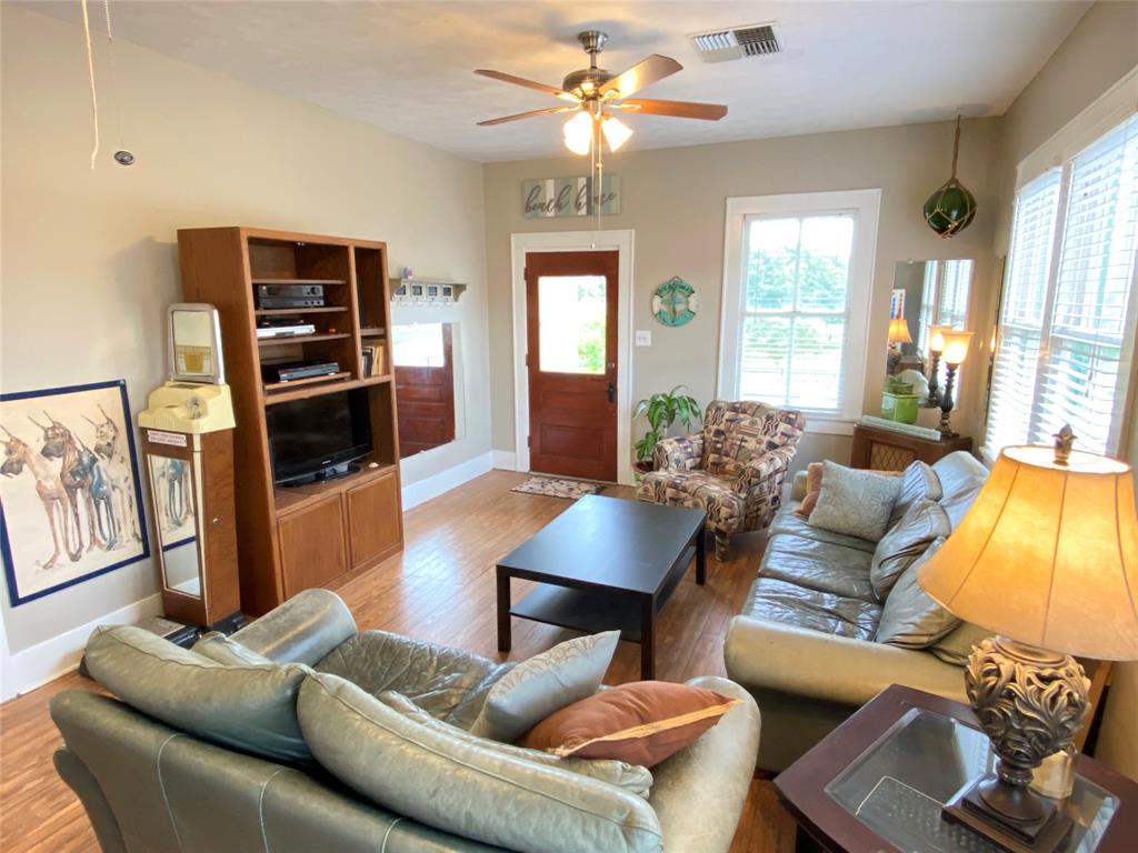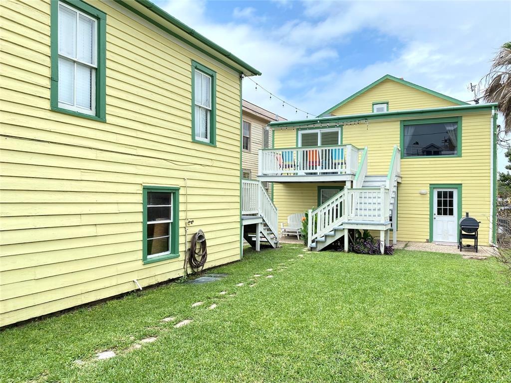 Great Investment property! This charming raised east end bungalow comes with a downstairs 2/1 apartment and a 1/1garage apartment. The upstairs home has had sparkling redo, it is a 2/ 1 bath with an expansive spacious family room that is great for entertaining and it opens to a spacious outside deck! The home features beautiful hardwood floors and updated kitchen. Downstairs apartment is a 2/1 with a recently updated bathroom. THe thoird unit is a garage apartment in the rear of the property that is currently leased. The alley one car garage includes washer/dryer connections that boith tenants could share. Nicely manicured lawn space, lots of storage, great earning potential for long or short term rentals! Unlike many east end properties, this has 2 garages one under the main house the orther off the alley providing for ample off street parking . Located in the EEHD, conveniently close to UTMB and 14th st corridor of restaurants. PErfect to live in one and rent the other 2.