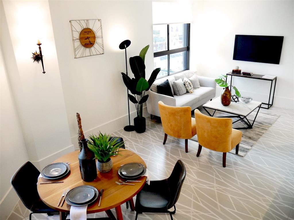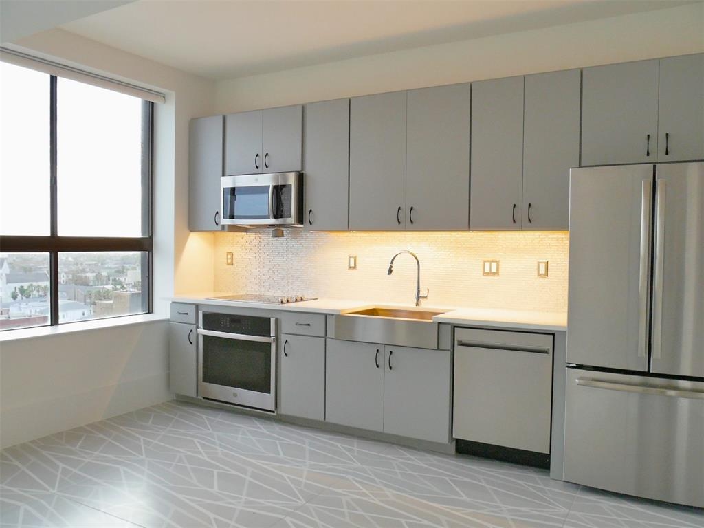 The United States National Bank is an iconic historic building at 2201 Market Street that has redeveloped to incorporate 61 luxury one and two bed apartments. Interiors were designed by renown international designer Karim Rashid who has brilliantly and seamlessly blended a historic setting w/ an ultra modern vibe. This unit is the only one with Bathtub and is the largest, SS appliances top of the line fixtures & cabinetry w/ upscale tile flooring throughout. Spa like bathroom with expansive shower. Stackable W/D in unit. The roof will include: 4ft. pool & equipped gym. Residents can enjoy an incredible live, work, play lifestyle in the heart of walkable Galveston close to all the island has to offer! Storage spaces downstairs for lease as well as a bike rack and bikes to borrow! Valet trash service. Parking available in lot across street not included. Pets case by case basis. State of the art key system. Interior pics are of furnished model all units have similar fixtures & flooring.
