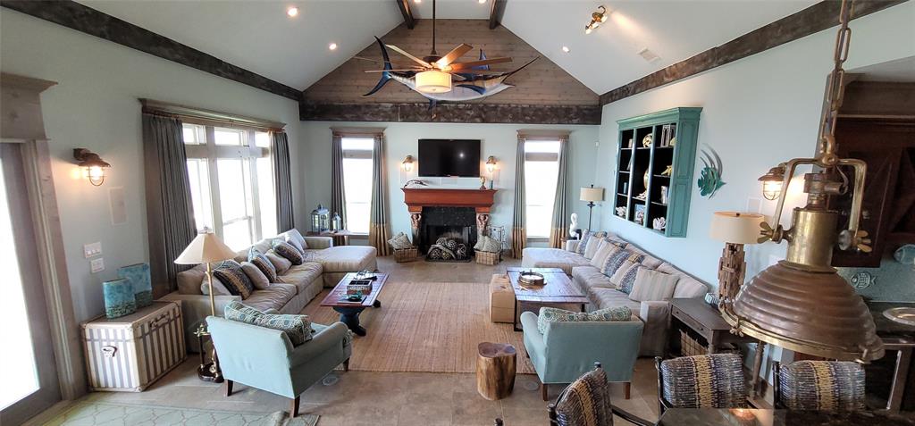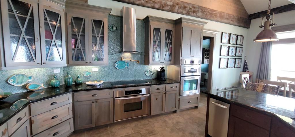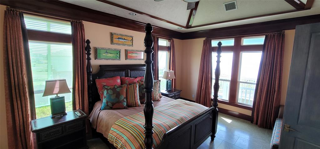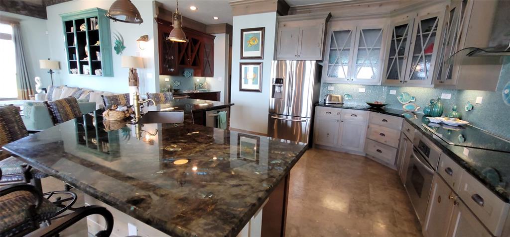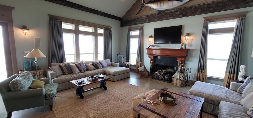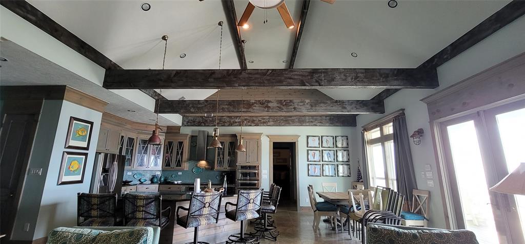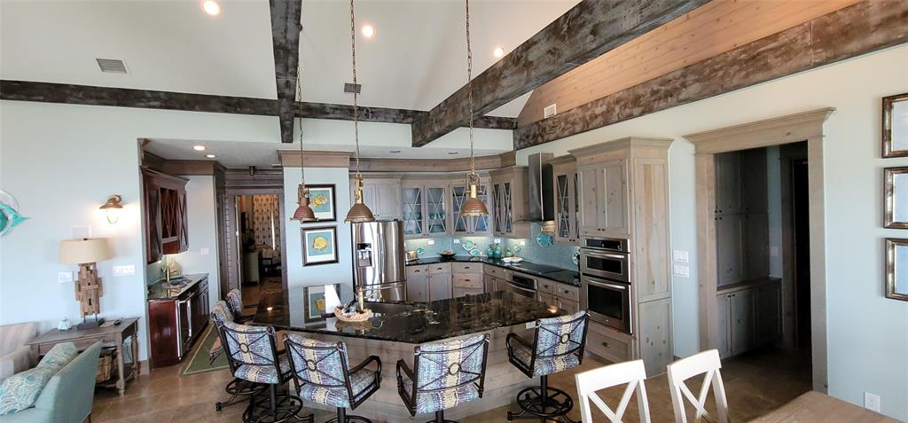 Beautiful 4 bedroom beachfront home in The Dunes subdivision. This spectacular home has loads of detail. The kitchen features a large granite bar for gatherings, double ovens, built in microwave, custom cabinetry, and wine fridge with a coffee bar. The extra large living room and dining combo has a magnificent vaulted ceiling with beautiful truss expanding the room. Crown moldings outlines the windows that overlook the Gulf of Mexico. All 4 bedrooms have a full bath with its own unique design and décor. The detail in this beach home is a must see. This home is ready for enjoyment or investment. ALL furnishings stay (except for the blue marlin in living room). Exterior features 2 garages, showers, large deck with concrete table tops, and cargo lift.
