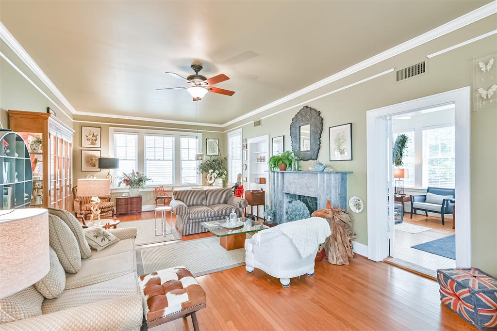 Magnificient Great Gatsby Style Home is a Fabulous Venue for Entertaining! This California-Mediterranean Style, Real Stucco Home was Built to Stand the Test of Time - On a Double Lot - Large Enough for a Pool! Masterfully Designed Kitchen with Sub-Zero Refrigerator/Wine Fridge and Very High End Cabinetry was Recently Completed. Renovated Baths - Including an Exceptional Master Bathroom! Elegant Room Sizes with Beautiful Wood Floors, High Ceilings and Moldings Make This Property Grand! Needing Room to Park 4 Cars? There is Both an Attached Drive-Through Garage and a Separate Detached Garage with Guest Apartment and Media Room (Recently Used for Train Collection). 1st Floor Den Could Be Used for Additional Bedroom. Enormous Backyard has Large Pergola (Not Shown) for Outdoor Entertaining and Lawn Parties. Centrally Located Close to Everything-Beach/Seawall, UTMB, Retail, Restaurants! Live Your Best Life Here! Irregular Room Dimensions-Measure Critical Dimensions for Furniture!