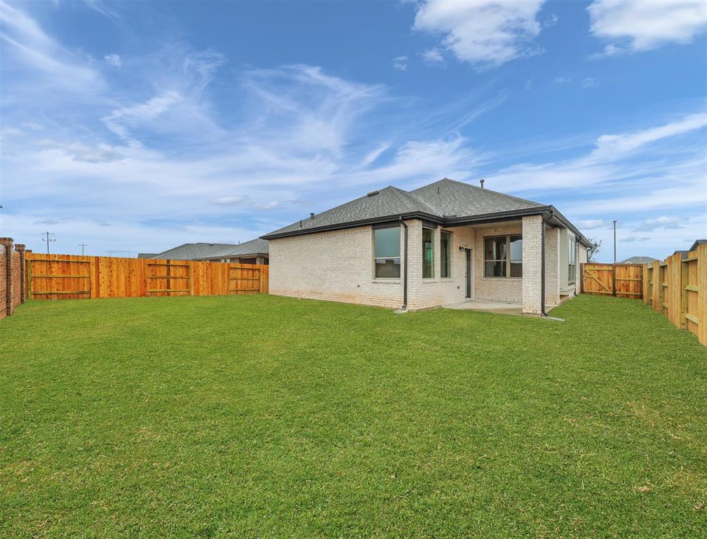 - Exterior: Back Yard Fenced, Covered Patio/Deck, Sprinkler System