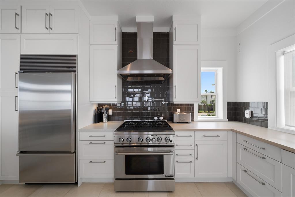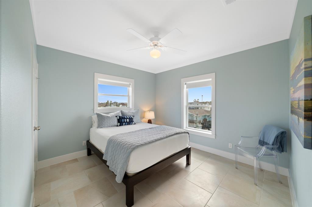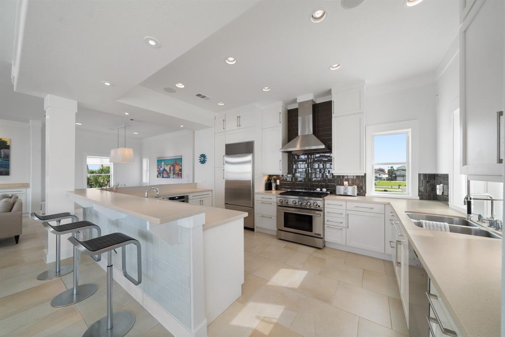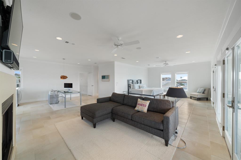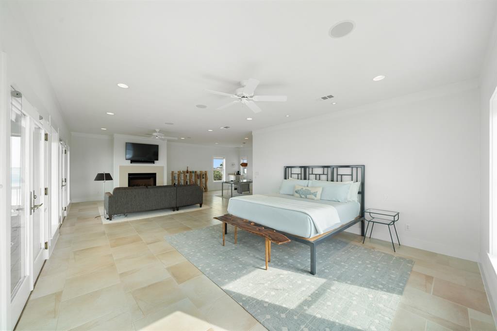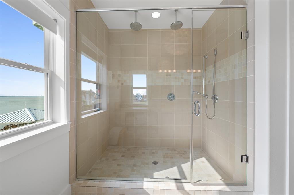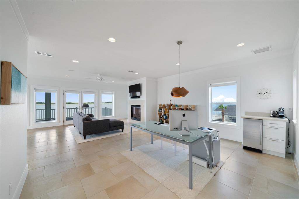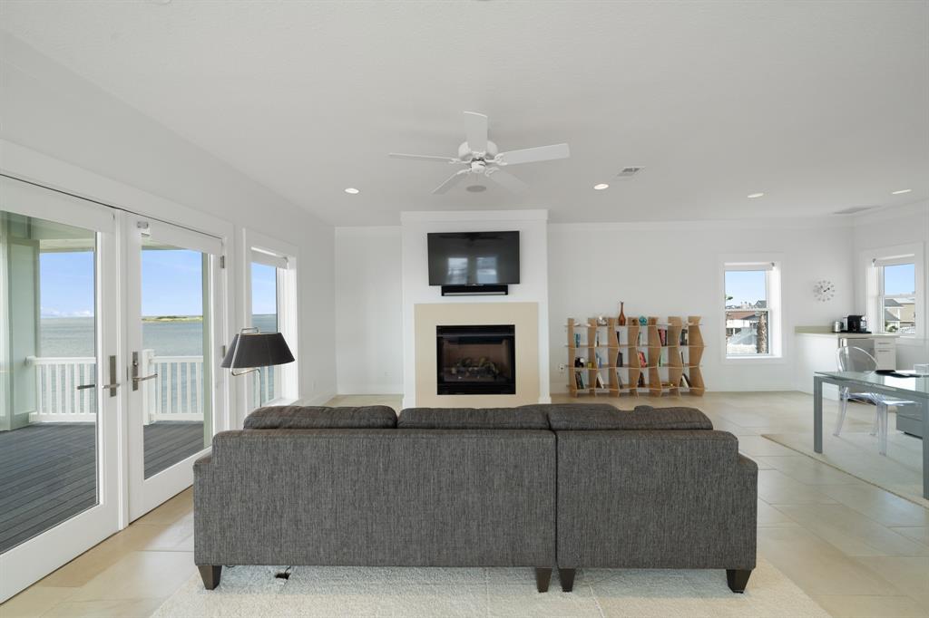 Meticulously maintained home located on Galveston Bay with unobstructed views of the bay and Deer Island from the living, dining, kitchen, and master bedroom with a huge partially covered Trex dining and lounging deck off the living room, and fully covered porch off master bedroom. The home features high end finishes and appliances with a clean modern look. The master suite is open and large with a study area, lots of windows, walk in closet, and nicely appointed bath with large glassed shower. The home has speakers in almost every room controlled by SONOS and a Mesh WiFi system. Kitchen features Miele steamer and dishwasher, Sub Zero refrigerator and wine cooler, soft close Brookhaven cabinets and drawers, pot filler, and two sinks. Outside there is a saline pool with water feature, boat dock, fish cleaning station, accessory lift, bathroom, and shower. Enjoy some of the best fishing in Tiki right from the dock! The home is sold beautifully furnished with a few exclusions.