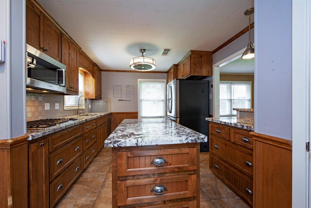 Don't miss your opportunity to see this 3 bedroom/2 bath home situated on almost 1/4 acre and located in the much sought after Mainland Park. No MUD taxes, No HOA and No Flooding! This charming home has many updates. The kitchen was recently custom designed and built. Plenty of counter space and cabinets/drawers. Gorgeous granite counters with subway tile backsplash. Bosch stainless appliances! One year old refrigerator stays too (seller paid $4000). Other features include a double oven, pot filler and island. Both bathrooms have been updated and have nice-sized walk-in tiled showers. Newer laminate and tile flooring. The windows are newer and double paned. Extra insulation has been added to the attic. Newer A/C and Heat with a warranty. Utility room inside which includes the washer and dryer. Recently installed generator pad wired and ready for a whole house generator. Spacious back yard with a patio. Detached and over-sized garage. Great for storage, man cave or a workshop.