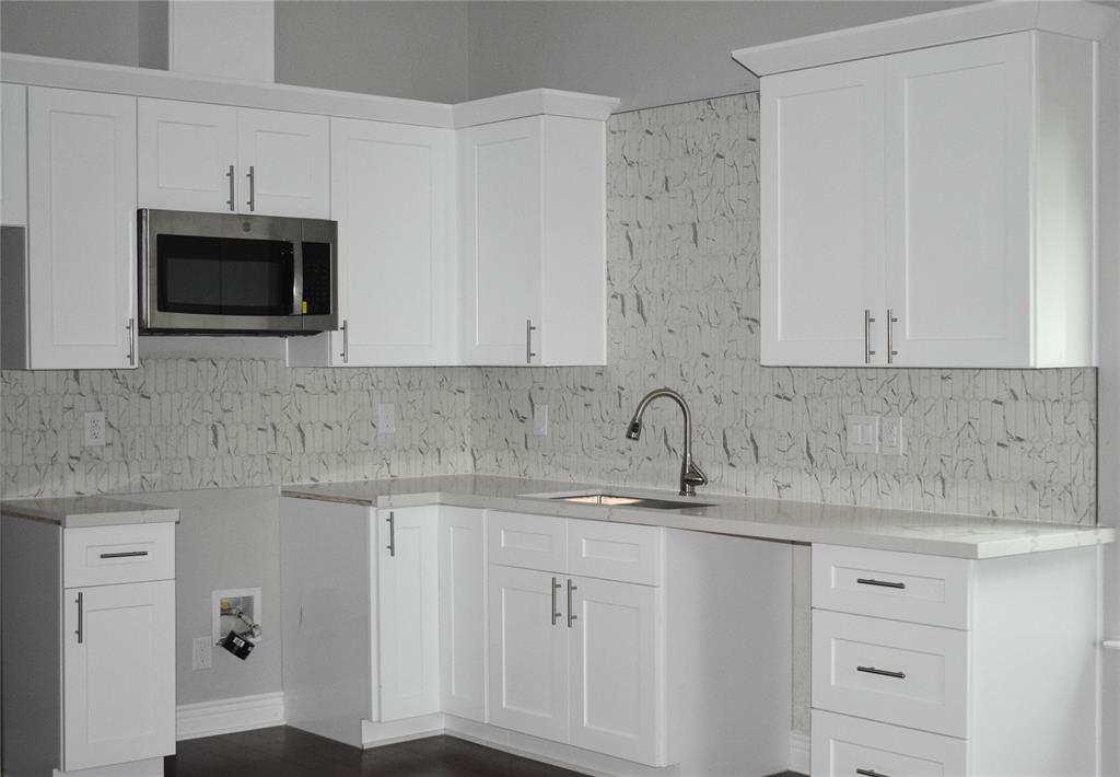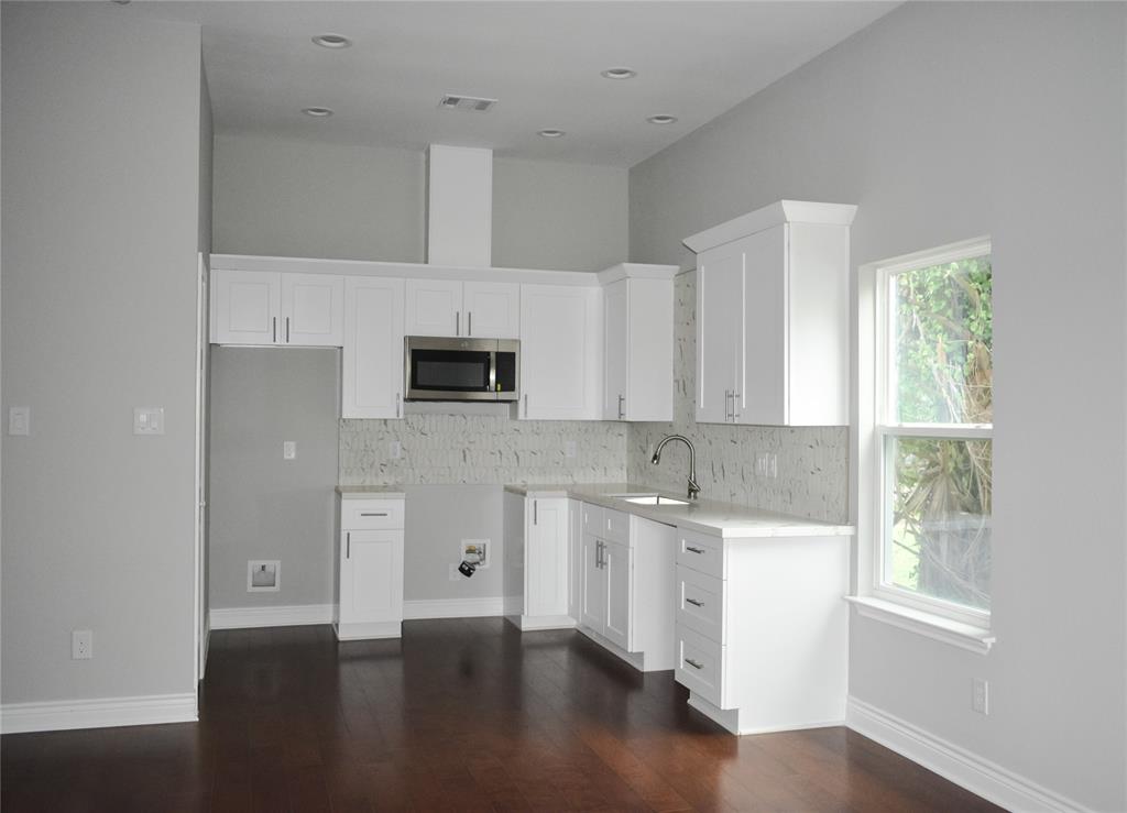 BRAND NEW, never lived in 2 bedroom, 2 bathroom home. You'll notice the excellent curb appeal upon pulling up to the home as well as a parking pad for private parking. As soon as you walk in you'll be greeted by high ceilings, gorgeous wood flooring throughout and neutral paint colors so you can make this home yours! The kitchen features white quartz countertops, white cabinets, soft close drawers, and stainless steel appliances. New gas stove, dishwasher, and microwave to be installed 5/14. You'll love the fresh and modern bathrooms, including a shower/ tub combo. Seller to install a 6' Privacy Fence around backyard. Come be the FIRST owner of this home today!