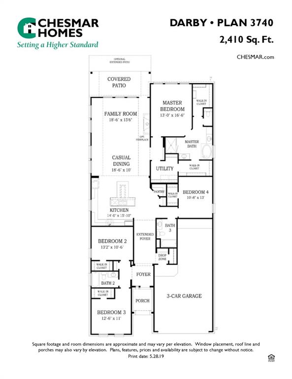 THE DARBY PLAN IS OH-SO DREAMY! Spacious Single Story offering 3 Bedrooms, 3 Bathrooms, Study w/ Storage, Covered Outdoor Living Space + 3 Car Tandem Garage! Monstrous Great Space offers Gourmet Island Kitchen w/ T-shaped Island. Open Casual Dining and Well-lit Family Room. Private Primary Retreat has Attached Bath giving you a Walk-thru Master Closet to the Utility. Stainless Steel Appliances, 2" Blinds, Upgraded Wood Tile Flooring, Security System, Sprinkler System, Full Gutters, Fully Sodded Yard + Landscaping Pkg all included! Home is available for immediate move-in! Chesmar Homes is the builder!