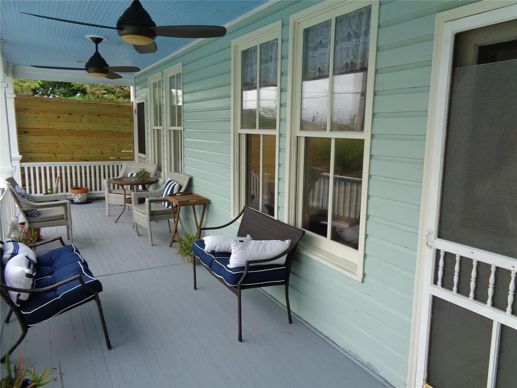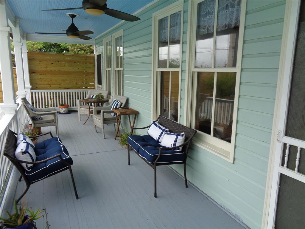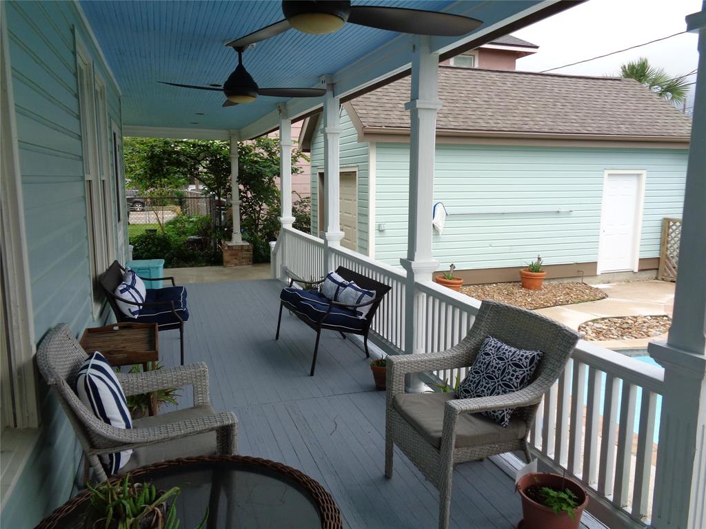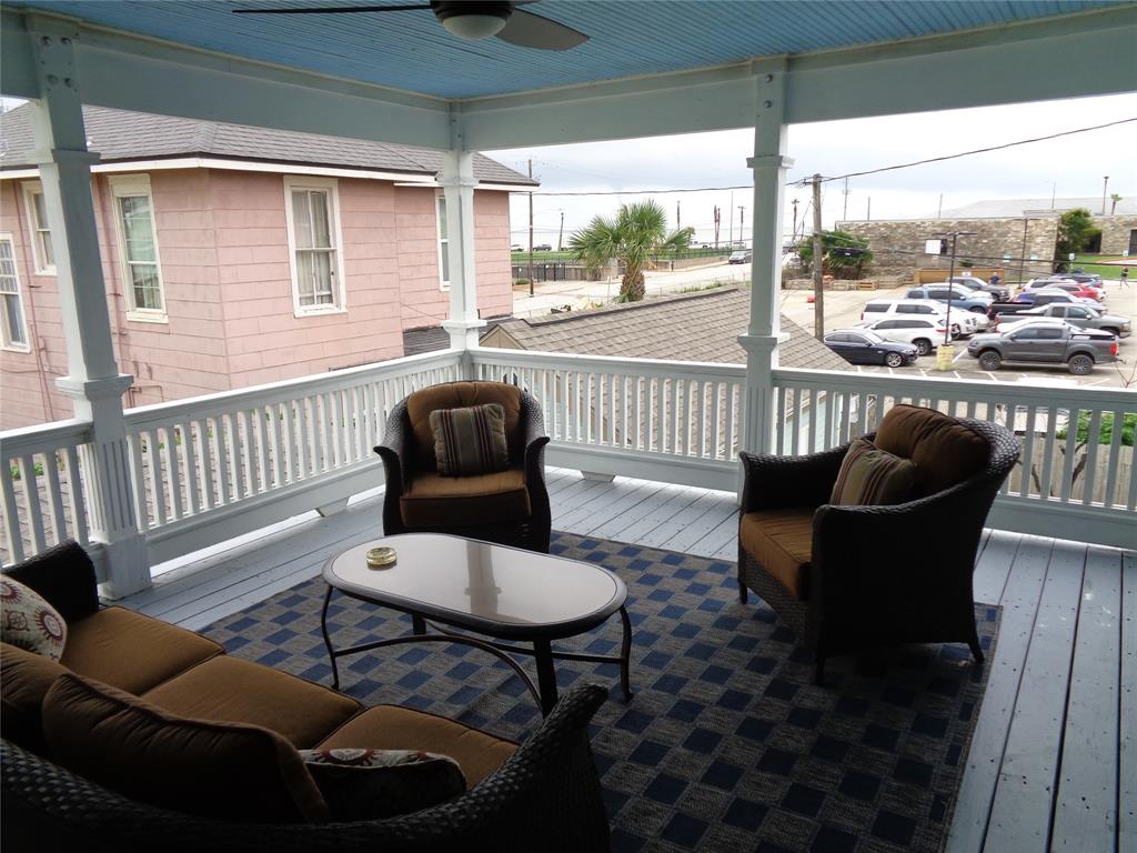 Large Victorian-style two story home with pool and Gulf Views. No other house has the location and the amenities. Very active vacation rental! Formal foyer, living and dining rooms and a wrap-around front porch. High ceilings, tall baseboards, crown molding, large upstairs landing are some of the features. Kitchen and adjoining den have access to a covered back porch overlooking the ideal pool, with fountain. Full kitchen has a long breakfast bar, a perfect place to keep the guests while the chef creates the next dish, while watching the pool activity. Three large bedrooms & laundry upstairs. Covered deck/porch(17x14) upstairs with views of Gulf and seawall. The floorplan and proximity to the beach, and the trolleys will be going in front of the house. This is Galveston.