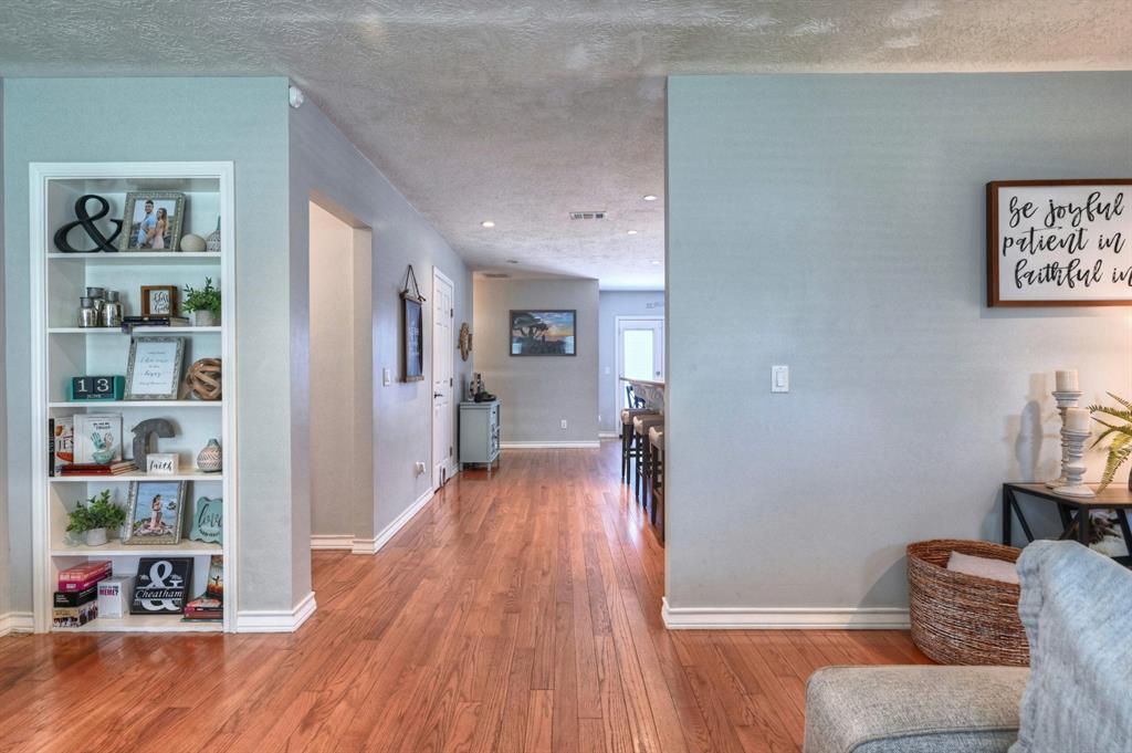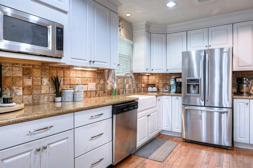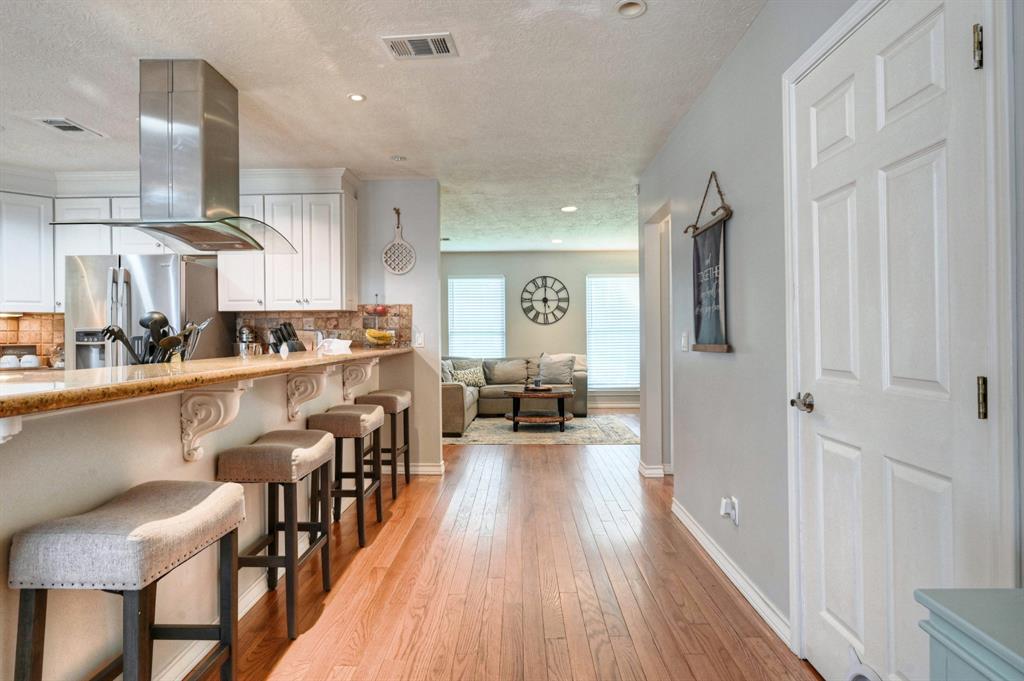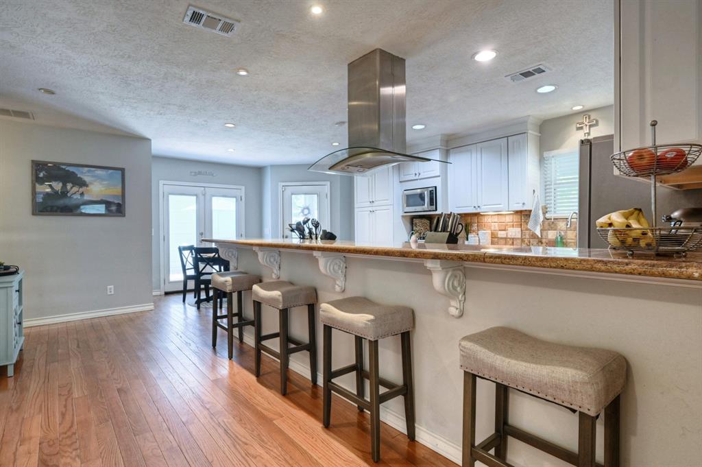 Well updated 3bed/2bath Lindale Park (Fish Village) home on a perfect corner lot. Screen porch offers views of gorgeous sunsets over the park and yacht basin. Walking distance to UTMB. Fabulous kitchen with custom cabinets, updated backsplash, granite countertops, and upgraded stainless appliances. Primary bedroom has 3 closets. Primary bath with large tub and separate shower. Secondary bathroom has seen significant updates. Just across the street from Lindale Park, tennis courts, & dog park. Walking distance to yacht basin. Favorable flood insurance. Two car garage. Privacy fence in the back yard. Outdoor space galore.