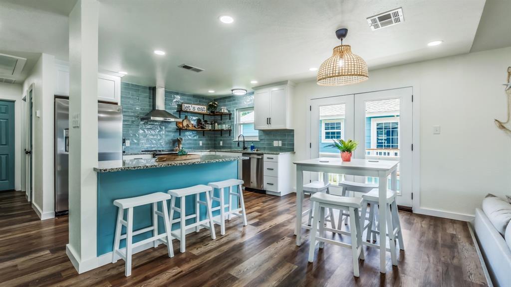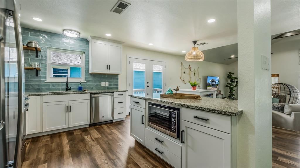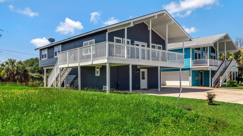 Beautiful and completely remodeled beach house in Pirates Beach subdivision. 3909 Pirates Beach Cir features 5 bedrooms, three full bathrooms, a utility area downstairs, a cabinet upstairs for front-loading washer and dryer (included), brand new appliances (included), new HVAC with dual control, new fixtures, flooring, tile, and so much more. This home is perfect for quality time with family and friends. The beautiful kitchen opens to the family room and invites conversation and socializing. Outside you will love sitting on the balcony quietly enjoying the view of the lake or entertaining friends and family. Downstairs features a large covered patio on the back that would make a perfect outdoor kitchen and entertaining area. The seller is installing an outdoor shower as well. There is so much to see here. Schedule your appointment today!