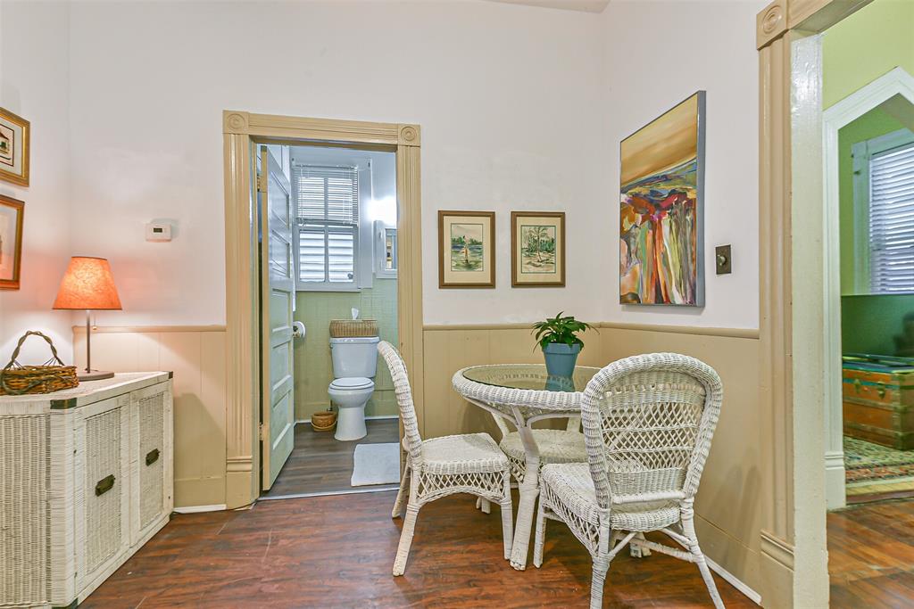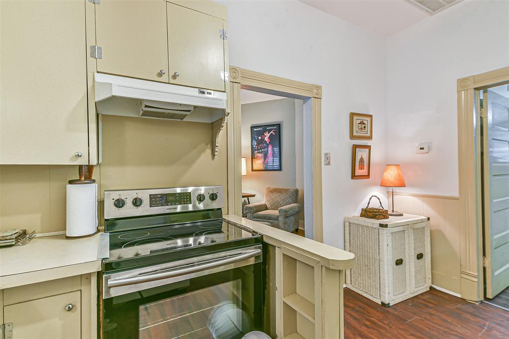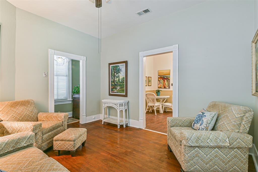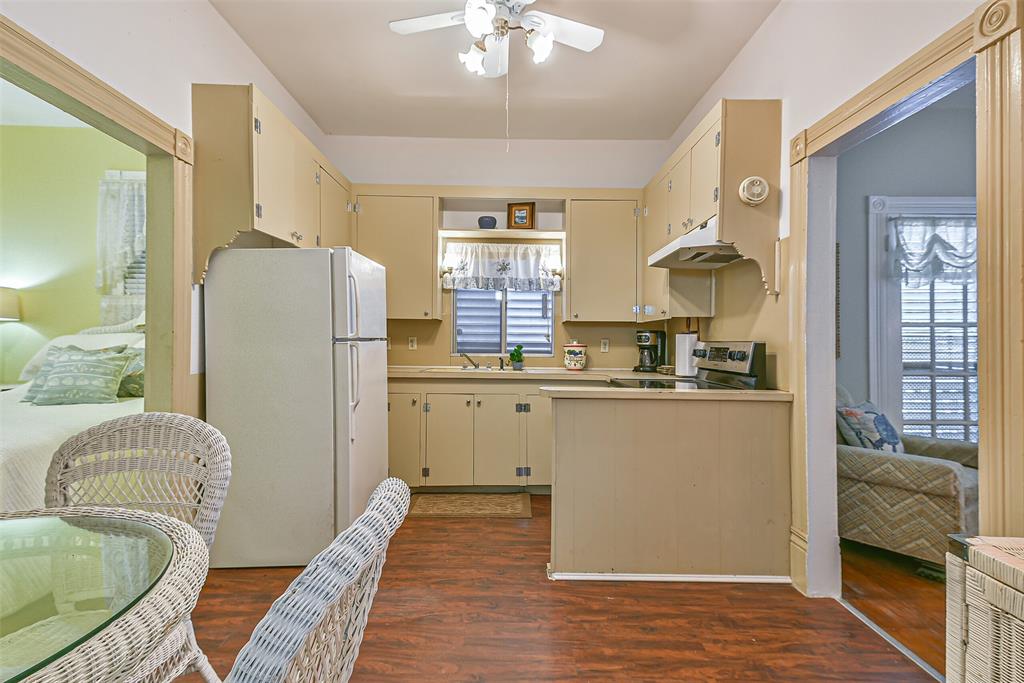 Come see this 1904 Victorian jewel. Almost as original as the day it was built. The galley kitchen is compact, but extremely handy and useful. The living room is spacious and has a door that leads to a comfy side porch that is just the right size. With two bedrooms and one bath, this small, humble abode just screams, "come to the beach." The bath has a very large closet for clothes and storage and the laundry room is huge. The beach is only two short blocks away.And only two short blocks to Pleasure Pier. Just as convenient also are all the restaurants along the seawall. One bedroom is being used presently as an office/T.V. room. The picture of you in this cozy beach cottage is coming into focus. Can you see the picture?