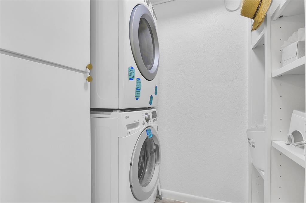 - Interior: Alarm System - Owned, Drapes/Curtains/Window Cover, Dry Bar, Dryer Included, Refrigerator Included, Washer Included, Wired for Sound