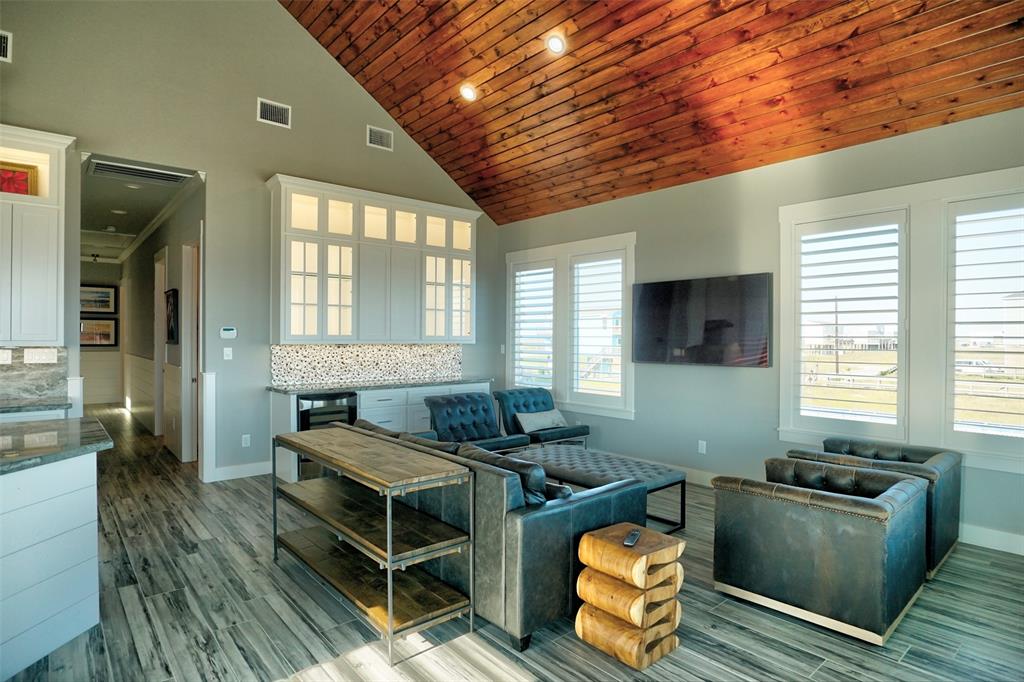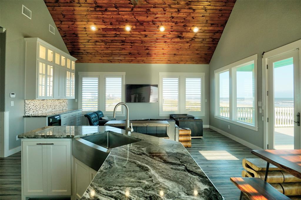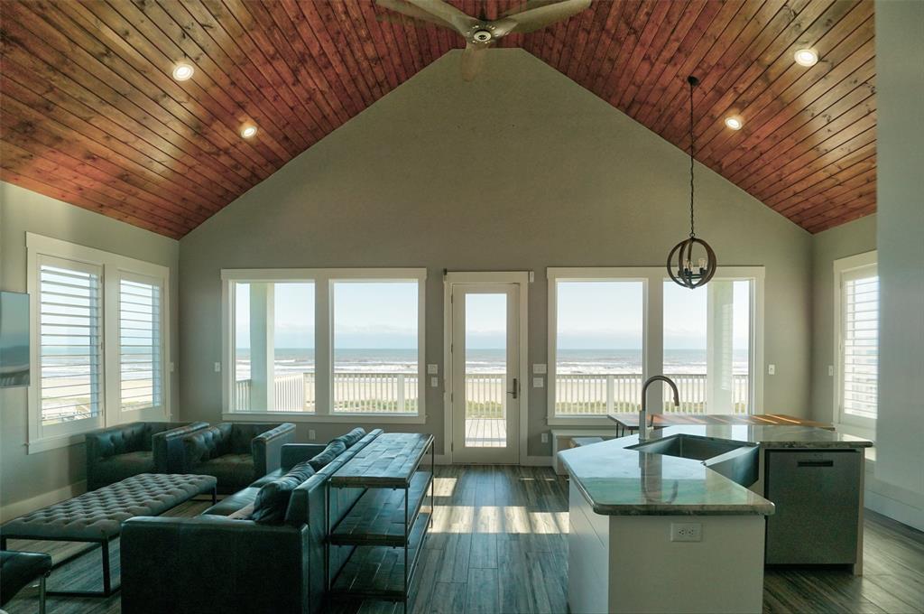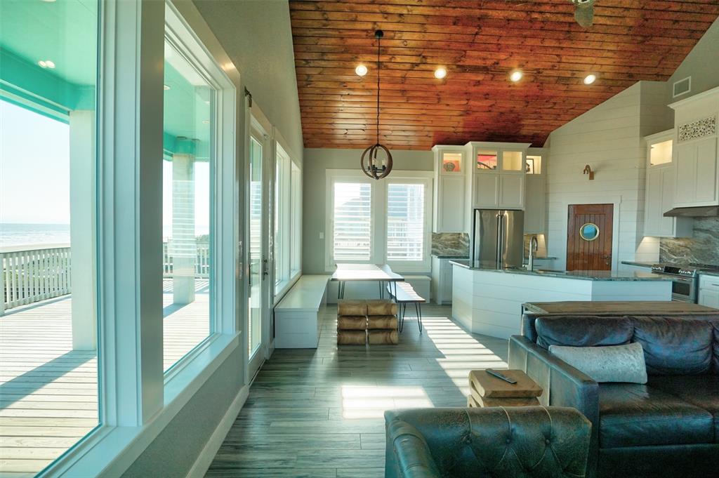 The perfect blend of coastal & nautical finishes with an amazing location & construction, this is the home you have been wanting. The home is in San Luis S/D off Bluewater Dr. on the beach with a span of dune protection & vegetation seaward of the home. There is storage under the home with a rollup door, and a large deck built with stainless steel bolts & deck screws facing the water & video surveillance. The home has impact glass windows plus electric shutters & added support to add a jacuzzi type tub or/and electricity outside to add a lift to the west side of the deck. Enter the vaulted living/kitchen/dining area with tongue & grove wood ceiling, a "ship door" to the pantry, glass front cabinets, high end appliances, marble countertops & stainless kitchen sink in the island. Throughout there is distressed shiplap paneling as well as solid interior doors. Add oyster backsplash, plantation shutters, LED lighting, a "Big Ass Fan" & you have a dream come true.