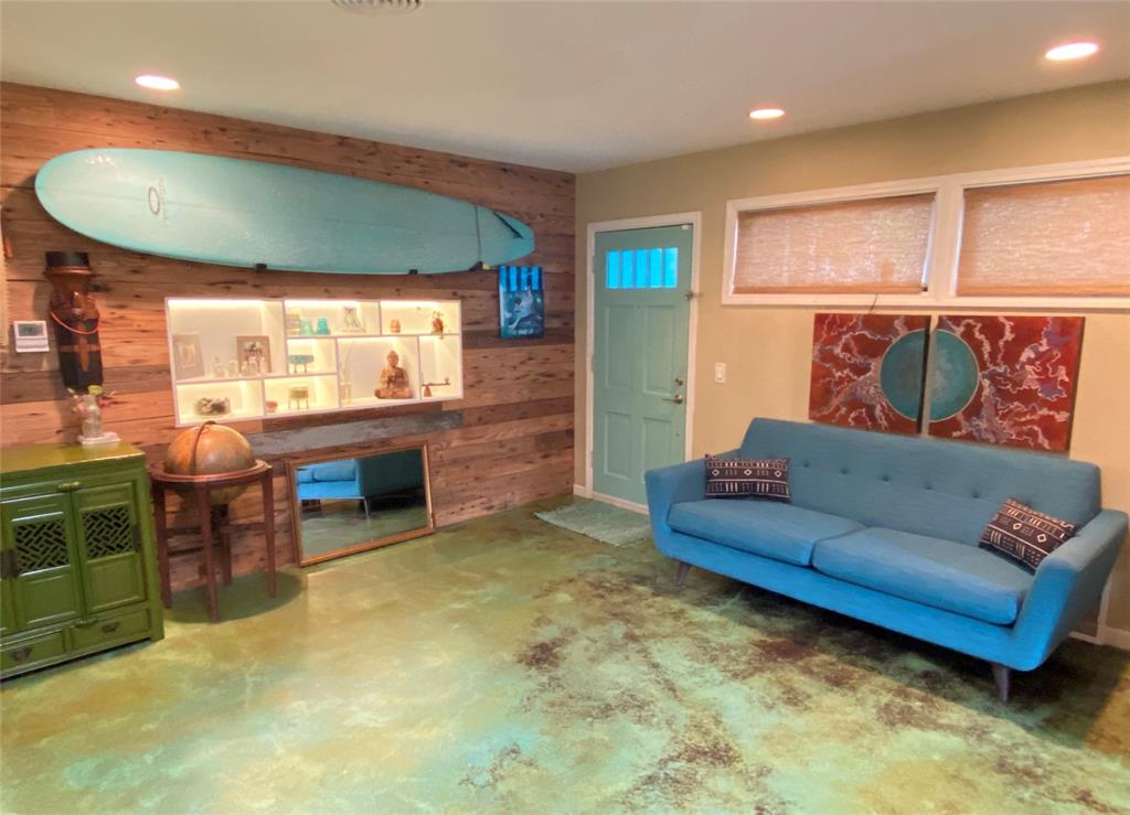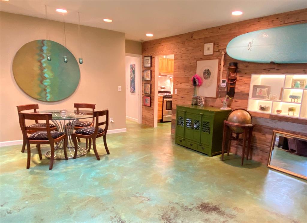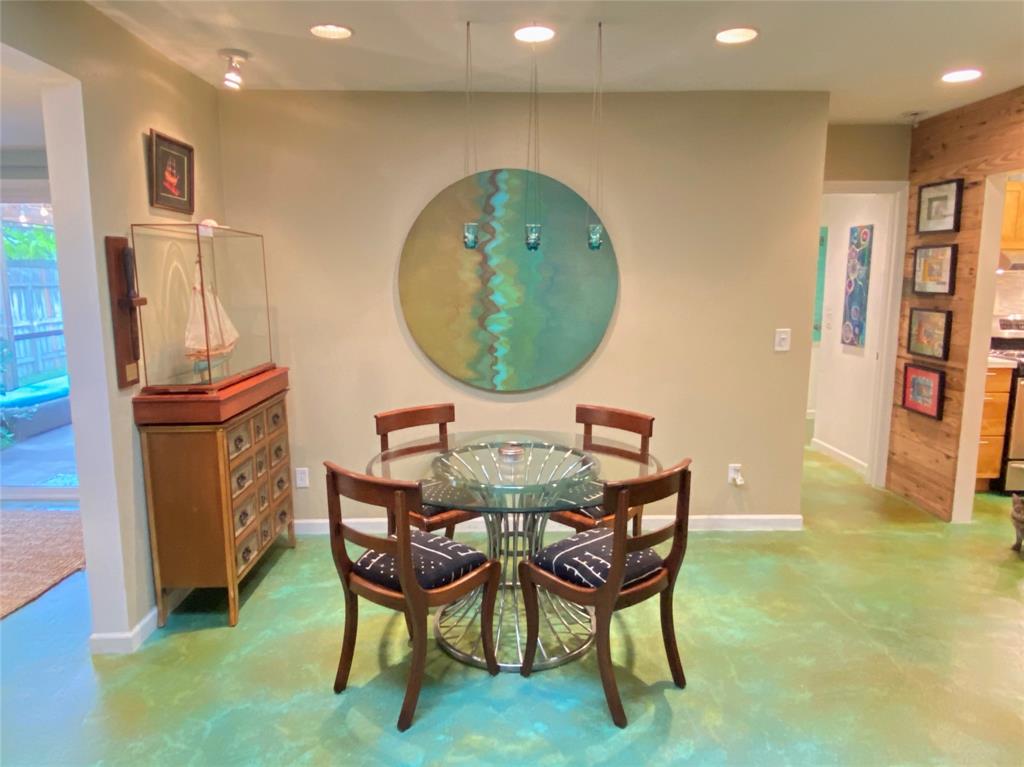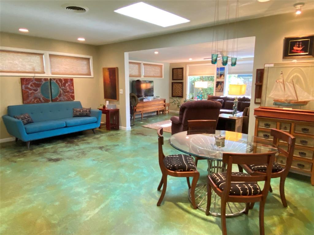 This mid century 3/2 home is located in Fish Village on Galveston?s East End. It is move-in ready with exceptional fixtures and features. Modern and updated, containing large spacious rooms with custom designed concrete floors. Close and convenient to beach, UTMB and downtown in a wonderful walkable neighborhood. Relax in the screened in porch with a fenced back yard. Two box planters are ready for a year round gardening. Not to be missed is the converted shed in back yard with great interior space for an office or playhouse. A heritage-sized oak tree shades the front yard during the hot summer months. Lindale Park features a playground, dog park and tennis courts and is at the end of the block. New roof, kitchen, A/C, leaf guard gutters, attached two car garage. This home is certainly one of a kind and not to be missed.