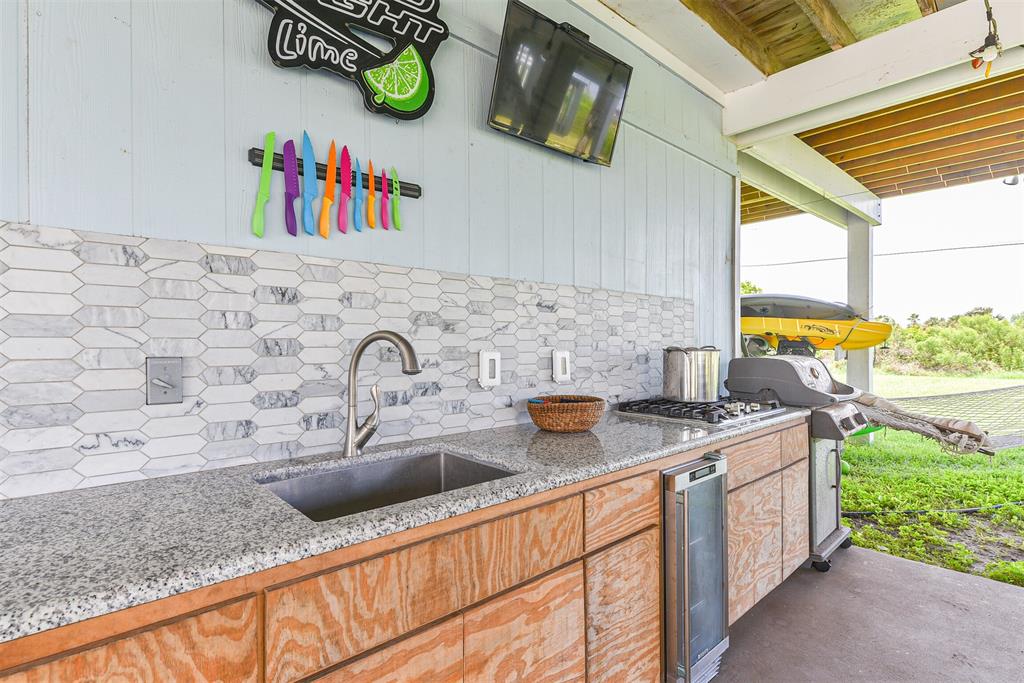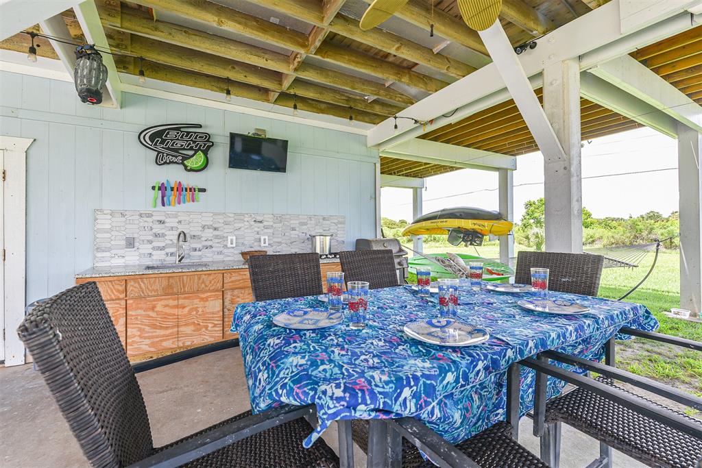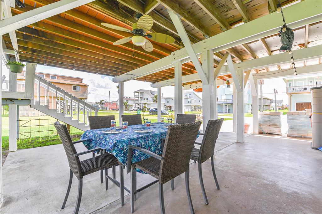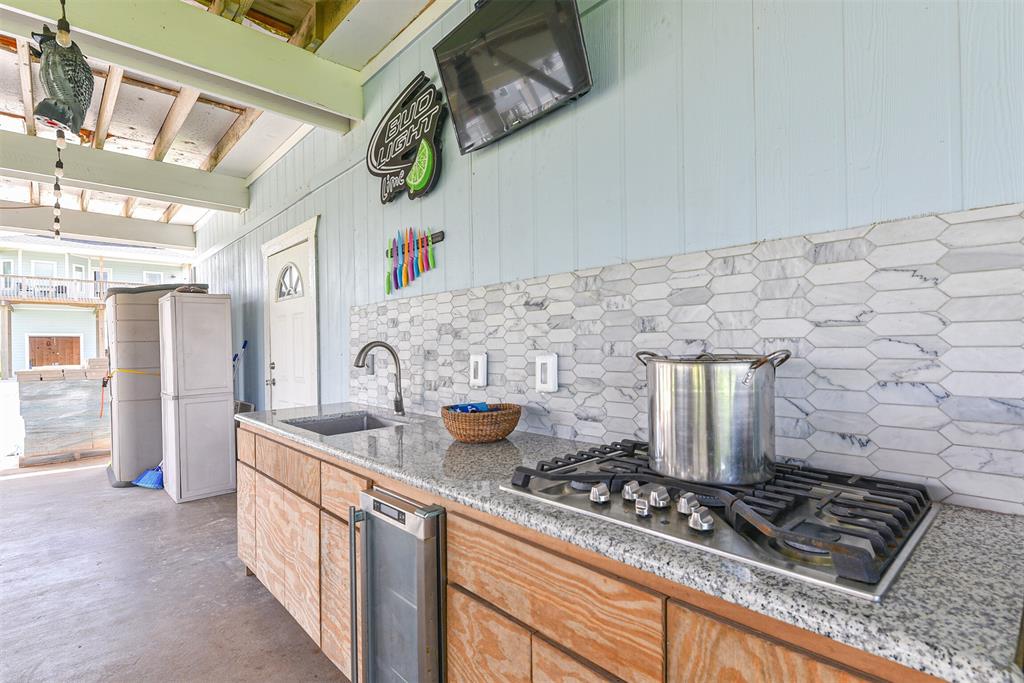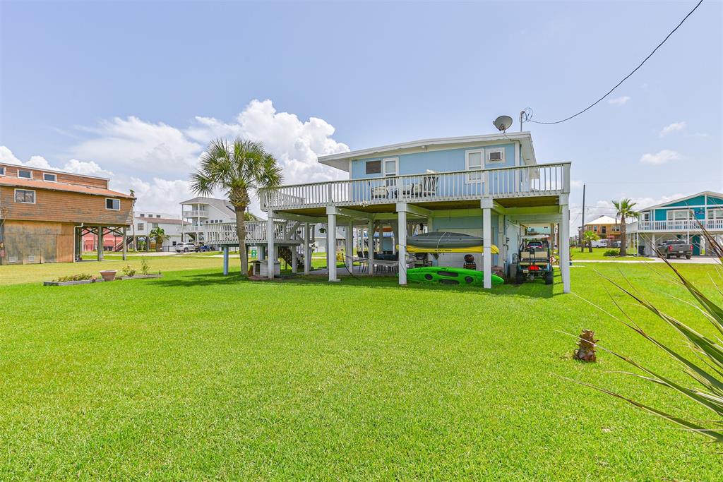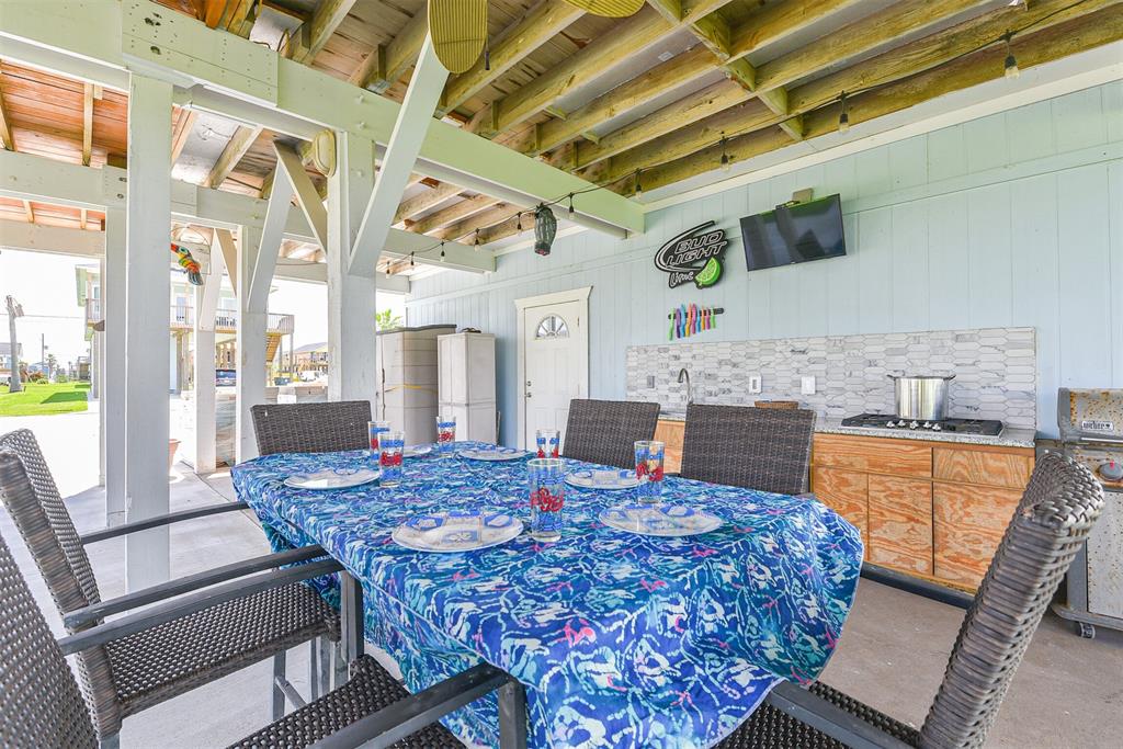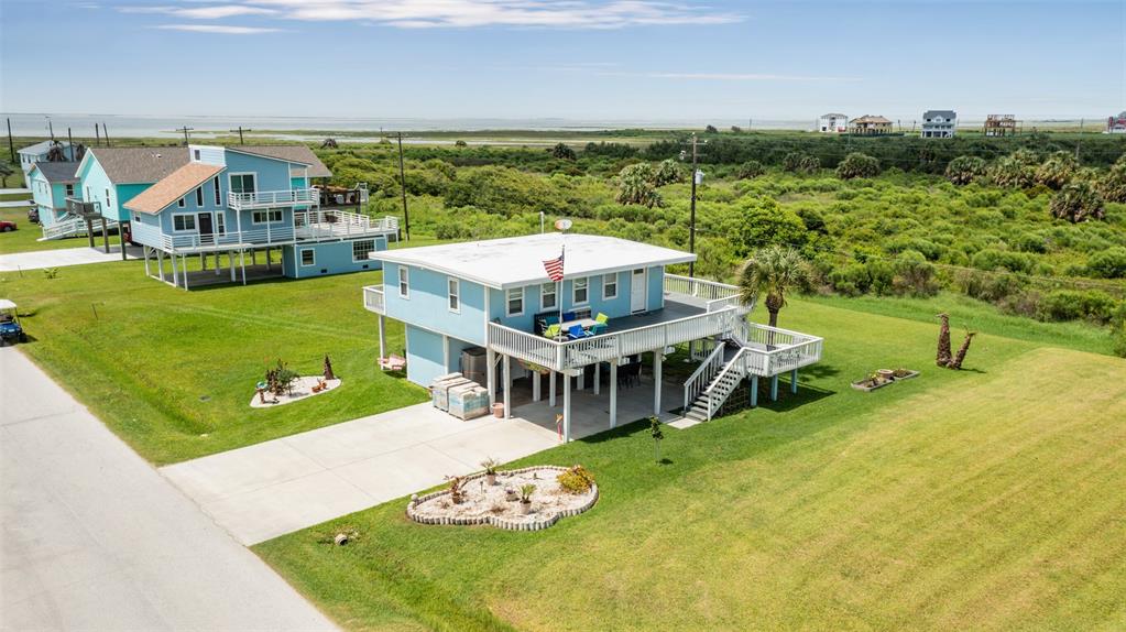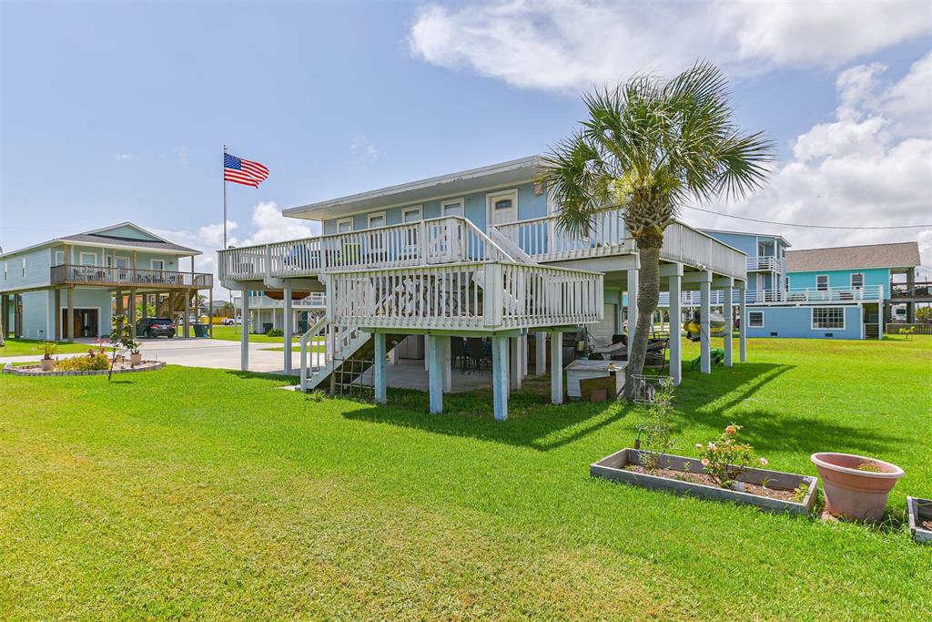 Enjoy the perks of island life. This adorable beach cottage is located in the highly desired neighborhood of Sea Isle on Galveston's West End. Take in the gulf breezes and great bay views from the large wrap around deck, or prepare your favorite meal in the outdoor kitchen after a fun day at the beach. This recently updated cottage, once featured on HGTV Beachfront Bargain Hunt offers two nice size bedrooms on the main level with an open living/kitchen/dining area. As well as an updated Holly wood bath. Additional bedroom with updated bathroom, and laundry are located on the lower level. House is grandfathered in an AE zone. Just a short walk or golf cart ride to the beach or bay. It's time to start living on island time, and enjoy all the great amenities this beautiful home, and Sea Isle has to offer. Neighborhood amenities include tennis courts, swimming pool, marina, and fishing pier. All measurements need to be verified by buyer.