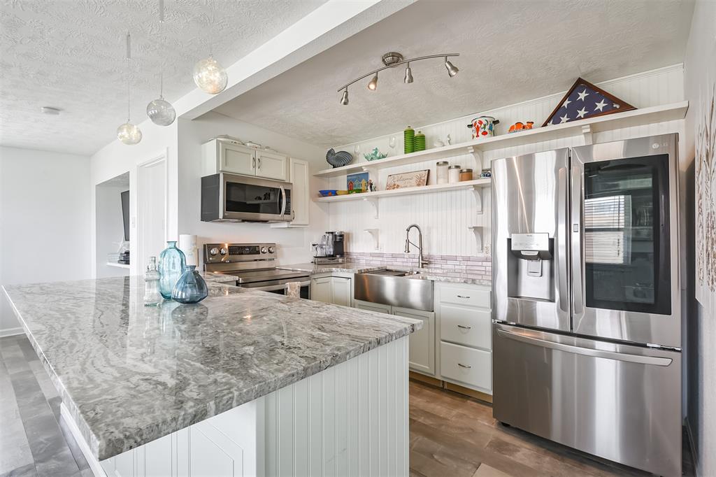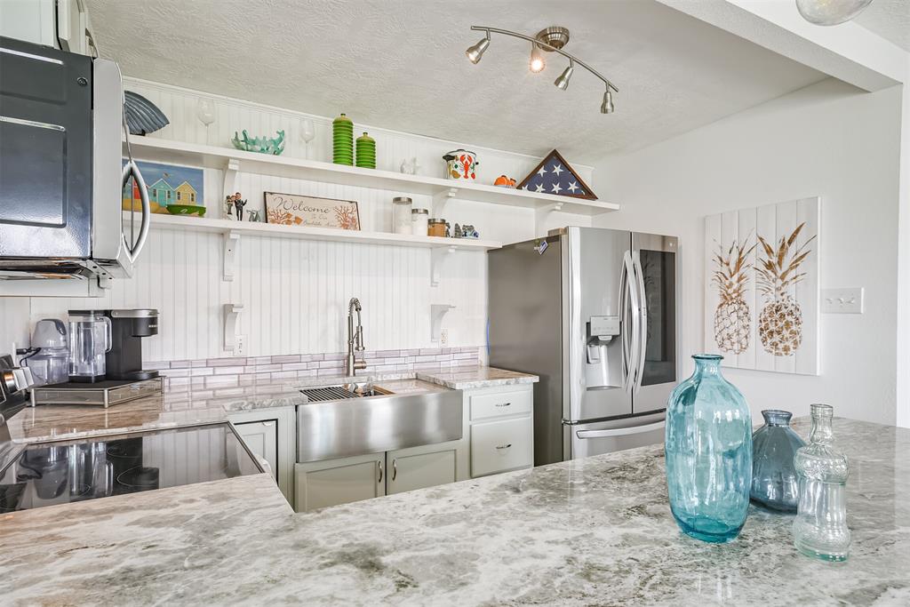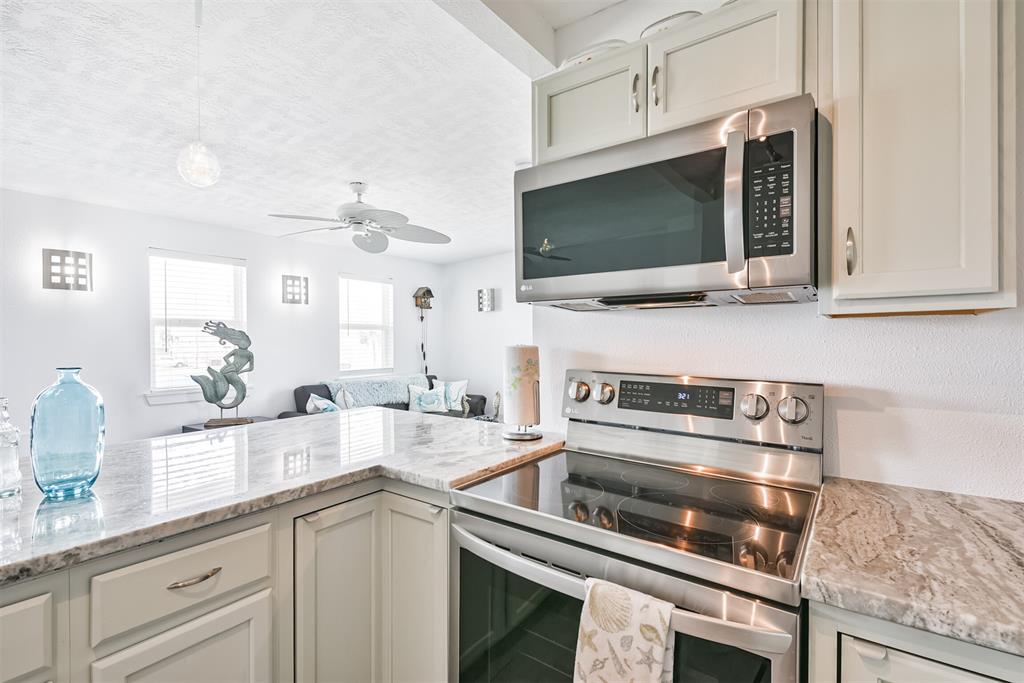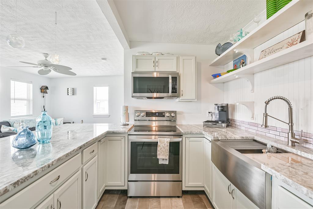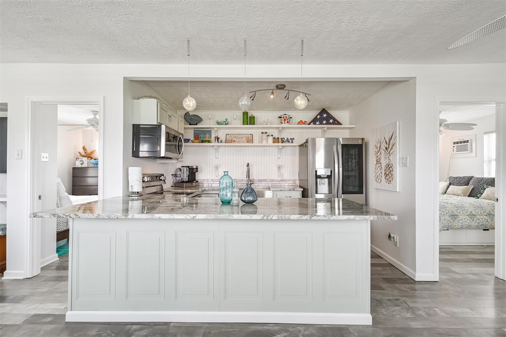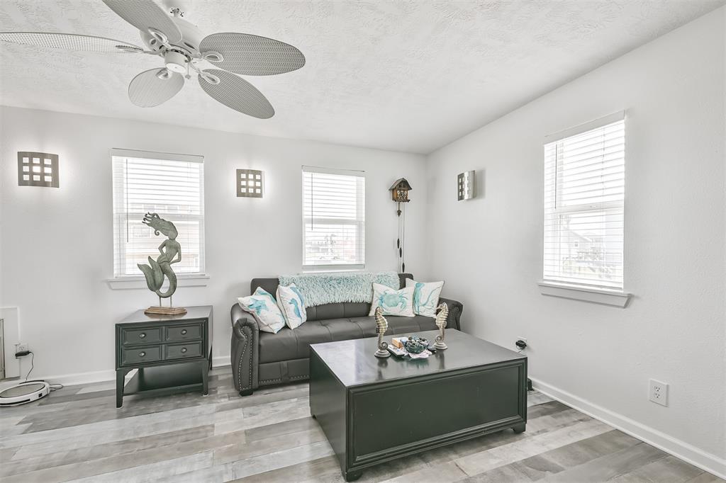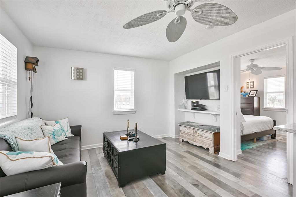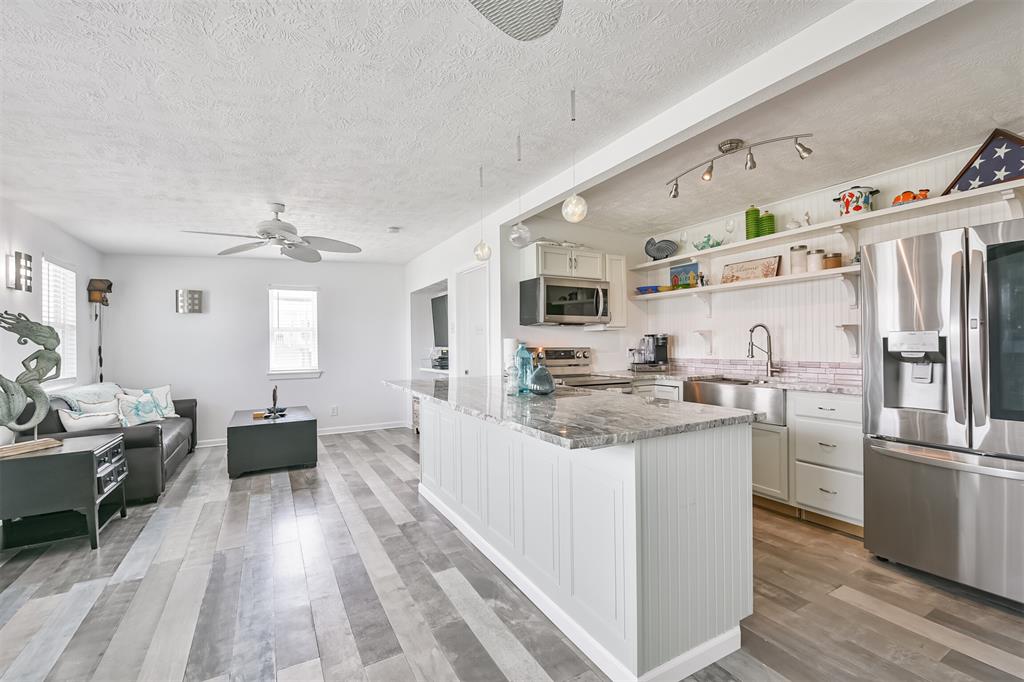 Enjoy the perks of island life. This adorable beach cottage is located in the highly desired neighborhood of Sea Isle on Galveston's West End. Take in the gulf breezes and great bay views from the large wrap around deck, or prepare your favorite meal in the outdoor kitchen after a fun day at the beach. This recently updated cottage, once featured on HGTV Beachfront Bargain Hunt offers two nice size bedrooms on the main level with an open living/kitchen/dining area. As well as an updated Holly wood bath. Additional bedroom with updated bathroom, and laundry are located on the lower level. House is grandfathered in an AE zone. Just a short walk or golf cart ride to the beach or bay. It's time to start living on island time, and enjoy all the great amenities this beautiful home, and Sea Isle has to offer. Neighborhood amenities include tennis courts, swimming pool, marina, and fishing pier. All measurements need to be verified by buyer.