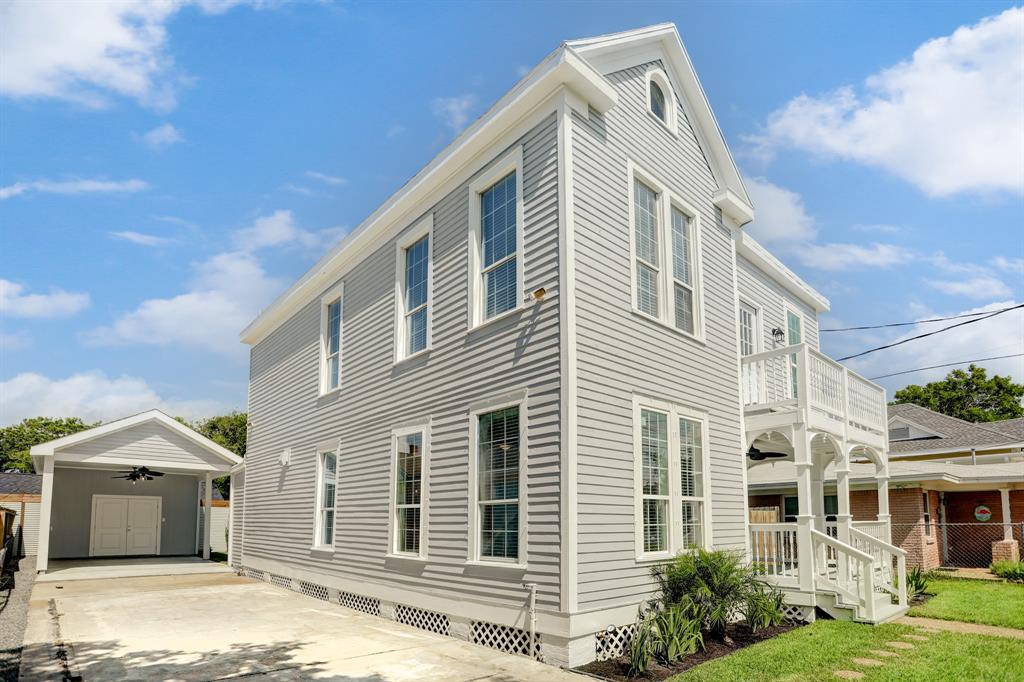 This beautiful Folk Victorian 1900 storm survivor has been completely revived. Located near the beach and the city's cultural and entertainment attractions, this stunning home features 4 bedrooms and 3 1/2 bathrooms. A fantastic kitchen, restored historic accents and new electrical, plumbing, and HVAC/mechanical are just a few of the home's features. A new dual-purpose carport is perfect for parking or as entertaining space. Great back yard with room for a pool. A beautiful piece of Galveston history restored for today's lifestyle and ease of maintenance.