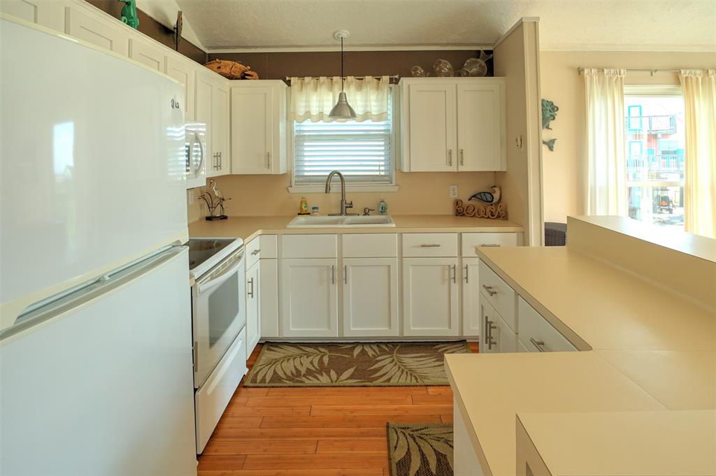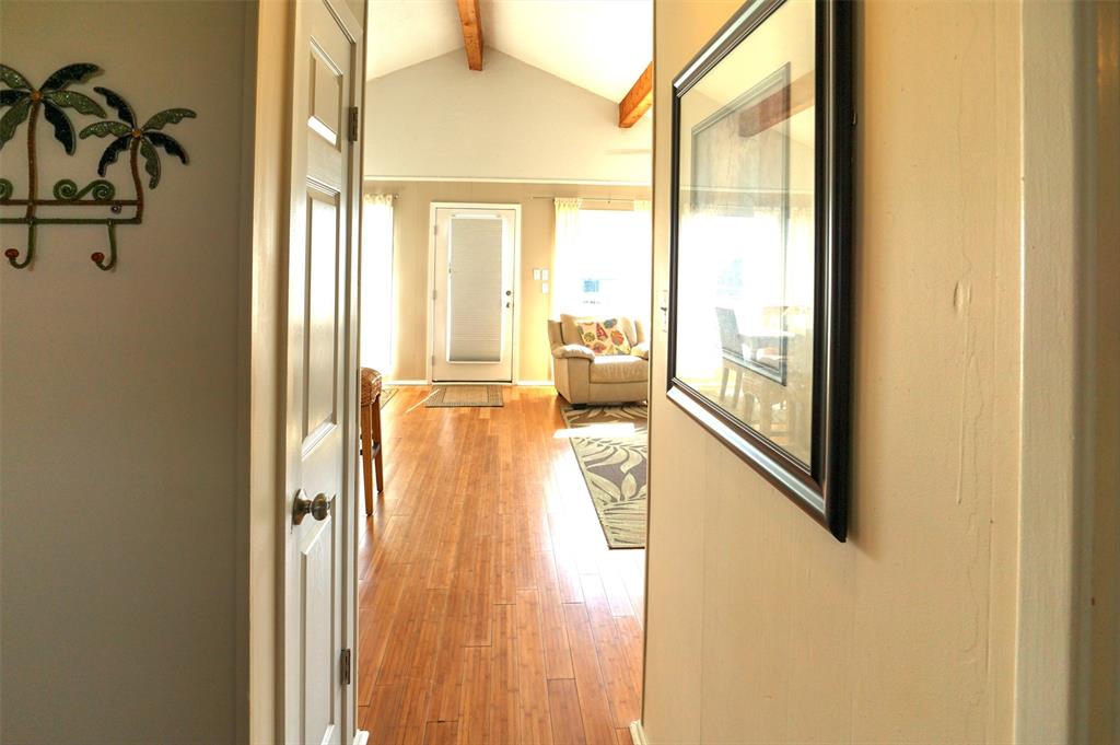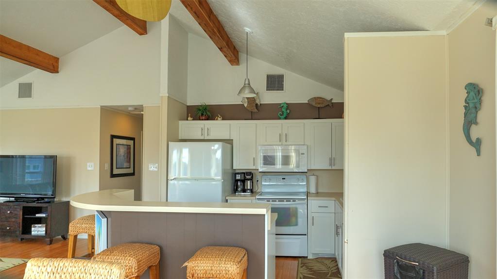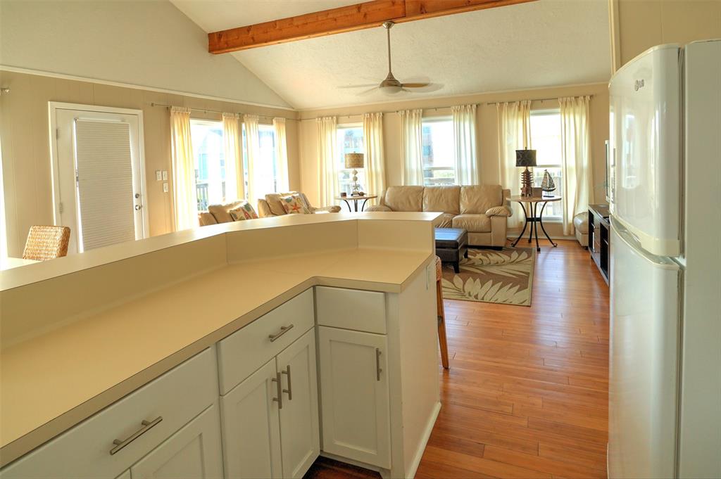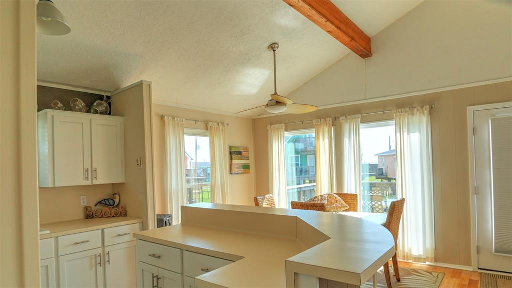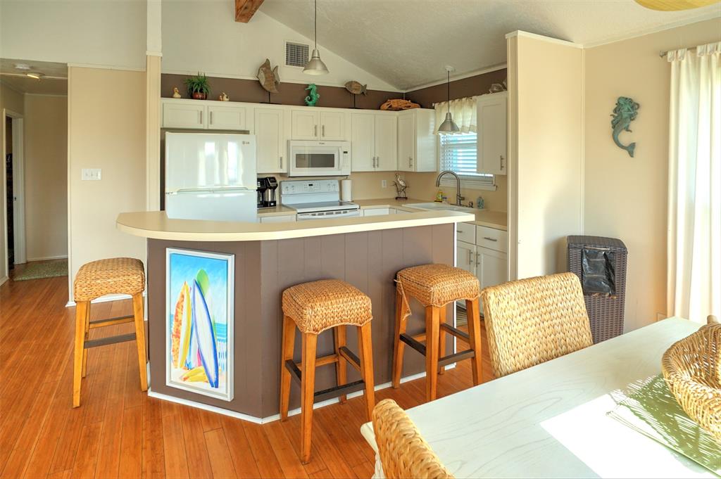 You will love this home. It is a popular rental, so please call ahead for showings. It is in a great location and is the perfect beach bungalow. This home sits looking to the east with views off the deck of the sunrise and stunning views of the bay. Access to the beach is a walking easement through the middle beachfront lots. The lots were angled when the subdivision. There is a small fenced area that you enter before going up the stairs. The large deck, many windows, and beach and bay views will all charm you and your guests. You enter off the deck into an open living/dining/kitchen area. There is a bar separating the kitchen and dining area. To the rear are the two bedrooms with the bath in between. It is open and relaxing. You will not want to leave. This home is adorable. Take time to schedule a showing soon.