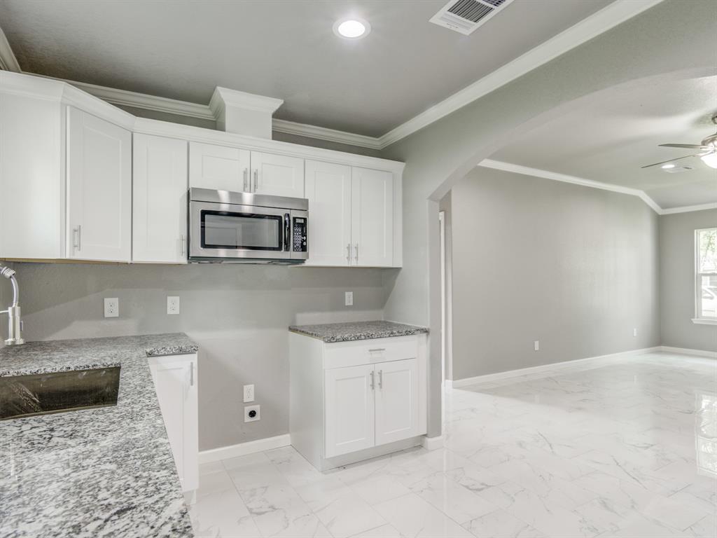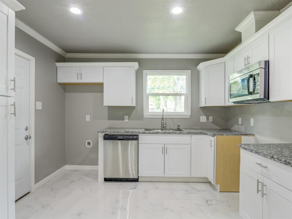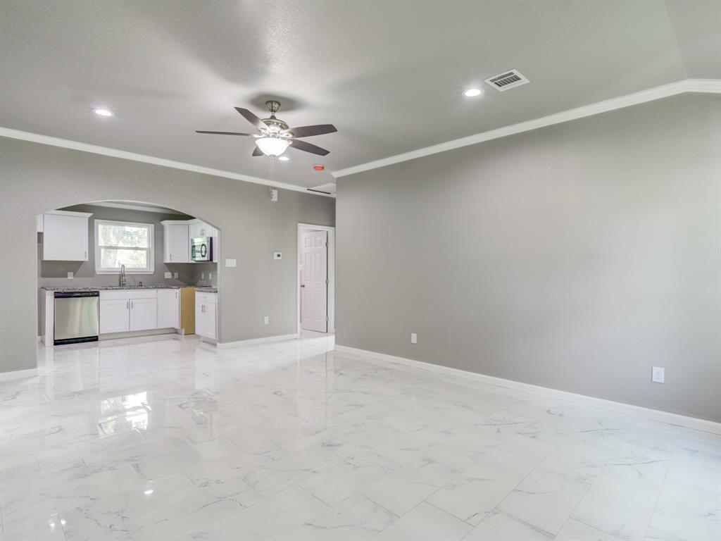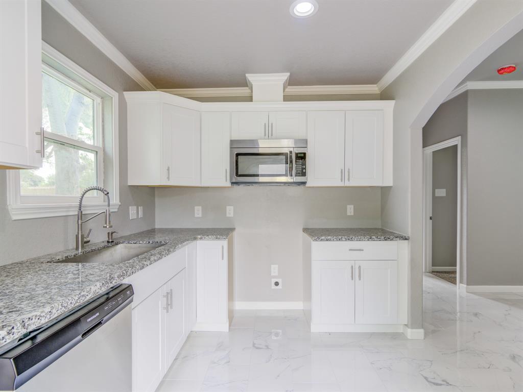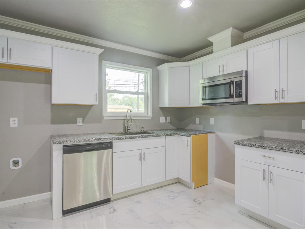 Beautiful newly renovated home, home boasts 3 bedroom 1 bath with a laundry room. Renovation includes new AC system, including outside and inside units and new ductwork in the attic, foundation has been repaired with 10year warranty. All new PVC fresh water lines installed, all new electrical wiring installed, roof replaced with new 30 year shingles and fresh new hardiplank exterior siding installed. Interior of the home has all new Sheetrock, exterior walls of home insulated, all new white porcelain tile throughout home, fresh crown molding in all the rooms of the home and new carpet in the bedrooms. Kitchen has been beautifully updated with granite countertops, backsplash and new white all wood cabinets. Bathroom boasts, a new bathtub with custom tiling and new vanity. This home has been made into a new house, from the roof to the foundation. Come and schedule a showing before this home is taken, home is ready for its new family!