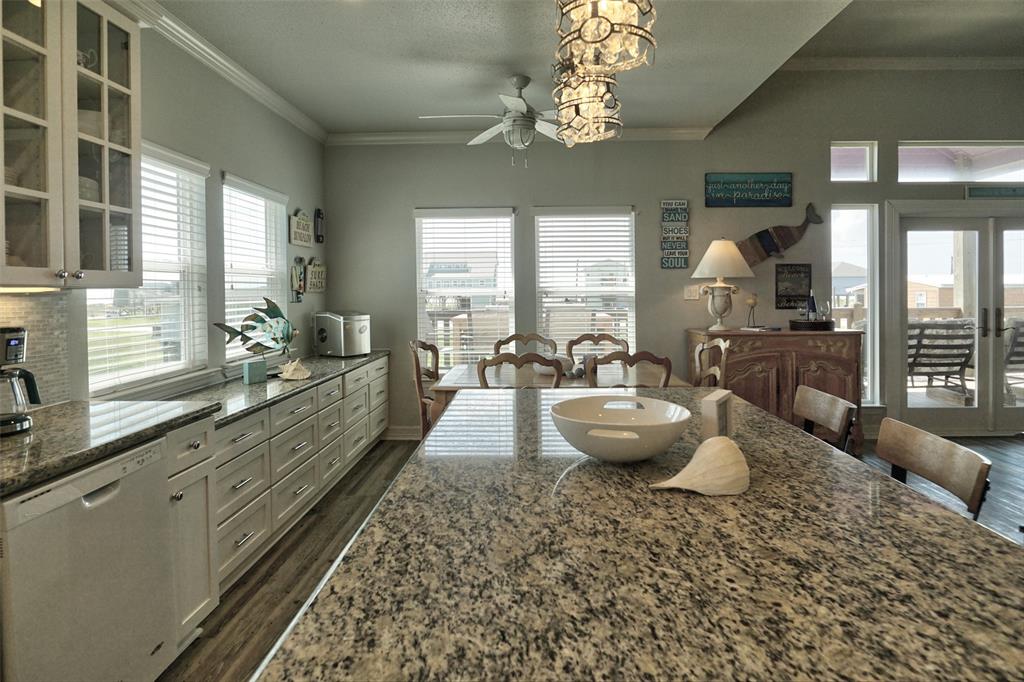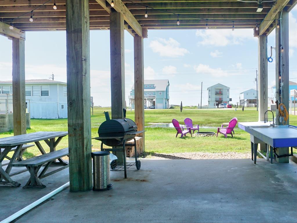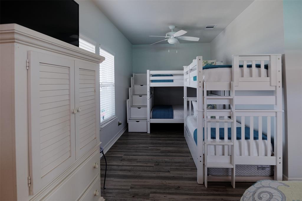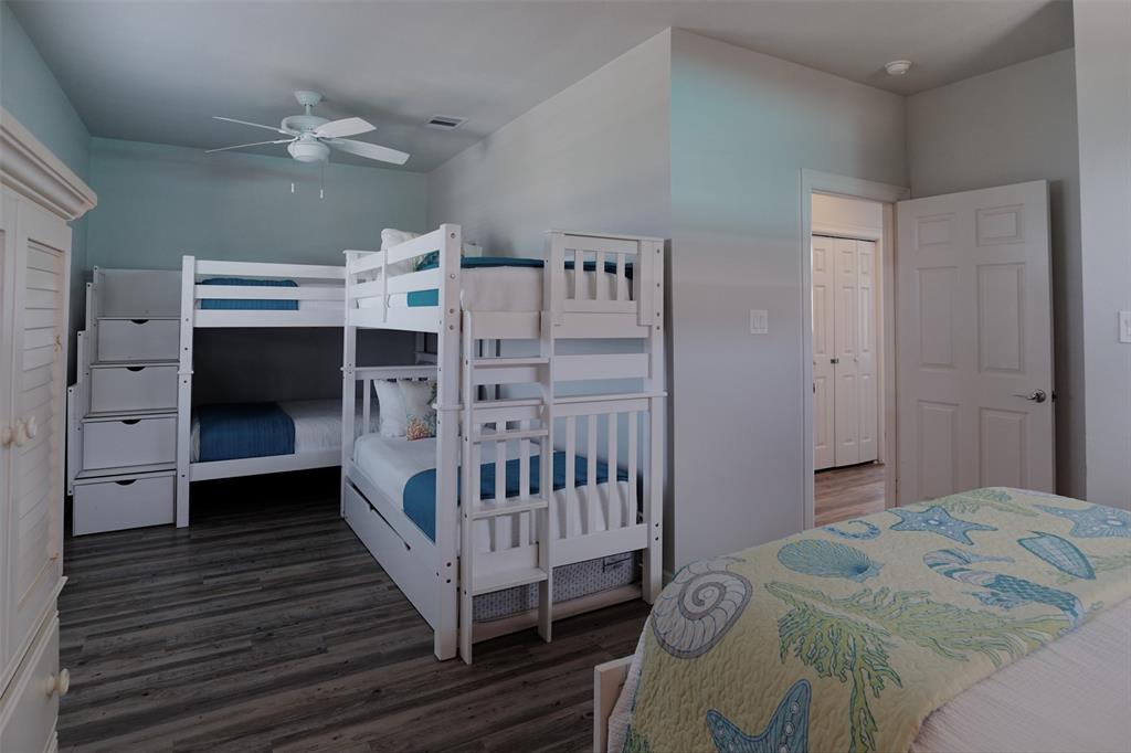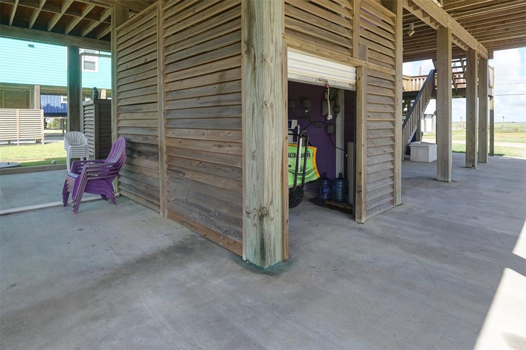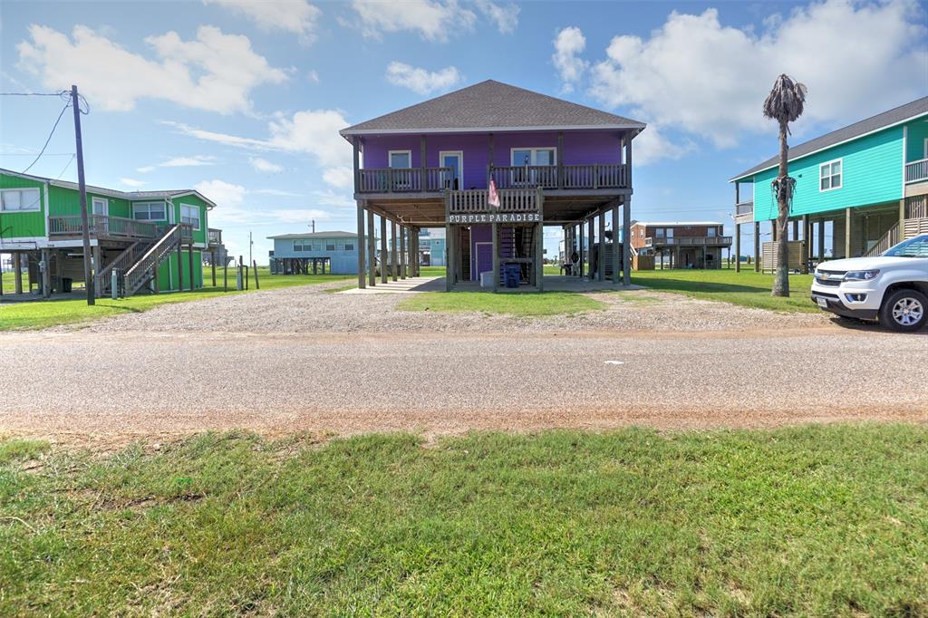San Luis Beach S/D is just a mile past Surfside Beach. It charms everyone who stops there. On one side is the bay, the other side is the beach. You have sunrise and sunset views. There is a boat ramp on the bay side for the residents. And then there is this home. It has many custom features, from the water filter system to the interior elevator, and custom kitchen cabinets. There is an island bar in the kitchen. The home has a large deck that faces the beach and is off the open living/kitchen area. The master bedroom has a view of the beach and a private bath with striking black fixtures. There is a large bunk room with two bunk beds and a queen and another bedroom at the back of the house with a king bed, and a hall/guest bath with the stunning black fixtures. See attached for what the owners love about Purple Paradise. Most furnishings stay. Plan ahead, because it is a popular rental.