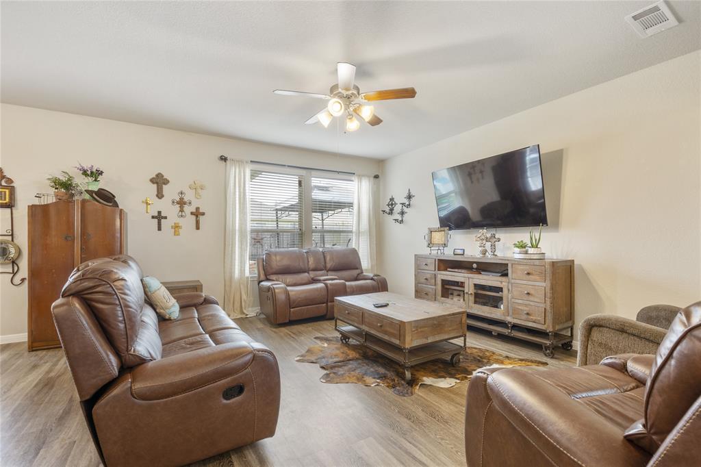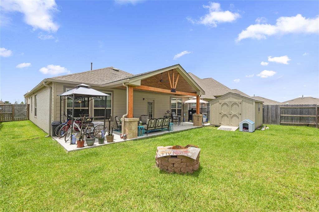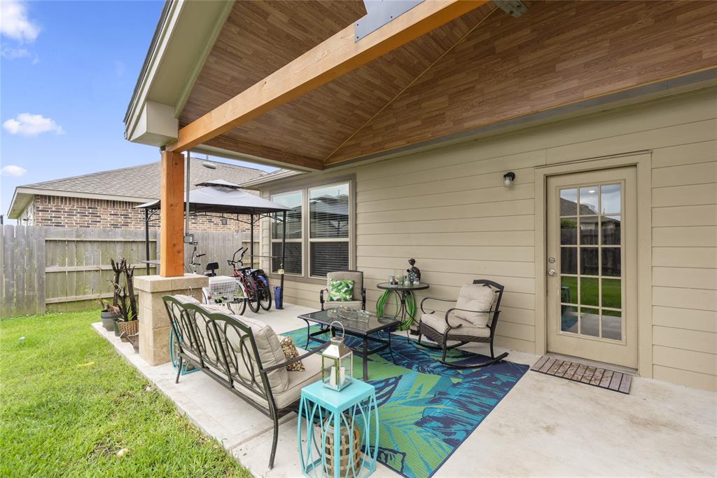 Located in the beautiful community of Lago Mar known for its 12-acre crystal lagoon pool this great single story is nestled on a cul-de-sac homesite. This home boasts wonderful upgrades inside and out. The interior hosts an open floor plan, abundant cabinet space, raised breakfast bar for barstools, granite counters throughout, spacious owners retreat, and a deep soaking tub in the Owners bath. Outside, the extra-large gabled covered patio is a focal point for the outdoor space of the property.