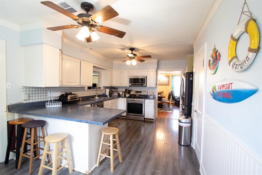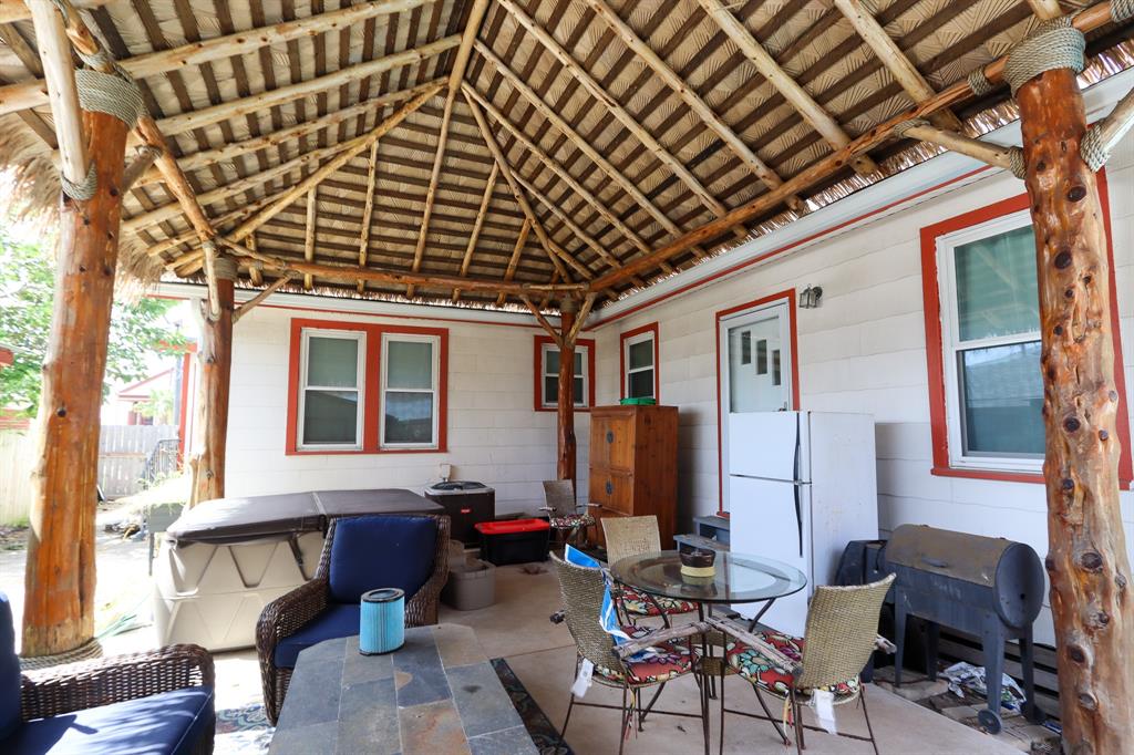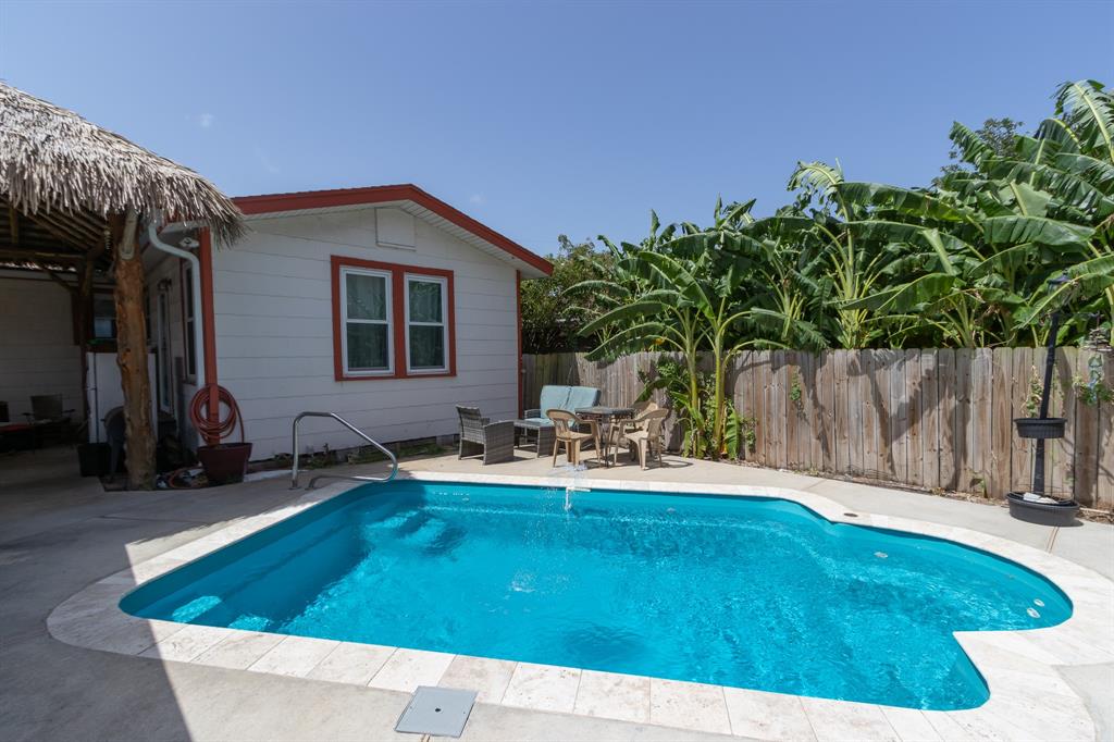 Charming home on a quiet mid-town street ONE BLOCK FROM THE SEAWALL! This home has an over-sized living room with wood burning fireplace and wet bar, large formal dining room, newly renovated kitchen and a huge utility room. This home will save you money. Not only does it have solar panels but radiant barrier in the attic, newer hurricane windows and 3 storm doors. Garage totally rebuilt from the ground up including newer garage door. BEAT the HEAT with a COOLING backyard POOL, PALAPA and HOT TUB. This home has solar panels and 20 storm windows and 3 storm doors for energy efficiency. Short walk to Kroger's and Convention Center. This home would make the perfect full time residence or a fantastic VACATION RENTAL!!