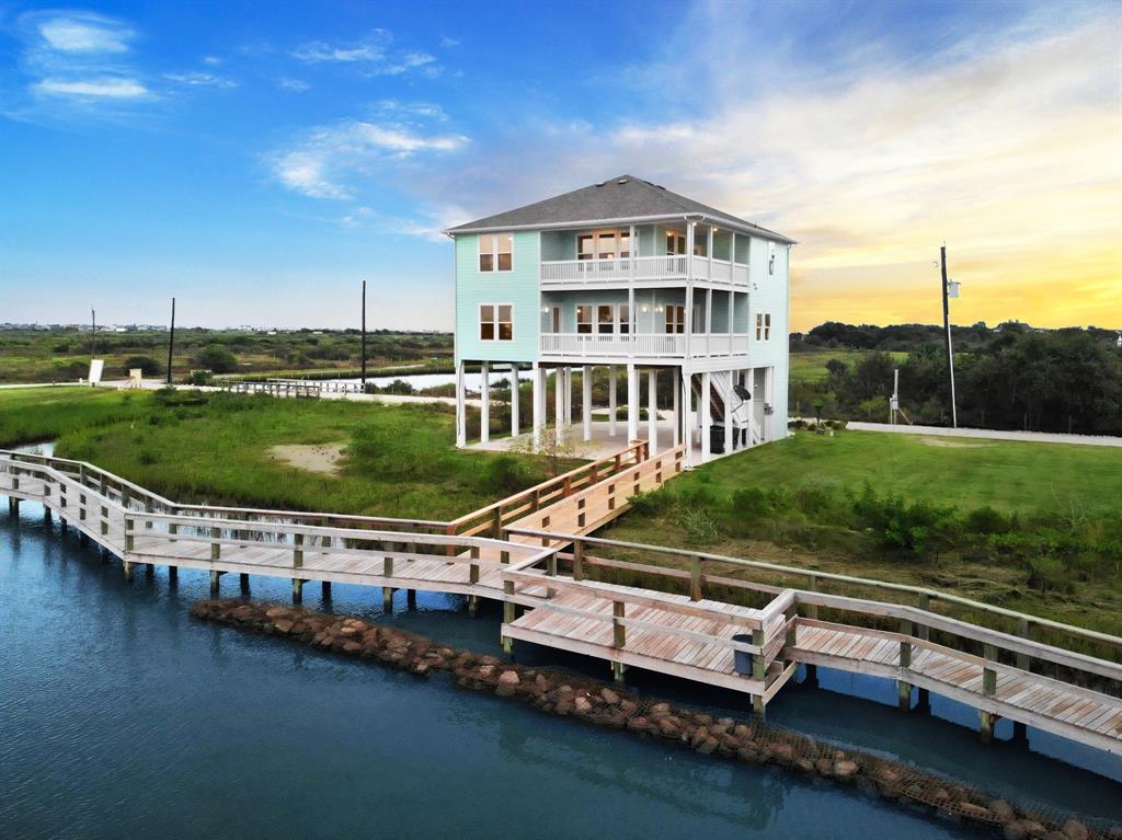 Watch spectacular sunsets over Eckert Bayou when you escape to this bayfront home in the Galveston Bay Club gated community, and relax in style with the best water views on the West End of Galveston! Inside, you'll find views of the bay from every living space, plenty of space to entertain for larger groups. After a long day of fishing on the bay or visiting the nearby beach, you can take an evening stroll on the bayside boardwalks, gather the family together for a barbecue on the gas grill, & enjoy the incredible view! Elevator will be added at the time of an executed contract. Established rental clientele that can be conveyed turn-key for your buyer. * No boat houses allowed, Waterman's Marina 3 minuted away, Pelican Rest Marina, 10 minutes away, or you can store your boat under your home. LEASE OPTION TO BUY IS POSSIBLE!