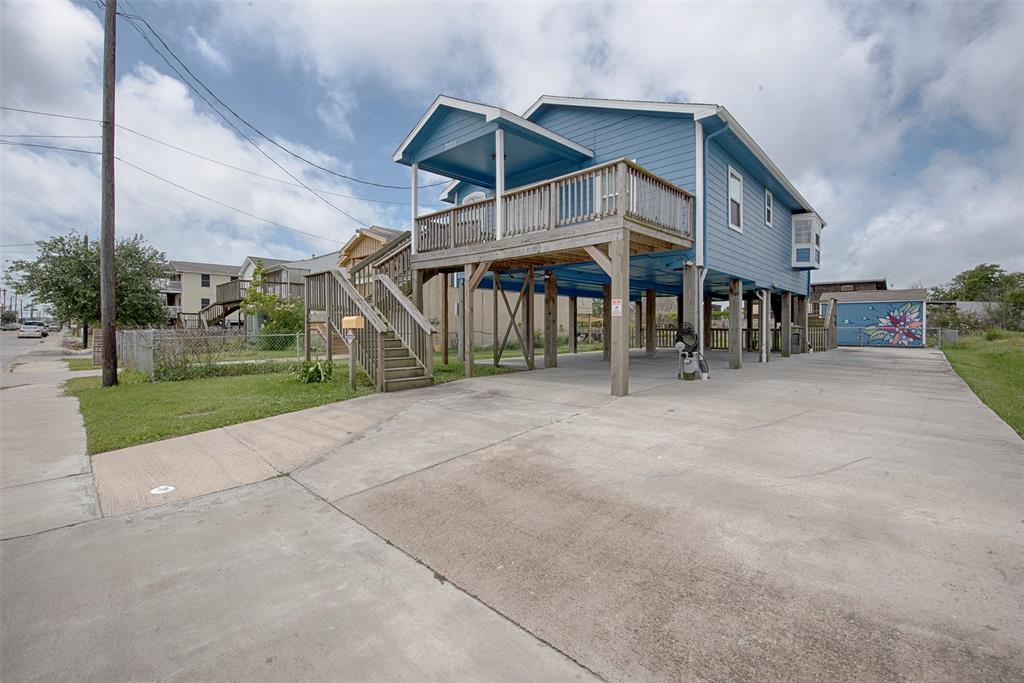 Welcome home to this fabulous 2 bedroom home located on a huge lot! A lot this size in Galveston is a rarity. Could easily fit a pool and still have room to spare! There is a wonderful long driveway that provides great additional parking for your guests when entertaining. Home is located approximately 10 blocks from the beach. Lovely front porch to enjoy your morning coffee or outdoor dining. Entry to the home is a spacious family room with great built in bookshelves. The perfect spot to relax and unwind after a long day at the beach. Gorgeous kitchen with island, breakfast bar, amazing counter and cabinet space and 5 burner gas range. Microwave & fridge will stay for the new owner. 2 spacious bedrooms and a bath with large vanity and combo shower and Jacuzzi bath. Huge carport for multiple vehicles or great entertaining space on rainy days. This home would be the perfect investment property for rental for the weekend, weekly or even long term renters who want to live on the island.
