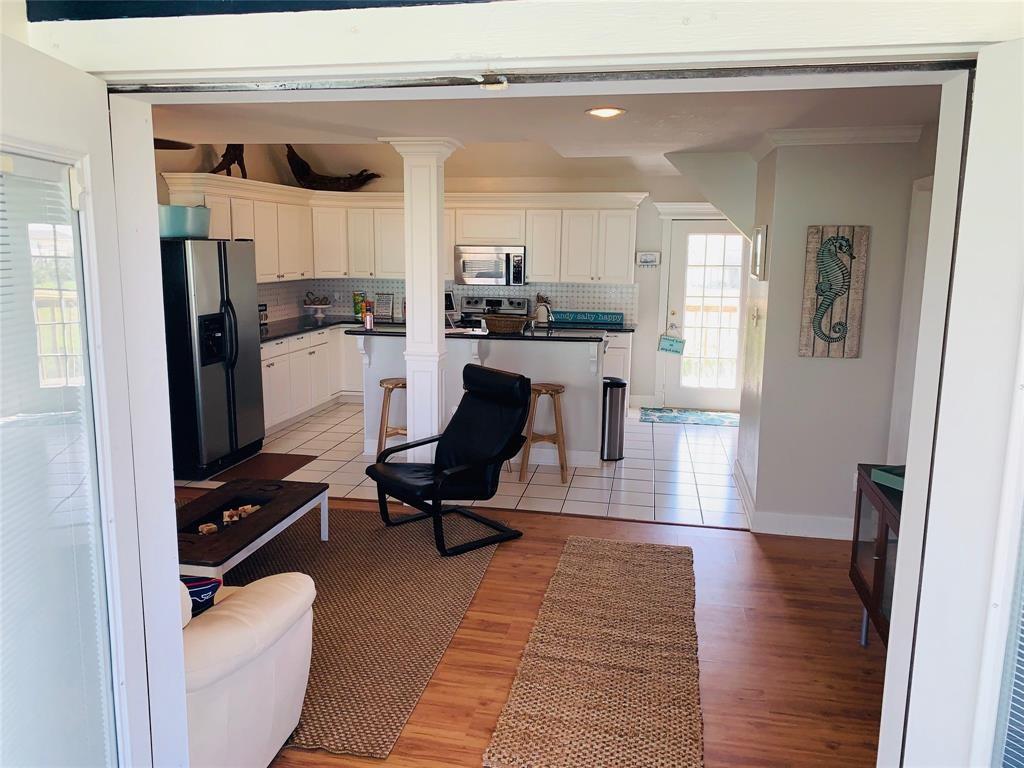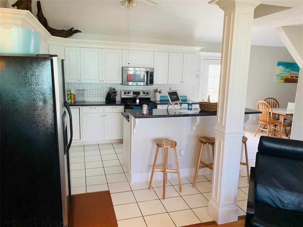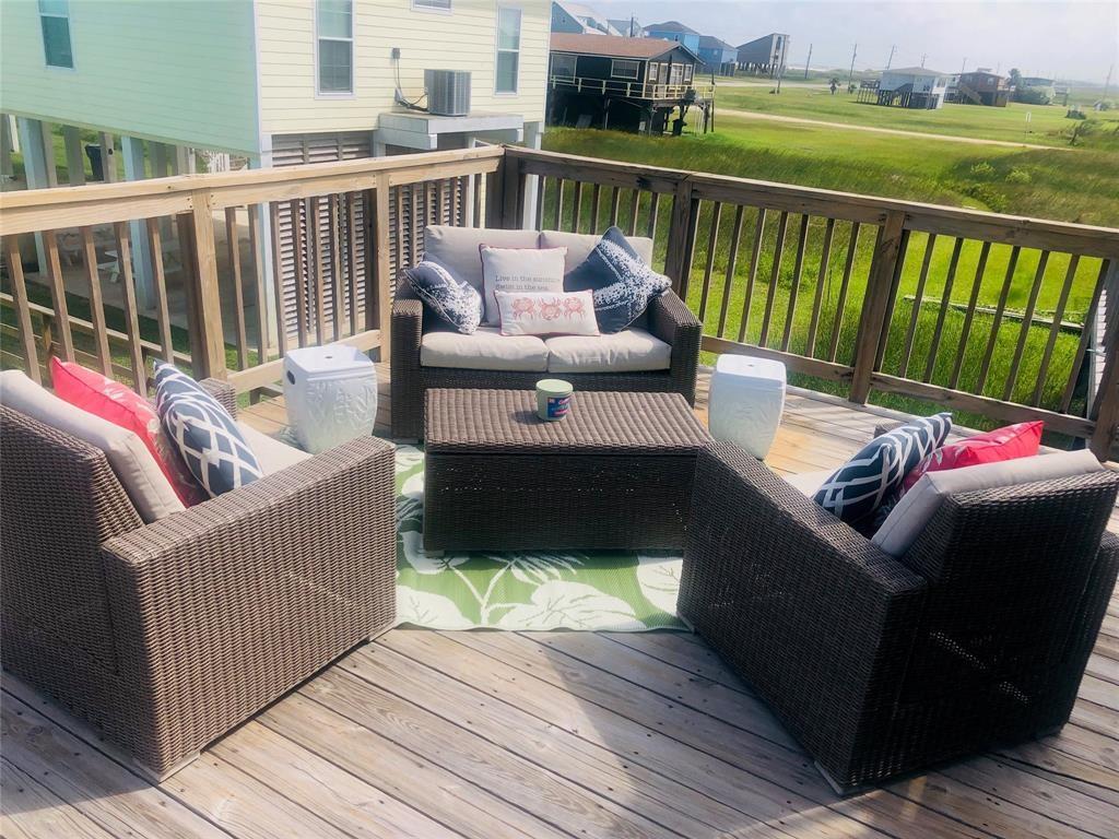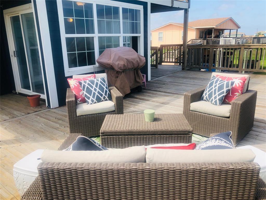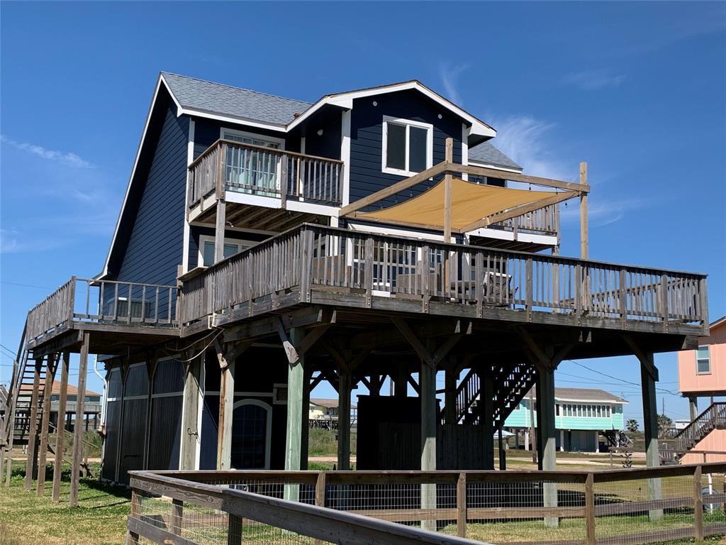 DARLING BEACH VIEW HOME freshly decorated and painted. Surrounding beach and bay views from every window. The large open deck provides a relaxed place to entertain or unwind, enjoy the salt air and the glorious sunsets. The kitchen has a breakfast bar & separate dining area with loads of storage. Vaulted ceilings give the rooms an open and spacious ambiance. There is a storage/workroom area downstairs with the possibility of another full bathroom. Beach access is just a quick stroll across the highway, and the subdivision boat ramp is a short drive to fantastic fishing. This home has the best of both worlds. Currently a rental, and the new owner will need to honor all the confirmed rentals on the books. Most furnishings convey with the home, some exclusions may apply.