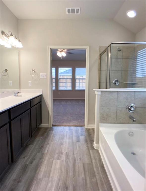 - Master Bath: Double Sinks, Primary Bath + Separate Shower, Tub w/shower