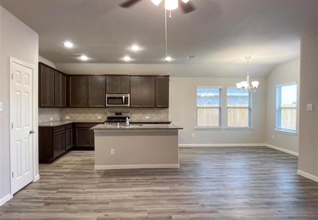 Truly Amazing One Story Featuring 4 Sides Brick with an incredible open design with an oversized kitchen island-Gorgeous Kitchen w/ stunning 42" cabinets,granite and backsplash. Yes, 42� Gray kitchen cabinets + Stainless steel appliances to include a 5 burner stove+ dishwasher and microwave vented to the outside+ Large Selection of Vinyl Wood Floors everywhere + 2� blinds + Lennox A/C + Front Gutters + Pex Plumbing and Much more is included in your new Colina Home. Perfect for a Texas Size BBQ with a large covered back patio and Over-sized Lot with brick rear fence Come see this beautiful home with its 12-acre community lagoon! THIS HOME INCLUDES STAINLESS FRIGIDAIRE KITCHEN W PREMIUM 5-BURNER STOVE, MICROWAVE & DISHWASHER & FULLY-SODDED FRONT. These are photo's of the home plan not of the actual property. CONSTRUCTION COMPLETE OCT./NOV. 2021.