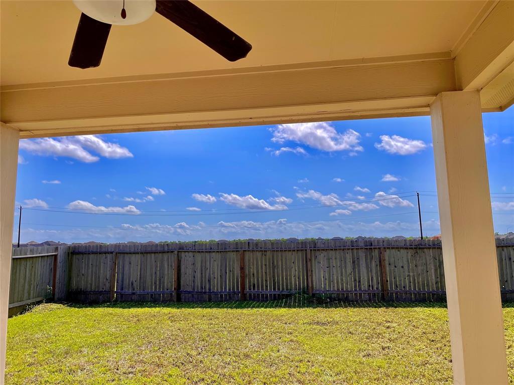 Stunning single story home located just a few minutes from shopping, dining and main highway. You don't want to miss this opportunity in the beautiful Delany Cove community, just a few miles from the beautiful Galveston Island. Home features a large kitchen with plenty of cabinet space and pantry. Oversized granite bar area overlooking the dinning area. Perfect for entertaining! 3 bedroom 2 bath. Split floorplan with primary suite featuring an en-suite bath with double sinks, walk-in shower, soaking tub and large walk-in closet. The other two rooms in the home are generously sized and share a bathroom off the main hallway. The backyard features an attached covered patio with ceiling fan. NO BACK NEIGHBORS! Don't miss this chance to purchase your very own home in the up and coming Delany Cove subdivision.