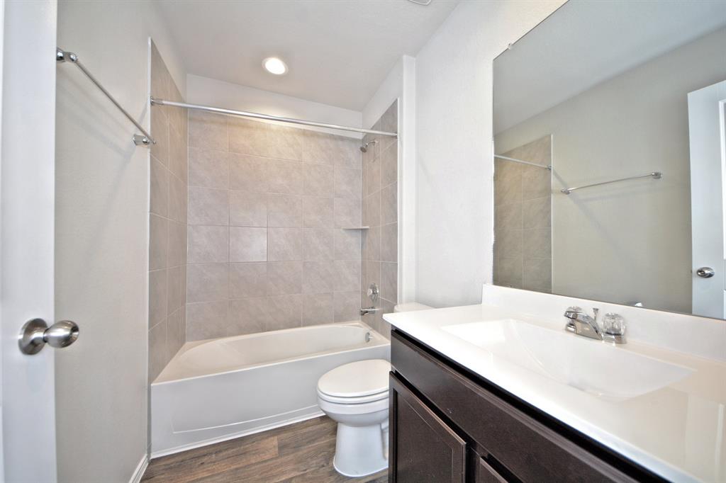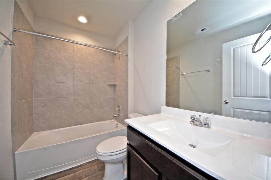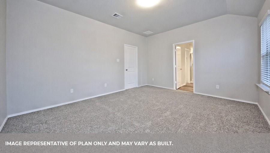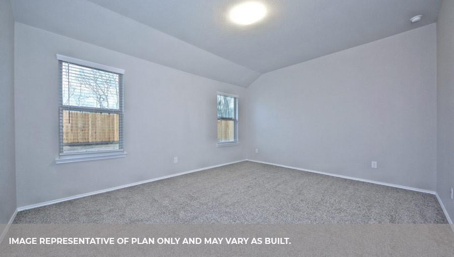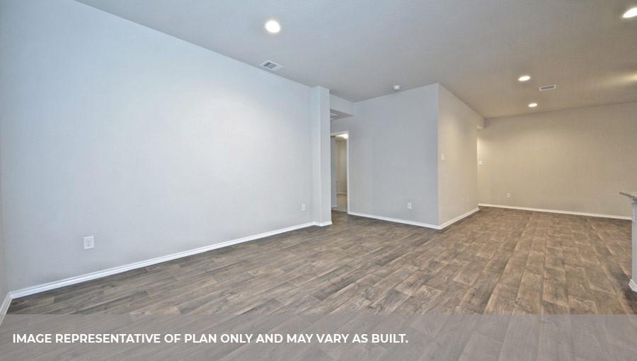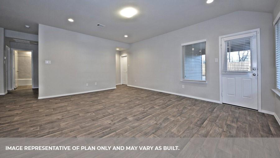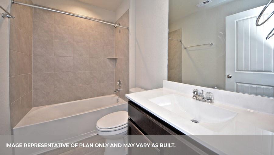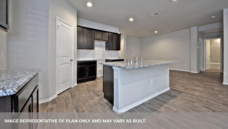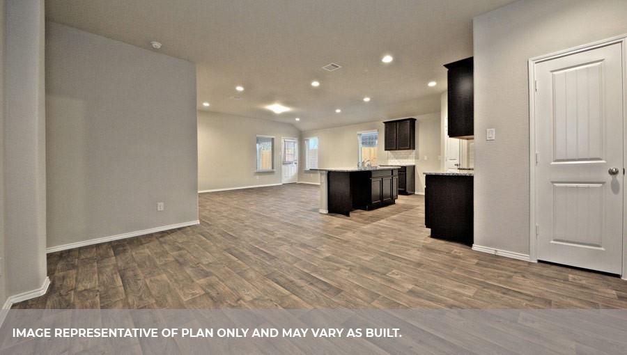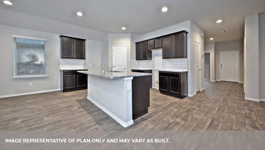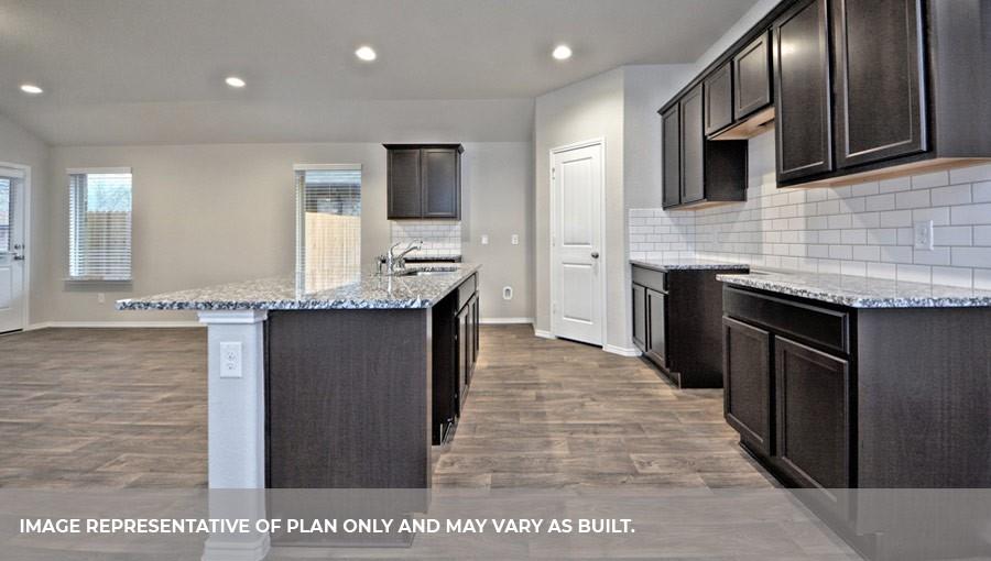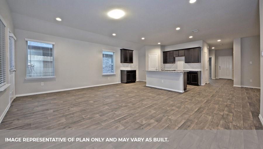 The Lakeway plan is a one-story home featuring 4 bedrooms, 3 baths, and 2 car garage. The foyer opens to one guest bedroom and bath, study and entry coat closet. Kitchen includes breakfast bar with beautiful counter tops and stainless steel appliances. Open concept floorplan boasts large family room and separate dining/breakfast area. Two additional bedrooms and bath are situated just off the common living area. Private primary suite with attractive primary bath features dual vanities, water closet and walk-in closet. The standard rear covered patio is located off the family room.