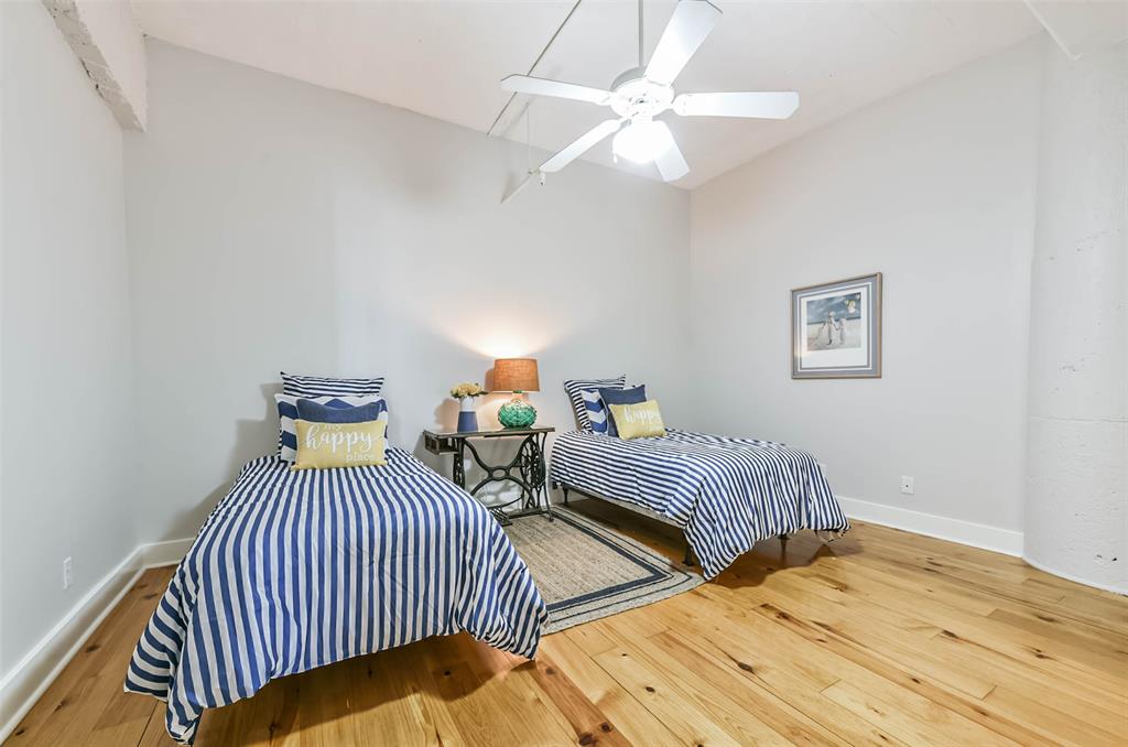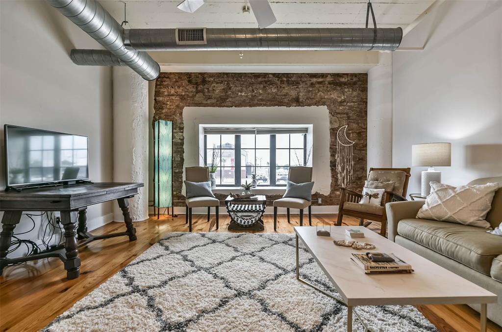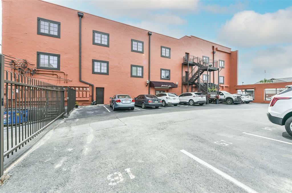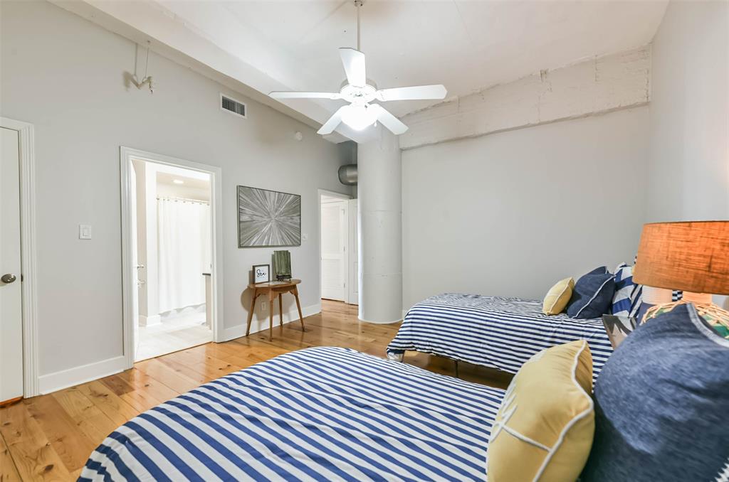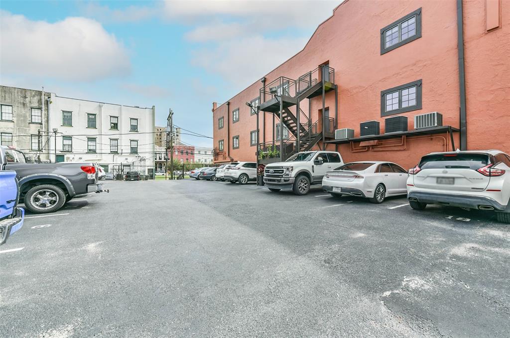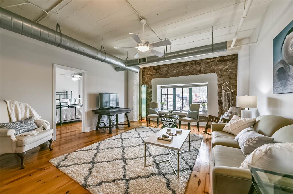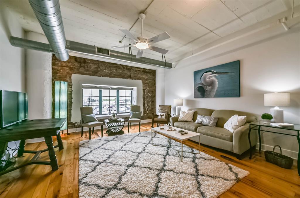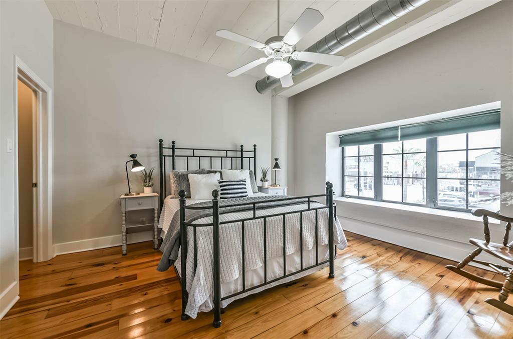 Nestled in the heart of Galveston's popular Strand District, you will find this gorgeous 2/2 in the historic Galveston Ice House building. Fall in love with the original exposed brick walls with windows overlooking Galveston's Harbor. Kitchen with ample storage, granite countertops, stainless appliances and breakfast bar. High ceilings with exposed duct work give a modern feel to this loft featuring open floor plan with amazing wood flooring throughout. Primary ensuite and living room offer water views where you can sit and watch ships come in and out of the harbor. If walking to your favorite restaurants and shopping are important to you, come and check this place out! On the main floor you will find your personal storage room where you can keep your bike and beach chairs. Parking is carefree too - unit comes with one assigned parking space inside a gated parking lot. Property conveys furnished with few exclusions. Short term rentals are not allowed!
