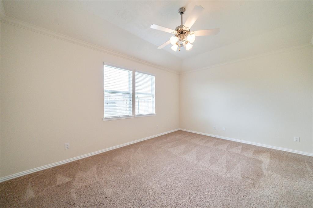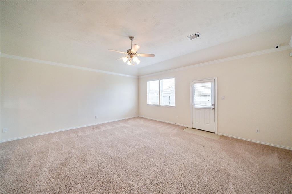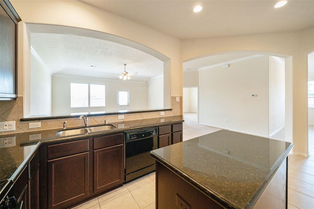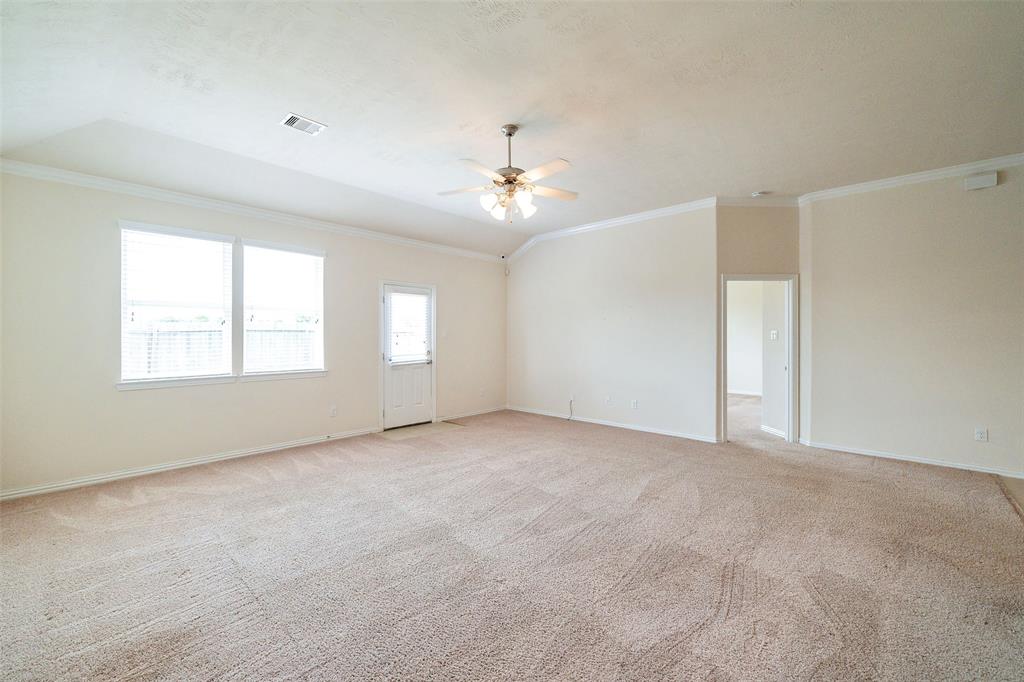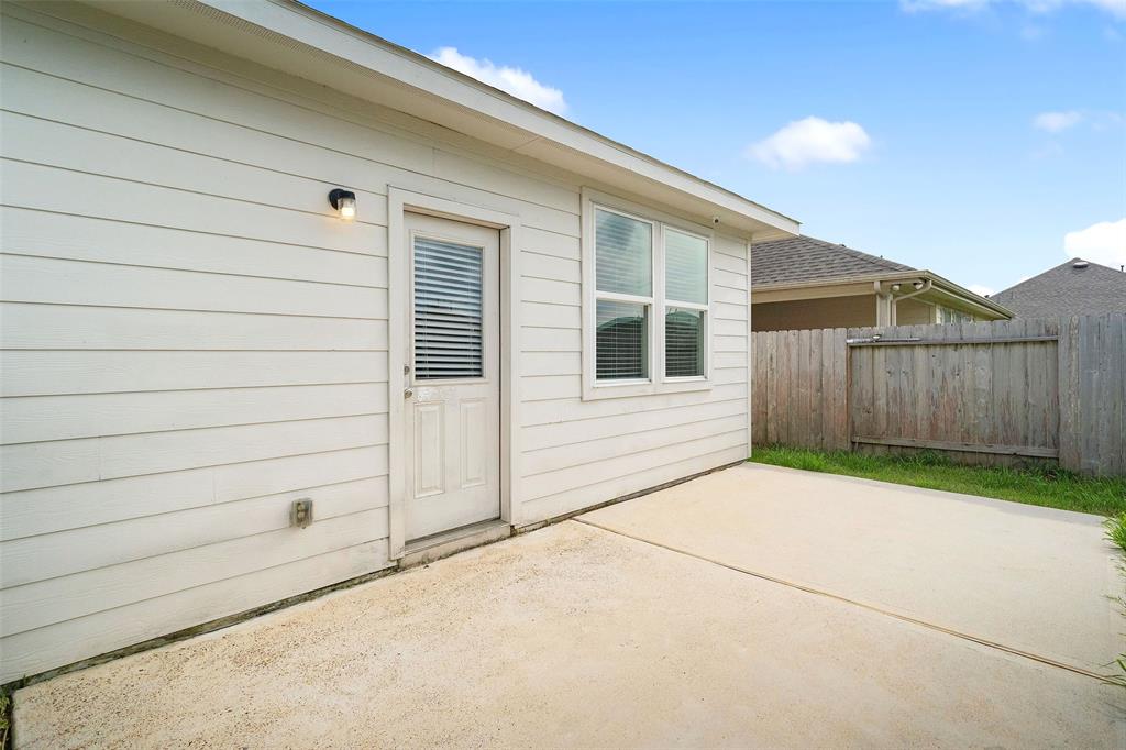 Lovely 3 bedroom, 2 bathroom, single-story home featuring a 2-car attached garage and a shaded front porch! Inside, you'll find a tile entry, crown molding, a formal dining, a spacious living room, and the island kitchen that includes granite countertops, a tile backsplash, recessed lighting, and access to the utility room while the primary bedroom suite is separate from the secondary bedrooms and has dual sinks, garden tub, separate shower, and dual walk-in closets. Enjoy the backyard space with an open patio as well as the location on a corner lot with proximity to I-45, Tanger Outlets, and Galveston Island!
