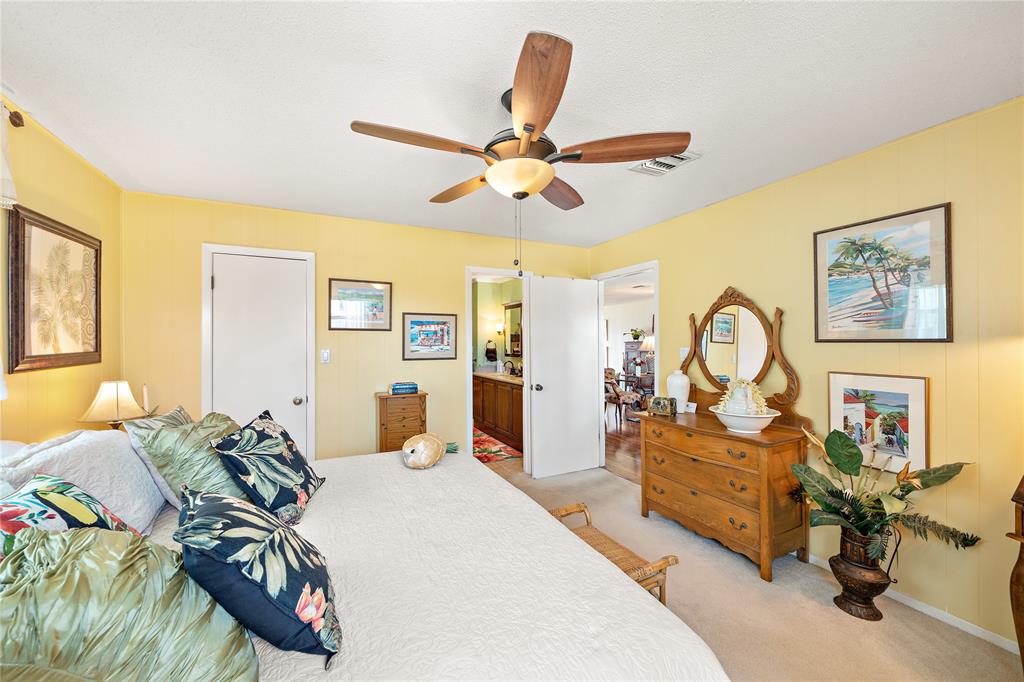 This well-cared for home has a bright open floor plan & beautiful canal views to enjoy from the large balcony. This 3 bed 2 bath home has been updated through out the years from the Hurricane impact windows done in 2018 to the cargo lift in 2020, beautiful laminate flooring in 2012 & much more. The large kitchen has walls of cabinets & a walk in pantry, making for a ton of storage. The living room has its own private balcony, the primary room has its own ensuite with double vanity & glass shower. 2 guest bedrooms can be found opposite primary bedroom, along with the large utility room. Below, the covered ground level not only makes for the perfect place to entertain guest or relax at the wet bar area but is also completely fenced in. This home is just a short boat or golf cart ride to the Sea Isle amenities that include the Marina & Restaurant, pool, tennis courts, fishing pier, & community park. This gem has had only 2 past owners!