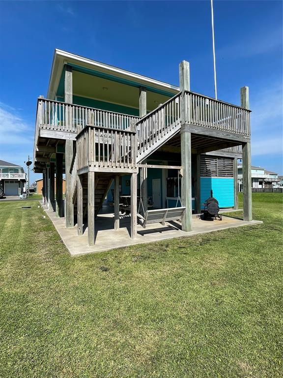 This wonderful 3 bed, 2 bath home is located in the A zone for the least expensive flood insurance. The main deck faces East for spectacular sunrises and for shaded evenings and the back deck faces West for the perfect sunset as well as peekaboo views of the Gulf. This home sleeps 10 in beds but has a bonus area that sleeps 2 more. The master has a king and the other 2 bedrooms have 2 queens each. The kitchen has granite countertops, under counter lighting and many more features. A wrap around deck makes routine upkeep and maintenance easier. The downstairs area is built for entertaining, BBQ, Fish fry, Crawfish boil or much more. This home would make a great home, beach retreat or investment property. The adjacent lot to the South (Beach side 938 Palm Ridge) is available for an extra $45,000 to buyer of house.