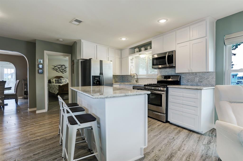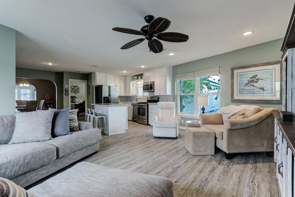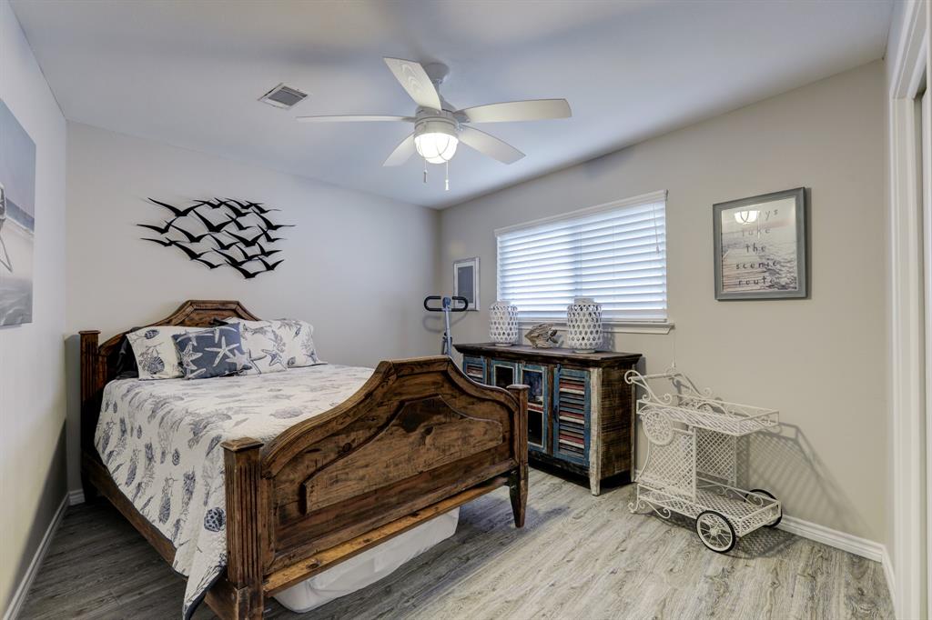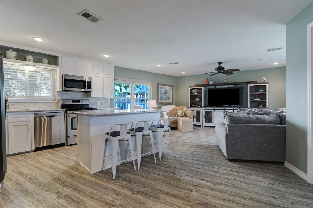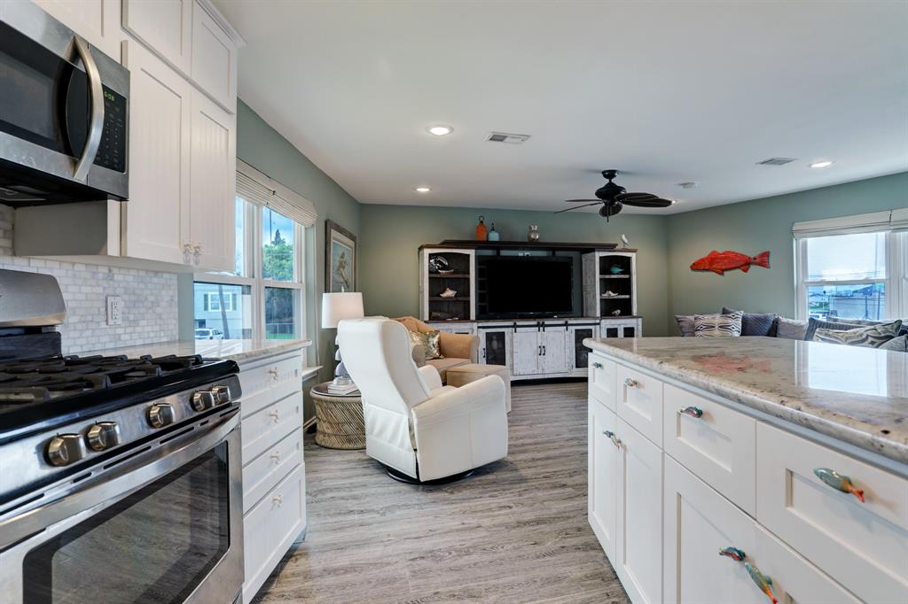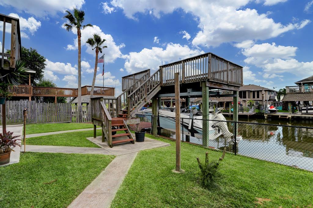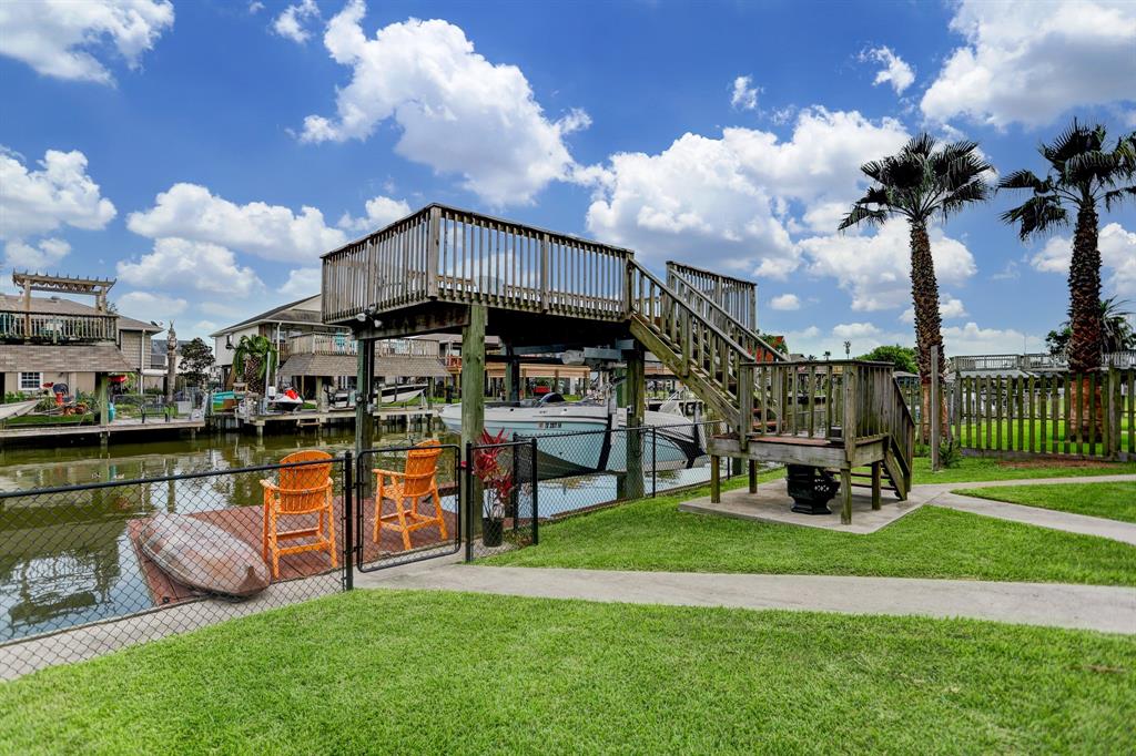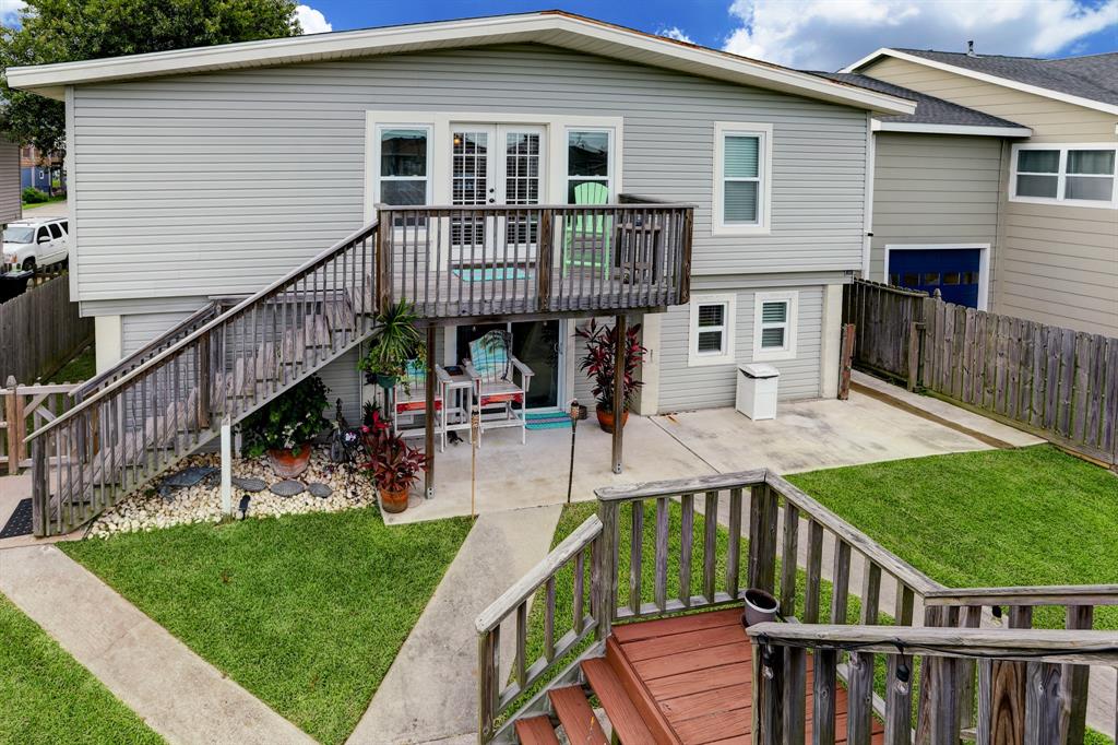 Wait no more for your little oasis on the water. This beautifully updated home located in Bayou Vista is sure to please its new owner. Great water location to quickly get out onto the water. The home features two bedrooms and one bath on the 2nd floor. Primary bedroom has a large walk-in closet with views of the water. The kitchen has been updated with granite countertops which is opened to the living room. The home features two staircases with an interior leading to the downstairs. Large open room that could be used as an additional living room with a beautifully updated bathroom. Utility room is downstairs in the optional third bedroom. Downstairs is not insured. Garage is perfect size to garage your golf cart.