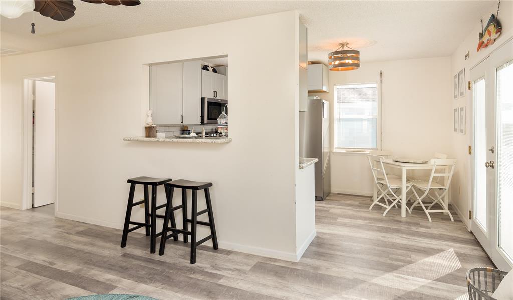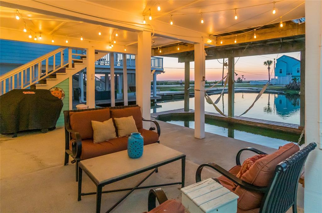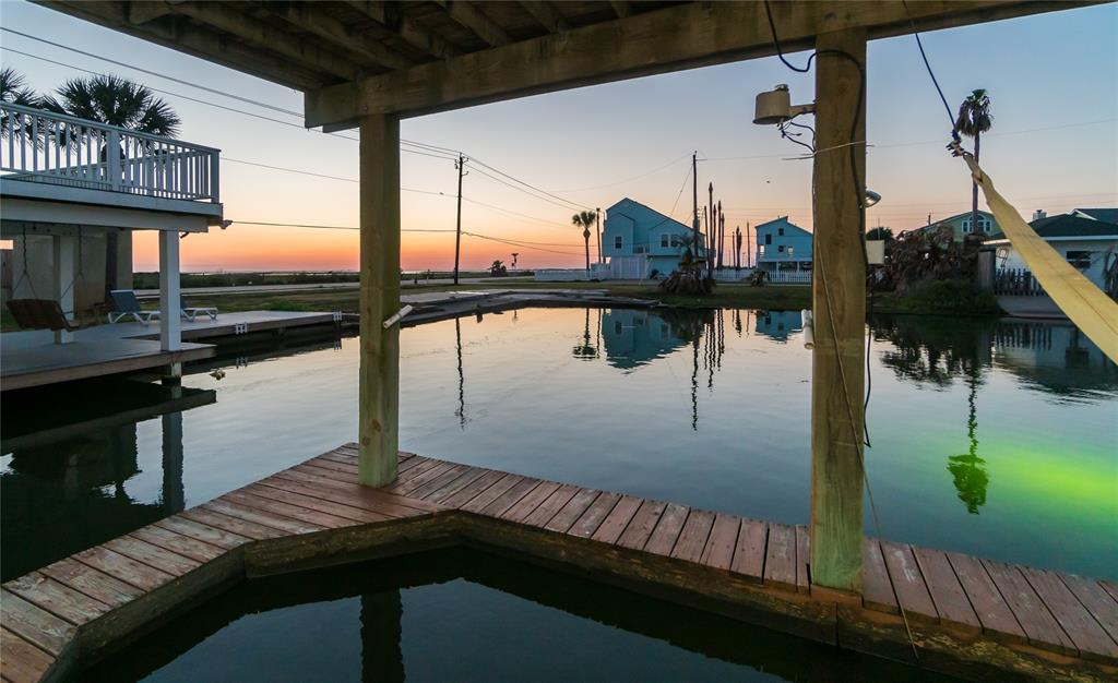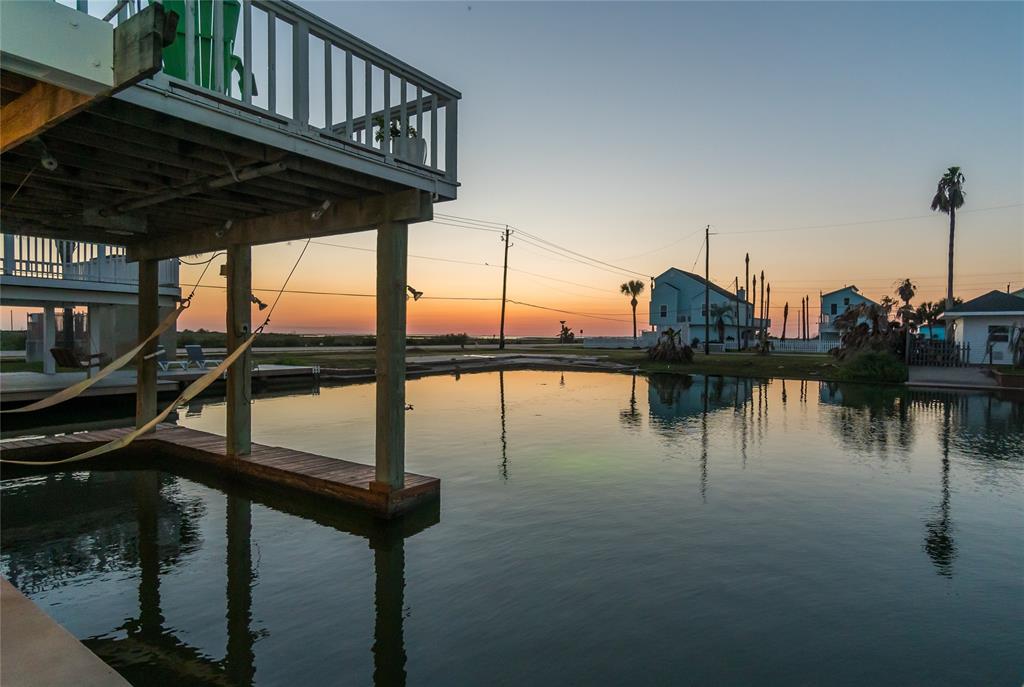 Beautiful canal home with an amazing unobstructed view of the sunsets over Galveston bay and wet lands. Let your tension roll out with the tide. A bird watching and fishing paradise. New flooring, appliances, kitchen cabinets and counter tops. Expanded driveway and a new concrete bulkhead. 2BR and 2 full baths upstairs with walk in closets in both bedrooms. 1/2 bath down. Plenty of covered area downstairs to entertain overlooking the canal. Rollup storm shutters for instant protection and low energy bills. This house has everything you would want in a beach getaway or a full-time residence. Great rental history too. Come view the amazing sunsets of Jamaica Beach and schedule a showing today.