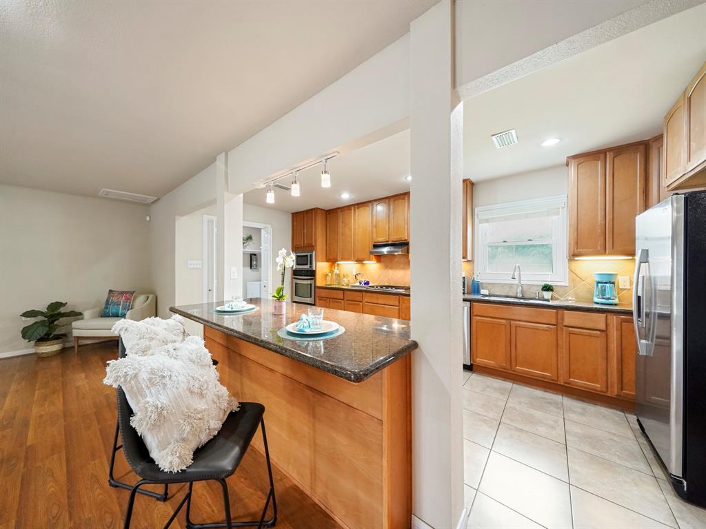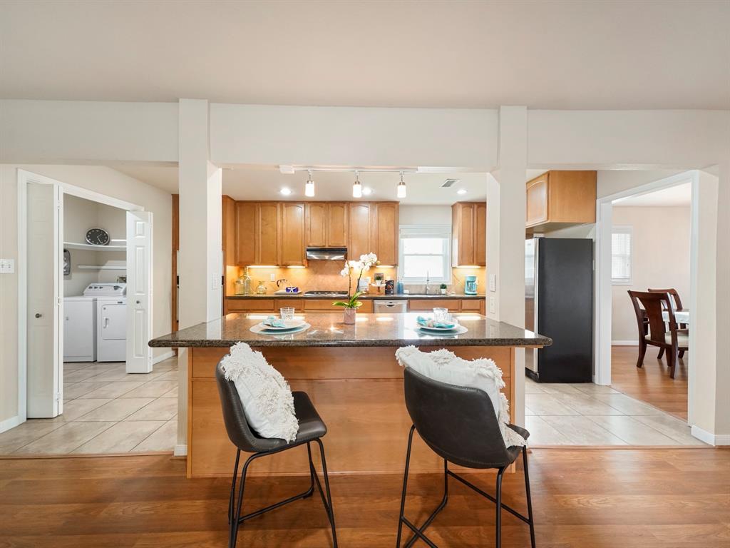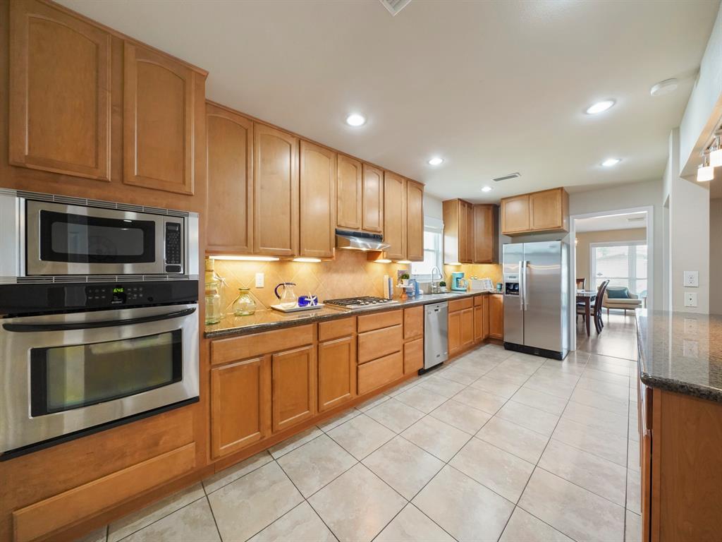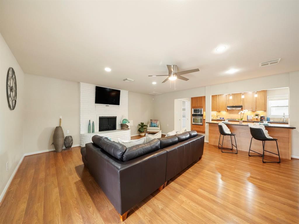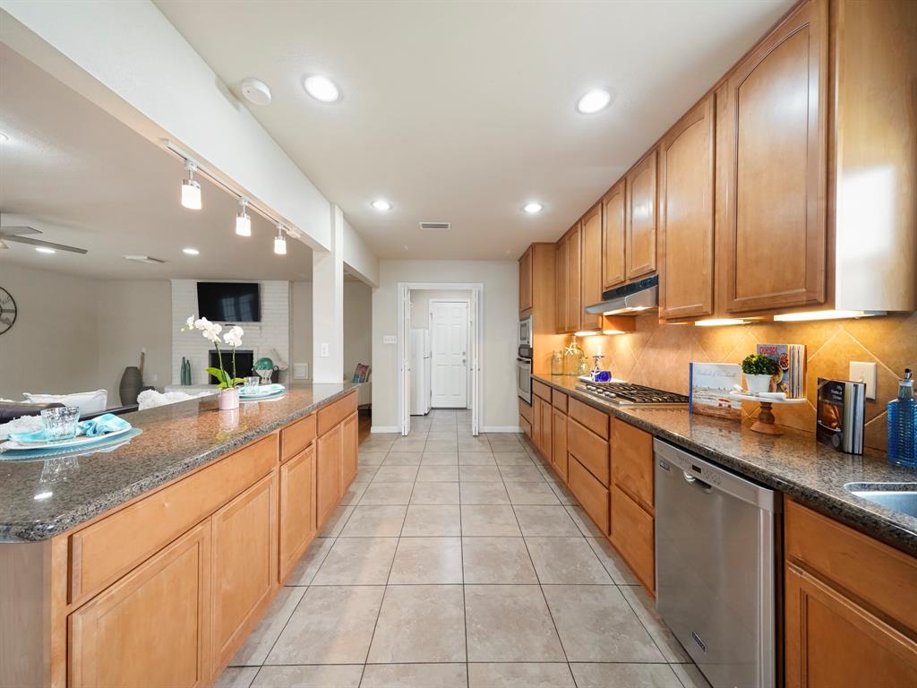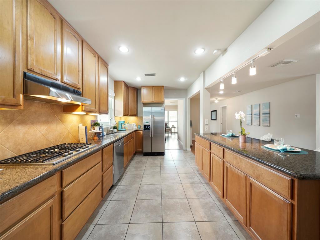This home is ready now! Well maintained 3 bedroom, 2 full bath one story in a great location. Home located on The West End of town walking distance to the beach and few minutes drive to Moody Gardens. Roof replaced April 2021. Home features open space family room to the kitchen, formal living room and formal dining. Primary suite with private primary bath. Gas fireplace, recessed lighting, utility room inside the home and 2 car garage. You're going to love the kitchen, custom cabinets, gas cooktop and under mounted lighting. Home was renovated after Ike including electric! Nice sized backyard with a covered back patio and privacy fence. Washer and dryer stay with the home! Make this your family home or Island Getaway!