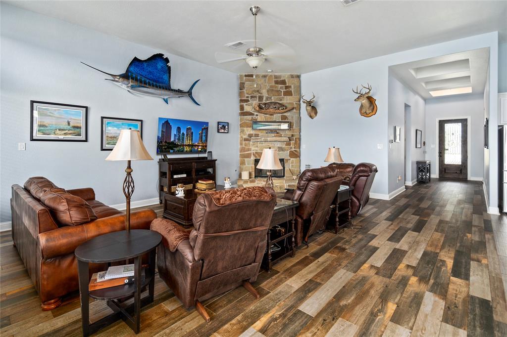 WELCOME TO LAGOON LIFE!Enjoy the breathtaking,coastal sunsets in this gorgeous, almost new, Gehan Home. Located in the gated Lago Mar Community, move in ready and just waiting for new owners.Located on a prime lakefront/semi cul-de-sac lot, pride in ownerships boast both inside and out. This 1 story home has it all.Custom flooring, custom paint, wood blinds, 12 ft. ceilings in living area as well as the primary bedroom and a huge walk in closet in the primary. Split floor plan with an open kitchen/living area make it perfect for entertaining. Oversized utility/mud room, convenient home office/flex room, extra wide entryway and hallways, the many windows provide so much natural light. Upgrades include include, but not limited to, inline water heater, induction cook top, wired alarm system, sprinkler system, upgraded primary shower, and so much more. Don't miss out on this one. Schedule your showing today!